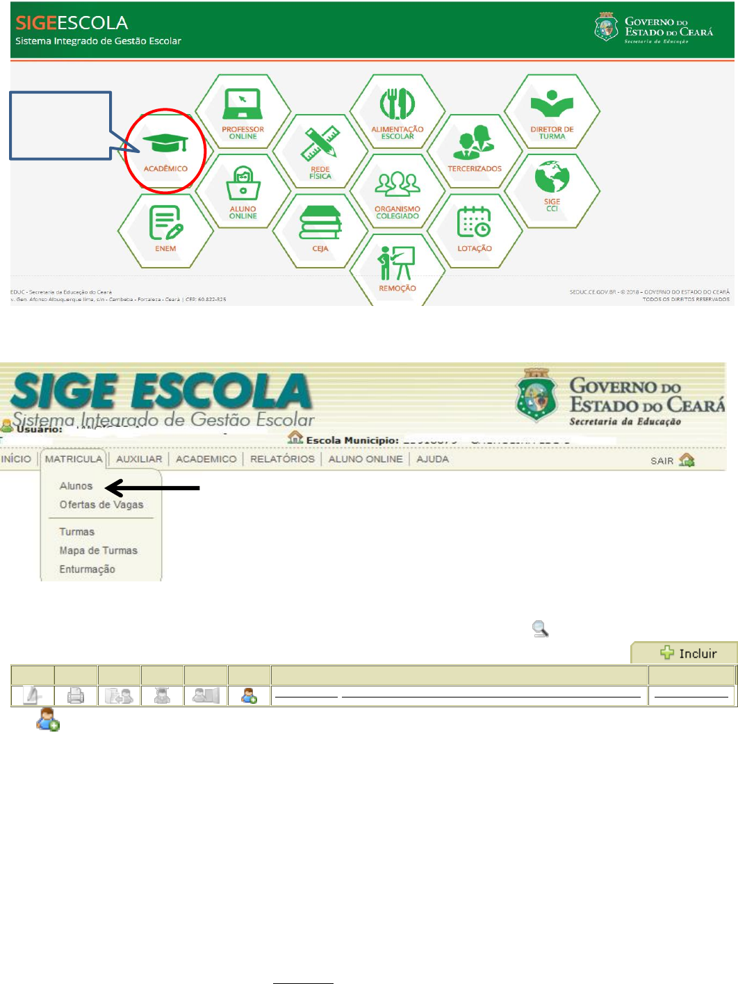 TUTORIAL PARA O ACESSO DO SIGE ESCOLA 1. Apresentação do SIGE ESCOLA 2. Acesso ao SIGE ESCOLA 3. Após criar as ofertas de vagas e as turmas continua com os seguintes passos. 4. Matricular os alunos veteranos 5. Buscar os alunos que veio de outras escolas ou que não encontrou na turma: Matricula/aluno/ OBS: (se for da escola deixa o nome da mesma) se não for apaga tudo (cod. e nome) ou se você souber de onde ele veio coloca cod. e nome da escola de origem. Ai é só digitar o nome do aluno e quando encontrar: buscar/ Nome Dt. Nasc. 1723928 - ANTONIO ROBSON CARVALHO DA SILVA 28/03/2002 Clica em (matricular aluno) e coloca na turma que o aluno será matriculado. Depois é só enturmar. 6. Matricular alunos da creche ou que não foi colocado no SIGE: Matricula/aluno/incluir. Responder todas as perguntas em seguida (é necessário os documentos do aluno) em seguida incluir. 7. Enturmar os alunos veteranos: Matricula/enturmação/Oferta/buscar/incluir/Selecionar oferta (Selecionar turma (ordem alfabética). 8. Colocar as infrequências: acadêmico/infrequência Ano Letivo: 2024. Ano Referência: 2024. Oferta: ....... Turma: ....... Mês: ......... Disciplina: todas Coloca a quantidade de aula das disciplinas e coloca a falta mensal de cada aluno. 9. Colocar notas dos alunos: acadêmico/avaliação Ano: 2024. Oferta: ano. Período: ....... Turma: ......... Disciplina: todas. Coloca as notas e incluir. 10. Outros instrumentos: acadêmico/ material de escrituração/boletim/horário das aulas 11. Ver os alunos matriculados: relatório/alunos (selecionar turma) VER TAMBEM: calendário letivo-gráfico-mapa-disciplinas critica. DUVIDAS LIGAR: 992827127 ANTONIO CLAUDIO AZEVEDO BARROS Matricula/aluno/movimento/incluir Tipo de Movimento: Veterano Tipo de Matricula: Admitido Oferta de Origem: seleciona a turma (turma e ano anterior) /Oferta de destino (turma e ano atual) LOGIN SENHA http://sige.seduc.ce.gov.br/Academico/Alunos/Alunos/Aluno_cad.asp?Inc_Alt=I