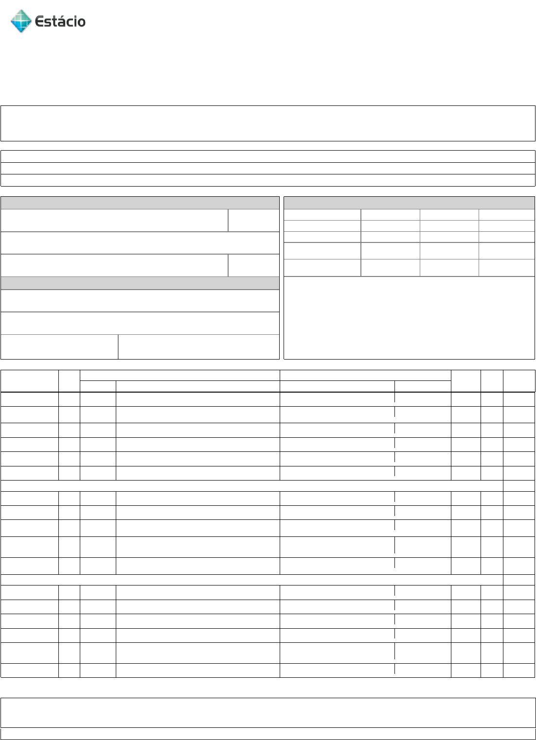 Histórico Escolar UNIVERSIDADE ESTÁCIO DE SÁ Recredenciamento: Portaria n°1095, de 31/08/2012 publicada no DOU n°172, Seção 1, Pág. 97, de 04/09/2012 Folha: 1/4 (e-MEC 163) Nome do Aluno: PALOMA PEREIRA DE OLIVEIRA DAVIDOVICH Matrícula: 2019.03.50922-1 Nacionalidade: BRASILEIRO(A) Naturalidade: SAO JOAO DE MERITI-RJ Data de Nascimento: 24/02/2000 CPF: 171487797-31 Identidade: 31.517.837-6 Órgão/UF Expedidor: DETRAN/RJ Ensino Médio: CIEP 179 PROFESSOR CLAUDIO GAMA UF: RJ Ano de Conclusão: 2017 Forma de Ingresso: ENEM Total de Pontos: 0 Mês/Ano de ingresso: 01/2019 Período Acadêmico TP Disciplinas Docente Carga Código Nome Nome Titulação Horária Grau Situação Final 2019.1 M CEL0014 LÍNGUA PORTUGUESA FABIANO GUIMARAES DA ROCHA MESTRADO 44 8,0 AP 2019.1 M CEL1102 ASPECTOS ANTROPOLÓGICOS E SOCIOLOGICOS DA EDUCAÇÃO JOAO MARCUS PERELLI DOS SANTOS MESTRADO 88 7,2 AP 2019.1 M CEL1122 CULTURA, DIVERSIDADE E EDUCAÇÃO JOAO MARCUS PERELLI DOS SANTOS MESTRADO 66 7,5 AP 2019.1 M CEL1156 FILOSOFIA DA EDUCAÇÃO LEONARDO BRUNO DA SILVA MESTRADO 66 7,1 AP 2019.1 M CEL1199 HISTÓRIA DA EDUCAÇÃO LEONARDO BRUNO DA SILVA MESTRADO 66 7,4 AP 2019.1 M CEL1304 PSICOLOGIA DA EDUCAÇÃO NELSON ANTONIO FERREIRA ESPECIALIZAÇÃO 66 6,0 AP C.R. do Período: 7,16 2019.2 M CEL1129 EDUCAÇÃO, TECNOLOGIAS E NOVAS MÍDIAS CARMELITA VIEIRA DE MELO ESPECIALIZAÇÃO 66 7,0 AP 2019.2 M CEL1157 FILOSOFIA DA EDUCAÇÃO BRASILEIRA LEONARDO BRUNO DA SILVA MESTRADO 66 6,6 AP 2019.2 M CEL1236 LÍNGUA PORTUGUESA-FUNDAMENTOS METOD. E PRÁTICA ARLENE VIDAL DA COSTA LEITE MESTRADO 110 7,8 AP 2019.2 M CEL1259 MATEMÁTICA - FUNDAMENTOS METODOLOGIA E PRÁTICA MICHAEL DE LIMA BALZANA DE MELO PINTO MESTRADO 110 7,0 AP 2019.2 M CEL1305 PSICOLOGIA DO DESENVOLVIMENTO E DA APRENDIZAGEM ANA PAULA RODRIGUES COUTINHO MESTRADO 88 9,2 AP C.R. do Período: 7,58 2020.1 E CCE0054 ÉTICA E RESPONSABILIDADE SOCIAL GEORGIA GOMES VICENTE MESTRADO 44 9,0 AP 2020.1 M CEL0101 TÓPICOS EM LIBRAS: SURDEZ E INCLUSÃO DAMIAO FERREIRA DA SILVA ESPECIALIZAÇÃO 44 10,0 AP 2020.1 M CEL1104 AVALIAÇÃO DA APRENDIZAGEM DEBORA RAQUEL ALVES BARREIROS DOUTORADO 88 9,5 AP 2020.1 M CEL1160 FUNDAMENTOS DA EDUCAÇÃO DE JOVENS E ADULTOS REGINA FATIMA CURY AZEVEDO MESTRADO 44 10,0 AP 2020.1 M CEL1281 PEDAGOGIA NAS INSTITUIÇÕES NÃO ESCOLARES MARTA TEIXEIRA DO AMARAL MONTES DOUTORADO 88 0,0 RN 2020.1 M CEL1354 METODOLOGIA CIENTÍFICA ADRIANA DE SOUZA CARVALHO MESTRADO 66 10,0 AP DADOS DO CURSO Curso: Nº e-MEC: PEDAGOGIA 69386 Titulação: LICENCIADO (A) EM PEDAGOGIA Habilitação: Currículo: 118 ATOS REGULATÓRIOS Reconhecimento: Portaria n° 73, de 29/05/2006, DOU n° 103, Seção 1, Pág. 21, de 31/05/2006. Renovação: Portaria n° 153, de 21/06/2023, DOU n° 117, Seção 1, Pág. 210, de 22/06/2023. Duração Máxima do Curso: Cursados pelo Aluno: 16 10 SITUAÇÃO DO ALUNO Horas Total Cumpridas A Cumprir G1 88 264 0 Mínima 4026 4202 0 Atividades Acadêmicas Complementares (AAC) 200 215 0 Carga Horária Total 4314 4681 0 Endereço da Sede UNIVERSIDADE ESTÁCIO DE SÁ Avenida Das Americas, 4200 - Barra Da Tijuca - Rio De Janeiro - RJ - CEP.: 22640-102 Endereço do Campus/Polo Av. Automóvel Clube, 2384, - Vilar Dos Teles - Sao Joao de Meriti - RJ - CEP.: 25.515-126 http://www.estacio.br Histórico Escolar UNIVERSIDADE ESTÁCIO DE SÁ Período Acadêmico TP Código Nome Nome Carga Horária Grau Situação FinalTitulação Disciplinas Docente Nome do Aluno: PALOMA PEREIRA DE OLIVEIRA DAVIDOVICH Matrícula: 2019.03.50922-1 Recredenciamento: Portaria n°1095, de 31/08/2012 publicada no DOU n°172, Seção 1, Pág. 97, de 04/09/2012 Folha: 2/4 (e-MEC 163) 2020.1 E CEL1380 FILOSOFIA DA LINGUAGEM CLAUDIO BENEVENUTE LOZANA MESTRADO 44 0,0 RN C.R. do Período: 6,63 2020.2 M* CEL1096 ALFABETIZAÇÃO E LETR. - FUNDAMENTOS METOD.E PRAT. JANALBER REIS GONCALVES ESPECIALIZAÇÃO 110 6,5 AP 2020.2 M* CEL1101 ARTE E EDUCAÇÃO-FUND. METODOLOGIA E PRÁTICA FABIO JOSE PAZ DA ROSA MESTRADO 110 6,8 AP 2020.2 M* CEL1119 CORPO E MOVIMENTO-FUNDAMENTOS, METODOLOGIA E PRÁT. ANA PAULA DA SILVA SANTOS DOUTORADO 110 9,5 AP 2020.2 M CEL1127 EDUCAÇÃO PROFISSIONAL : TEORIA E PRÁTICA CARLA CORDEIRO MARCAL Y GUTHIERREZ MESTRADO 88 9,3 AP 2020.2 M* CEL1128 EDUCAÇÃO, SEXUALIDADE E GÊNERO RENATA JABOUR SARAIVA DOUTORADO 66 10,0 AP 2020.2 M* CEL1289 POLÍTICAS PÚBLICAS E ORGANIZAÇÃO DA EDUC. BÁSICA ISOLDA CECILIA BRAVIN DOUTORADO 110 8,0 AP 2020.2 M* CEL1308 SUPERVISÃO E ORIENTAÇÃO PEDAGÓGICA THEREZINHA DE JESUS CONDE PINTO MESTRADO 66 9,5 AP C.R. do Período: 8,32 2021.1 M* CEL1105 AVALIAÇÃO INSTITUCIONAL FABIO JOSE PAZ DA ROSA MESTRADO 88 8,4 AP 2021.1 M* CEL1124 DIDÁTICA CARMELITA VIEIRA DE MELO ESPECIALIZAÇÃO 154 8,9 AP 2021.1 M CEL1138 ESTÁGIO DE DOCÊNCIA NA EDUCAÇÃO BÁSICA CARLA CORDEIRO MARCAL Y GUTHIERREZ MESTRADO 176 9,0 AP 2021.1 M* CEL1215 INFORMÁTICA APLICADA À EDUCAÇÃO RENATO SANTANA MESTRADO 44 5,0 RN 2021.1 M* CEL1238 LINGUAGENS E COMUNICAÇÃO DOCENTE ARLENE VIDAL DA COSTA LEITE MESTRADO 66 8,8 AP C.R. do Período: 8,51 2021.2 M* CEL1117 CIÊNCIAS POLÍTICAS EDUCAÇÃO E SOCIEDADE MARIANA DE FREITAS RASGA DOUTORADO 66 9,0 AP 2021.2 M* CEL1154 PROBABILIDADE E ESTATÍSTICA APLICADA À EDUCAÇÃO NEYDE MARIA ZAMBELLI MARTINS PEREIRA MESTRADO 88 7,0 AP 2021.2 M* CEL1190 GESTÃO DE PESSOAS E DINÂMICAS INTERATIVAS MARCELINO TADEU DE ASSIS MESTRADO 88 8,0 AP 2021.2 M* CEL1215 INFORMÁTICA APLICADA À EDUCAÇÃO RENATO SANTANA MESTRADO 44 7,0 AP 2021.2 M* CEL1279 ORIENTAÇÃO PROFISSIONAL: ATUAÇÃO PEDAGÓGICA THEREZINHA DE JESUS CONDE PINTO MESTRADO 44 10,0 AP 2021.2 M* CEL1281 PEDAGOGIA NAS INSTITUIÇÕES NÃO ESCOLARES MARTA TEIXEIRA DO AMARAL MONTES DOUTORADO 88 8,0 AP C.R. do Período: 8,05 2022.1 E CCJ0012 DIREITO AMBIENTAL TATIANA FERNANDES DIAS DA SILVA MESTRADO 44 9,0 AP 2022.1 E CEL0032 HISTÓRIA DOS POVOS INDÍGENAS E AFRO- DESCENDENTES GEORGIA GOMES VICENTE MESTRADO 44 9,0 AP 2022.1 E CEL0066 EDUCAÇÃO AMBIENTAL SANDRA REGINA
