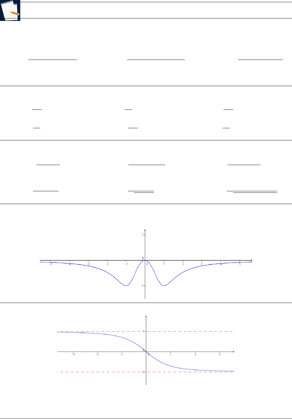 Cálculo I Atividade 05-C1-2024-2 1. Utilizando o limite trigonométrico fundamental, determine os seguintes limites de funções: (a) lim x→0 1− cos(2x) sen (x) sen (2x) (b) lim x→0 2 tg(x) + sen(2x) 3x (c) lim x→−4 1− cos(x+ 4) x2 + 8x+ 16 2. Calcule, se existirem, os seguintes limites de funções: (a) lim x→0+ −3 x5 (b) lim x→0 11 x4 (c) lim x→0− −4 x17 (d) lim x→0+ 5 x6 (e) lim x→0− −7 x18 (f) lim x→0+ 13 x9 3. Calcule os seguintes limites infinitos de funções: (a) lim x→−2+ 3x2 − 1 x+ 2 (b) lim x→2− x3 + x+ 1 x2 − 3x+ 2 (c) lim x→−1+ x− 4 2 + x− x2 (d) lim x→4+ x2 − 1 (4− x)3 (e) lim x→3− 1− x√ 9− x2 (f) lim x→−4− −6 5 √ x3 + x2 − 12x 4. Seja f : R → R a função cujo gráfico está esboçado na figura que segue. Determine lim x→+∞ f(x) e lim x→−∞ f(x). 5. Seja f : R→ R a função cujo gráfico está esboçado na figura abaixo. Determine lim x→+∞ f(x) e lim x→−∞ f(x). 1 Professor Mário Olivero (UFF) Cálculo I 6. Calcule os seguintes limites de funções: (a) lim x→+∞ −2 x5 (b) lim x→−∞ 5 x4 (c) lim x→−∞ −4 x7 (d) lim x→−∞ 8 x3 + 1 (e) lim x→+∞ 3− 7 x11 (f) lim x→+∞ 15 x8 − 9 7. Calcule os seguintes limites de funções: (a) lim x→+∞ 4x5 − x3 − 2x+ 1 (b) lim x→−∞ 2x3 − 5x2 + x− √ 3 (c) lim x→+∞ √ 6x8 − x5 + x4 − 7x3 (d) lim x→−∞ −4x9 + x7 − 10x5 − √ 2x3 + x2 (e) lim x→+∞ 4− 5 √ 3x2 + x3 − 2x4 (f) lim x→−∞ √ 5x− x2 + 4x3 − 3x5 8. Calcule, se existirem, os seguintes limites de funções: (a) lim x→+∞ 2− √ 5 + x (b) lim x→−∞ 4 √ 1− √ 3x (c) lim x→+∞ 4 + 3 √ 2 √ 5− x2 (d) lim x→−∞ 6 √ x+ 4 3 √ 2 (e) lim x→+∞ 5 + 8 √ 3 √ 4 + x− 2x2 (f) lim x→−∞ √ 4x2 − 3 √ 3x 9. Calcule os seguintes limites de funções: (a) lim x→+∞ 3x2 − x+ √ 5 2 + x2 (b) lim x→−∞ 6x7 − x5 + 4 √ 3x2 − x x7 − 3 √ 2x4 + x2 − 1 (c) lim x→−∞ 5x4 − 4x+ 6 2x2 − 1 (d) lim x→−∞ x3 − x2 − √ 5x+ 1√ 2x4 + x3 − x2 (e) lim x→−∞ √ 4x2 − √ 3x+ 1 x2 + x+ 2 (f) lim x→+∞ 3 √ 2 + x2 − √ 7x4 x3 + 1 10. Considere o gráfico da função f dado abaixo: Analisando o gráfico de f , determine, se existirem: 2 Professor Mário Olivero (UFF) Cálculo I (a) lim x→−1+ f(x) e lim x→−1− f(x). O que você pode concluir do lim x→−1 f(x)? (b) lim x→1+ f(x) e lim x→1− f(x). O que você pode concluir do lim x→1 f(x)? (c) lim x→+∞ f(x) e lim x→−∞ f(x). (d) as assı́ntotas horizontais e as assı́ntotas verticais do gráfico de f . 11. Considerando o gráfico que segue da função f , determine, se existirem: (a) o domı́nio e a imagem de f ; (b) os intervalos onde f(x) > 0 e f(x) 0 e f(x) 0 e f(x)