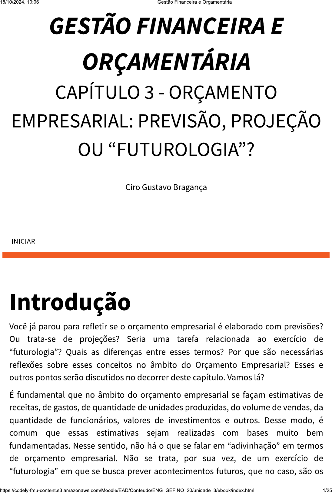 18/10/2024, 10:06 Gestão Financeira e Orçamentária GESTÃO FINANCEIRA E ORÇAMENTÁRIA CAPÍTULO 3 - ORÇAMENTO EMPRESARIAL: PREVISÃO, PROJEÇÃO OU "FUTUROLOGIA"? Ciro Gustavo Bragança INICIAR Introdução Você já parou para refletir se o orçamento empresarial é elaborado com previsões? Ou trata-se de projeções? Seria uma tarefa relacionada ao exercício de "futurologia"? Quais as diferenças entre esses termos? Por que são necessárias reflexões sobre esses conceitos no âmbito do Orçamento Empresarial? Esses e outros pontos serão discutidos no decorrer deste capítulo. Vamos lá? É fundamental que no âmbito do orçamento empresarial se façam estimativas de receitas, de gastos, de quantidade de unidades produzidas, do volume de vendas, da quantidade de funcionários, valores de investimentos e outros. Desse modo, é comum que essas estimativas sejam realizadas com bases muito bem fundamentadas. Nesse sentido, não há o que se falar em "adivinhação" em termos de orçamento empresarial. Não se trata, por sua vez, de um exercício de "futurologia" em que se busca prever acontecimentos futuros, que no caso, são os 1/2518/10/2024, 10:06 Gestão Financeira e Orçamentária elementos do orçamento. São necessárias aplicações técnicas que favoreçam a fidedignidade e a compreensão das bases utilizadas para as estimativas. Contudo, ressalta-se que comumente são utilizados termos como previsão e projeção para as estimativas das receitas, sendo estes, por sua vez, os mais adequados quando se trata de estimativas do orçamento. Destaca-se, desse modo, que o termo projeção é ainda mais adequado quando se fala de Orçamento Empresarial, considerando que projetar está relacionado com o ato de projetar que será feito, e não simplesmente prever o acontecimento. É mais adequado utilizar o termo projetar, pois está ligado à influência de quem elaborará o orçamento, projetando que será feito. Finalmente, o ato de projetar está estritamente ligado ao controle do que será feito e, portanto, confere maior confiabilidade às estimativas que serão feitas. Neste capítulo, você verá o controle orçamentário e o planejamento financeiro no âmbito do orçamento familiar, além das bases para as projeções dos orçamentos financeiro e de caixa e das projeções dos demonstrativos financeiros, e ainda a introdução às finanças e aos índices financeiros. Cada tema será apresentado em um tópico. Acompanhe atentamente todo o conteúdo ao longo do capítulo. Uma boa leitura e bons estudos! 3.1 Orçamento familiar A prática orçamentária é muito útil no âmbito corporativo, ou seja, dentro das organizações, com foco nas operações e com vistas ao lucro. Entretanto, o orçamento também é muito importante no âmbito doméstico ou no campo das finanças pessoais. De acordo com Assaf Neto e Lima (2014, p. 4), as finanças pessoais vêm "ganhando grande importância com o estudo dos investimentos e financiamentos das pessoas físicas, encontrando alta relação com a área de mercado financeiro". Note que o orçamento pode ser observado pelas famílias como forma de planejamento de suas finanças com vistas ao adequado manejo na captação e alocação dos recursos. Desse modo, pode contribuir para o planejamento financeiro familiar de curto e longo prazo, favorecendo a administração da renda da família e sugerindo melhores decisões em relação ao capital. Com base nisso, tanto o controle orçamentário quanto o planejamento financeiro serão úteis para as famílias no contexto do orçamento familiar, o qual, por sua vez, pertence às finanças pessoais. 2/2518/10/2024, 10:06 Gestão Financeira e Orçamentária 3.1.1 Controle orçamentário De um modo geral, as pessoas desejam que o dinheiro recebido por seus esforços seja bem aplicado, não é? Ou seja, esperam que suas decisões ou escolhas sobre o que comprar e que não comprar sejam as melhores possíveis. Além disso, outras questões precisam ser levadas em conta pelos indivíduos no momento de utilizarem-se dos seus recursos, sendo eles: a forma de pagamento do bem ou serviço (à vista ou a prazo); o valor do bem ou serviço adquirido; e a duração dos benefícios gerados pela compra do bem ou serviço adquirido. Com base nisso, as decisões e escolhas das pessoas sobre o que fazer com o capital que possuem, ou com o crédito para compra que lhes foi conferido, devem ser precedidas de um adequado controle orçamentário. As pessoas podem se utilizar do controle para fins de reflexão acerca de suas necessidades pessoais, dentro daquilo que irá contribuir efetivamente e positivamente com as finanças da família. O primeiro ponto a se pensar acerca do controle orçamentário familiar é a completude das informações sobre os rendimentos ou proventos da família, bem como de todos os gastos realizados pelos membros. segundo ponto é que, preferencialmente, todos os componentes do orçamento devam ser registrados em planilha, via papel ou eletrônica. Em terceiro, tem-se que não há qualquer tipo de controle se não tiver medição e, por isso, é de extrema importância que haja confrontação entre valores orçados e os valores efetivamente ocorridos. Portanto, compreende-se que o controle orçamentário deve ser realizado mediante os seguintes aspectos: ciência dos proventos e dos gastos da família; registro ou contabilização de todos os itens do orçamento familiar; confrontação dos valores orçados e dos valores realizados. VOCÊ CONHECE? Ernest Engels foi um estatístico e economista alemão que criou leis para o entendimento do orçamento familiar. A mais conhecida delas foi intitulada como "Lei de Engels" e retrata que à medida que a renda aumenta, diminui a proporção da renda que é gasta com alimentos (ZIMMERMAN, 1936 apud LEITE, 2017). 3/2518/10/2024, 10:06 Gestão Financeira e Orçamentária controle orçamentário é útil para as famílias pois favorece a utilização 