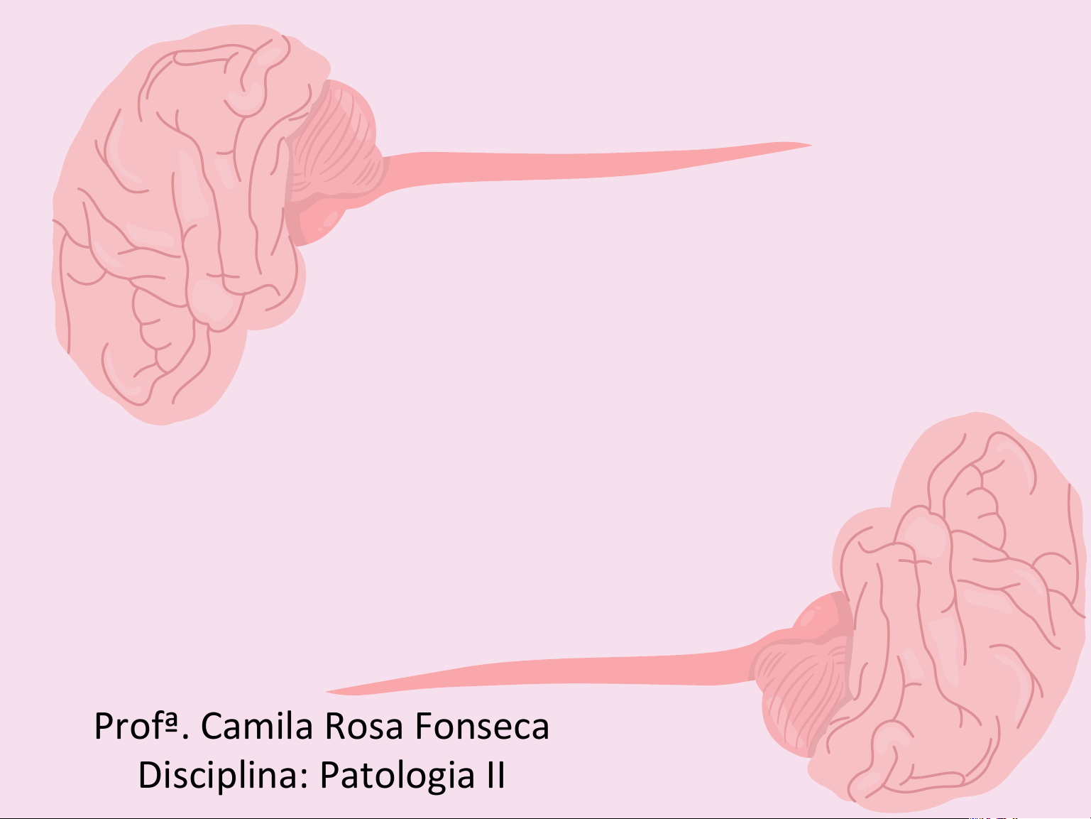Neuropatologia Profª. Camila Rosa Fonseca Disciplina: Patologia II Anatomia SNC Encéfalo (cérebro, cerebelo, T.E) Medula espinhal SNP Nervos periféricos (cranianos e espinhais) Glânglios Terminações nervosas Medula espinhal Células do SNC Neurônios Glia Astrócitos Oligodendrócitos Micróglia Células ependimárias Células endoteliais e pericitos Meninges Transmissão de impulsos Interpretação dos impulsos Regulação dos impulsos Células do SNC Neurônios Glia Astrócitos Oligodendrócitos Micróglia Células ependimárias Células endoteliais e pericitos Meninges Regulação Reparo Suporte Barreiras Células do SNC Neurônios Glia Astrócitos Oligodendrócitos Micróglia Células ependimárias Células endoteliais e pericitos Meninges Tipo I Fibroso Substância branca Tipo II Protoplasmático Substância cinzenta Barreira hematoencefálica BBB Células do SNC Neurônios Glia Astrócitos Oligodendrócitos Micróglia Células ependimárias Células endoteliais e pericitos Meninges Mielinização Nutrição neuronal Células do SNC Neurônios Glia Astrócitos Oligodendrócitos Micróglia Células ependimárias Células endoteliais e pericitos Meninges Imunoregulação Fagocitose Células do SNC Neurônios Glia Astrócitos Oligodendrócitos Micróglia Células ependimárias Células endoteliais e pericitos Meninges Movimento do FCE (fluido cérebro- espinhal) Secreção do FCE Barreira sangue-FCE Células do SNC Neurônios Glia Astrócitos Oligodendrócitos Micróglia Células ependimárias Células endoteliais e pericitos Meninges Barreira Transporte seletivo de moléculas Células do SNC Neurônios Glia Astrócitos Oligodendrócitos Micróglia Células ependimárias Células endoteliais e pericitos Meninges Barreira aracnóide- FCE Amortecimento Células do SNP Neurônios Células de Schwann Transmissão de impulsos Interpretação dos impulsos Regulação dos impulsos Células do SNP Neurônios Células de Schwann Mielinização Satelitose Mecanismos de defesa Pele Crânio e coluna vertebral Meninges e fluido cérebro-espinhal Barreiras Hemato-encefálica Hemato-fluido cérebro-espinhal Glia limitante Micróglia Resposta imunológica Barreiras do SNC Barreira hemato-encéfalica Glia limitante externa Barreira hemato-fluido cérebro-espinhal Barreira fluido cerebro-espinhal-encéfalo Portas de entrada de agentes infecciosos Extensão direta Trauma penetrante no crânio Infecção no ouvido médio ou interno Infecção a cavidade nasal ou sinos Via hematógena Meninges Plexo coróide e fluido cérebro-espinhal Leucócitos Macrófagos e linfócitos Transporte axonal retrógrado Fluxo axoplásmico retrógrado Alterações post- mortem Liquefação 3-4 dias Respostas celulares as lesões Meninges Meningite Leptomeningite Paquimeningite Respostas celulares as lesões Meninges Mineralização e ossificação Respostas celulares as lesões Células endoteliais Vasculite Infarto Respostas celulares as lesões Células endoteliais Infarto Edema no SNC Citotóxico Metabolismo celular alterado Vasogênico Lesão vascular com quebra da BHE Hidrostático Pressão hidrostática ventricular elevada Hipo-osmótico Desequilíbrio osmótico plasma X microambiente do SNC Edema no SNC Status Spongiosus Substância branca Substância cinzenta Tumefação cerebral congestiva Malformações Defeitos de fechamento do tubo neural (Disrafia) Anencefalia Meningoencefalocele e Crânio bífido Meningomieliocele e Espinha bífida Hidromielia Anencefalia Presença rudimentar ou ausência de encéfalo Hemisférios ausentes Tronco encefálico preservado Bovinos Ratos Hipervitaminose A e Ciclofosfamida Meningoencefalocele e Crânio bífido Craniosquise Craniosquise Exencefalia Meningomieliocele e Espinha bífida Hidrocefalia Hidrocefalia Hidromielia Síndrome de Arnold-Chiari Malformações Lisencefalia Porencefalia e Hidranencefalia Hipoplasia cerebelar Parvovirus (felinos e caninos) Pestivirus (bovinos e suínos) Siringomielia Hidrocefalia Congênita Adquirida Lisencefalia Porencefalia e Hidranencefalia Hidranencefalia (canino) Hidranencefalia (canino) Hidranencefalia (ovino) Hipoplasia cerebelar Microcefalia (ovino) Microcefalia (bovino) Contusão Contusão Hematoma subdural Doenças metabólicas Encefalopatia hepática Amônia Transito de substâncias nas membranas celulares neuronais Inibe o potencial pós-sináptico dos neurônios Aumento da permeabilidade da BHE (edema vasogênico) Altera a regulação osmótica Encefalopatia hepática Espongiose Doenças bacterianas Abscessos cerebrais Bacteremia ou septicemia Crescimento Rápido: ruptura do tecido Lento: compressão e deslocamento de estruturas Extensão de otite interna Equinos: garrotilho Bovinos: descorna Osteomielite Abscessos cerebrais Abscessos cerebrais Abscessos cerebrais Pasteurella multocida e Actinomyces pyogenes Abscessos na medula Abscesso na medula Encefalite Difusa Septicemia neonatal Escherichia coli, Streptococcus spp., Salmonella spp., Pasteurella spp., Haemophilus spp. Ingestão de colostro Bactérias comuns Via hematógena Doenças virais Herpesvirus Febre catarral maligna Rinotraqueite infecciosa bovina Herpesvirus bovino tipo 5 Pseudoraiva (doença de Aujeszki) Herpesvirus equino tipo 1 Transporte axonal retrógrado Febre catarral maligna Ruminantes, cervo, búfalo e antílope Gammaherpesvirinae Macro: hiperemia e meninges esbranquiçadas Micro: vasculites necrosante, degeneração neuronal, , microgliose, coroidite, necrose do epêndima e ganglioneurite Febre catarral maligna Febre catarral maligna Febre catarral maligna Febre catarral maligna Rinotraqueite infecciosa bovina BHV-1 Meningoencefalite não-supurativa Replica na mucosa nasal Nervos olfatórios Transporte axonal retrógrado Degeneração neuronal Malácia focal Corpúsculos de inclusão intranucleares acidofílicos em neurônios e astrócitos BHV-5 meningoencefalite não-supurativa e necrosante Pseudoraiva Herpesvirus suíno tipo 1 Doença de Aujeszki Replicação