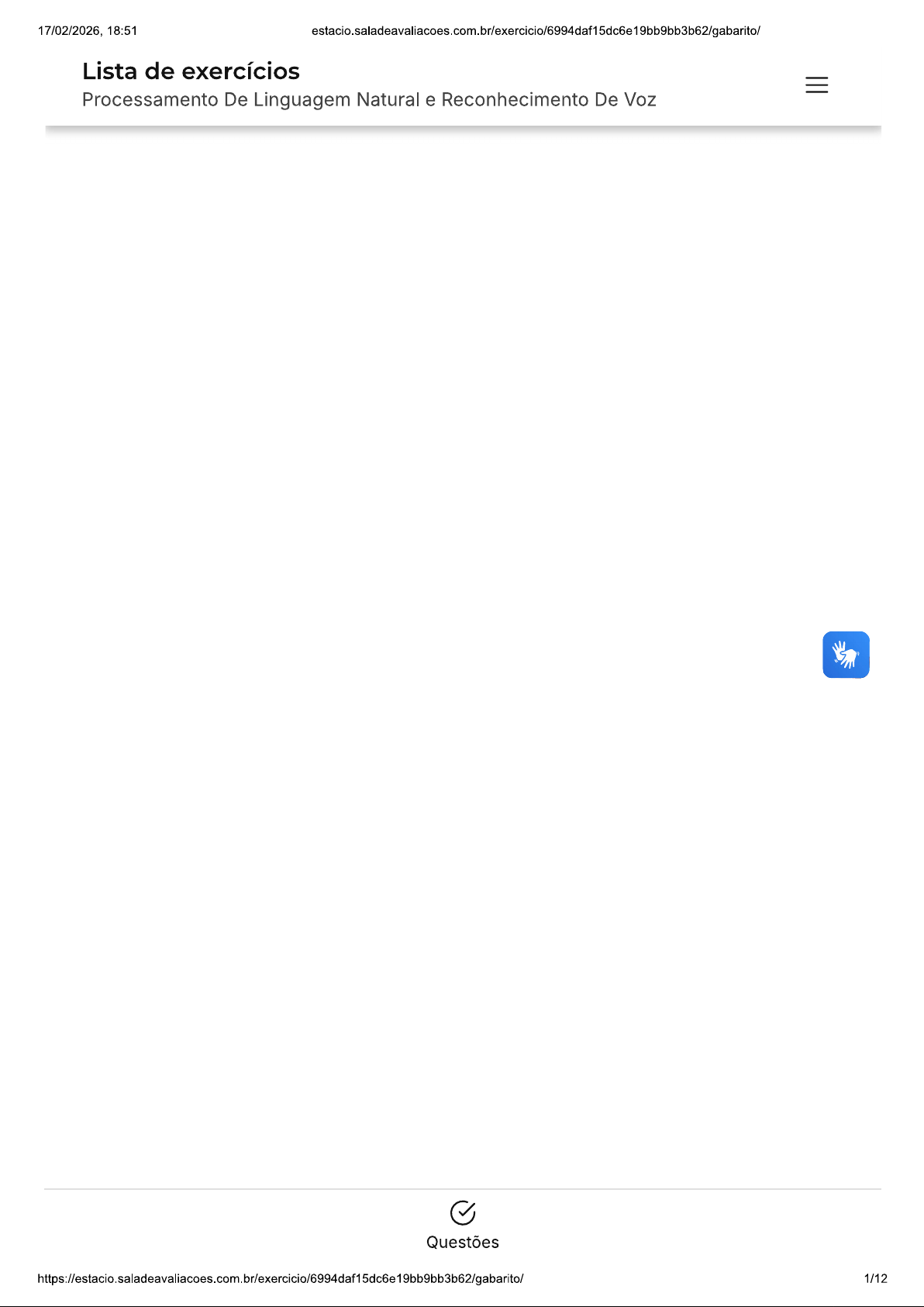 17/02/2026, 18:51 Lista de exercícios Processamento De Linguagem Natural e Reconhecimento De Voz Questões 1/1217/02/2026, 18:51 estacio.saladeavaliacoes.com.br/exercicio/6994daf15dc6e19bb9bb3b62/gabarito/ Você acertou 9 de 10 questões Verifique seu desempenho e continue treinando! Você pode refazer exercício quantas vezes quiser. Verificar Desempenho 1 Marcar para revisão Quando nos referimos à tarefa de juntar documentos semelhantes em subconjuntos de forma automática, baseado em similaridades em suas palavras, escrita ou tema, estamos nos referindo à clusterização ou agrupamento. Qual destes algoritmos poderia nos ajudar na determinação do cálculo da relevância de uma palavra em uma série ou corpus para um texto? A TF-IDF KNN c K-Means D Gaussian Naive Bayes E LSTM Resposta correta Parabéns, você selecionou a alternativa correta. Confira gabarito comentado! 2/1217/02/2026, 18:51 estacio.saladeavaliacoes.com.br/exercicio/6994daf15dc6e19bb9bb3b62/gabarito/ Gabarito Comentado TF-IDF, que é a alternativa correta, é um cálculo estatístico que tem sido amplamente adotado em algoritmos de busca, como do Google, para determinar a relevância de um termo para um documento em um corpus. Ele faz isso ao analisar a frequência com que um termo aparece em um documento específico em comparação com sua frequência em todo corpus. Isso ajuda a identificar quais palavras são mais significativas para um texto específico, contribuindo para tarefas como a clusterização ou agrupamento de documentos semelhantes. Os outros algoritmos listados, como KNN, K-Means, Gaussian Naive Bayes e LSTM, têm diferentes aplicações e não são especificamente projetados para calcular a relevância de uma palavra em um corpus. 2 Marcar para revisão Quando fazemos processamento da linguagem natural, devemos descartar palavras que se repetem muito e que são tidas como auxiliares, adicionando pouca informação ao modelo. A esse conjunto de palavras damos nome de A Clearwords B Stopwords c Tokens D Sentenças E Verbos Resposta correta 3/1217/02/2026, 18:51 estacio.saladeavaliacoes.com.br/exercicio/6994daf15dc6e19bb9bb3b62/gabarito/ Gabarito Comentado As palavras que são frequentemente descartadas durante o processamento da linguagem natural são chamadas de 'Stopwords'. Essas palavras são geralmente as mais comuns em uma língua (como 'é', 'o', 'a', 'em', etc.) e não contribuem significativamente para significado de uma frase, sendo, portanto, consideradas 'ruído' no processo de análise. Por isso, são removidas para melhorar a eficiência do processamento e a precisão dos resultados. A alternativa correta é a letra 'Stopwords'. 3 Marcar para revisão Quando estamos lidando com PLN é preciso transformar dado textual em algo compreensível às máquinas para que elas possam operar sobre aquele conjunto. Qual destas é uma opção de transformação para este cenário? A Regressão B Vetorização Classificação D Pivot Table E Redução de Dimensionalidade X Resposta incorreta A alternativa correta é a letra Confira gabarito comentado! Gabarito Comentado 4/1217/02/2026, 18:51 estacio.saladeavaliacoes.com.br/exercicio/6994daf15dc6e19bb9bb3b62/gabarito/ as maquinas possam entender e operar. ISSO e teito transformando cada token (que pode ser uma palavra ou uma sentença) em um vetor ou tensor. Isso pode ser realizado por meio de técnicas como TF-IDF, Word2Vec ou Doc2vec. As outras opções apresentadas na questão, como regressão, classificação, Pivot Table e redução de dimensionalidade, são técnicas ou tipos de aprendizado de máquina, mas não são métodos diretos para transformar dados textuais em um formato compreensível para as máquinas. 4 Marcar para revisão Quando estamos falando de análise de sentimentos queremos mapear sentimento que uma mensagem passa, de positividade, neutralidade ou negatividade. Normalmente fazemos isso pela agregação de polaridades de palavras. Este tipo de tarefa pertence a que família de problemas de aprendizado de máquina supervisionado? A Regressão B Classificação c Agregação D Mineração de Regras de Associação E Mineração de Processos Resposta correta Parabéns, você selecionou a alternativa correta. Confira gabarito comentado! 5/1217/02/2026, 18:51 estacio.saladeavaliacoes.com.br/exercicio/6994daf15dc6e19bb9bb3b62/gabarito/ Mineração de Regras de Associação são métodos válidos de aprendizado supervisionado. A Regressão é utilizada para prever um valor numérico, enquanto a Mineração de Regras de Associação retorna um conjunto de combinações possíveis mais comuns. No entanto, a análise de sentimentos se enquadra na categoria de Classificação. Isso porque, apesar de operacionalizar valores de polarização, objetivo final é atribuir um rótulo ou uma classe de sentimento a um registro. Portanto, a alternativa correta é a Classificação, que se refere à rotulação de um registro. 5 Marcar para revisão Ao inspecionarmos as classes gramaticais de um conjunto de palavras, estamos passando para nosso algoritmo a noção de estrutura, de regras e composição linguística. Tal técnica pertence à área de análise sintática, permitindo a extração de A POS-Tags Tokens c Segmentos D Lemas E SOP-Tags Resposta correta Parabéns, você selecionou a alternativa correta. Confira gabarito comentado! https://estacio.saladeavaliacoes.com.br/exercicio/6994daf15dc6e19bb9bb3b62/gabarito/ 6/1217/02/2026, 18:51 UI um processo supervisionada ou semi-supervisionada de tokens em um texto. Nesse processo, cada palavra ou "átomo" do documento é associada a um rótulo de classe gramatical. Por exemplo, na frase "O rato roeu a roupa", cada palavra seria rotulada da seguinte forma: [artigo definido, substantivo comum, verbo, artigo definido, substantivo comum]. Portanto, ao inspecionar as classes gramaticais de um conjunto de palavras, estamos essencialmente realizando a extração de POS-Tags. 6 Marcar para revisão Qua