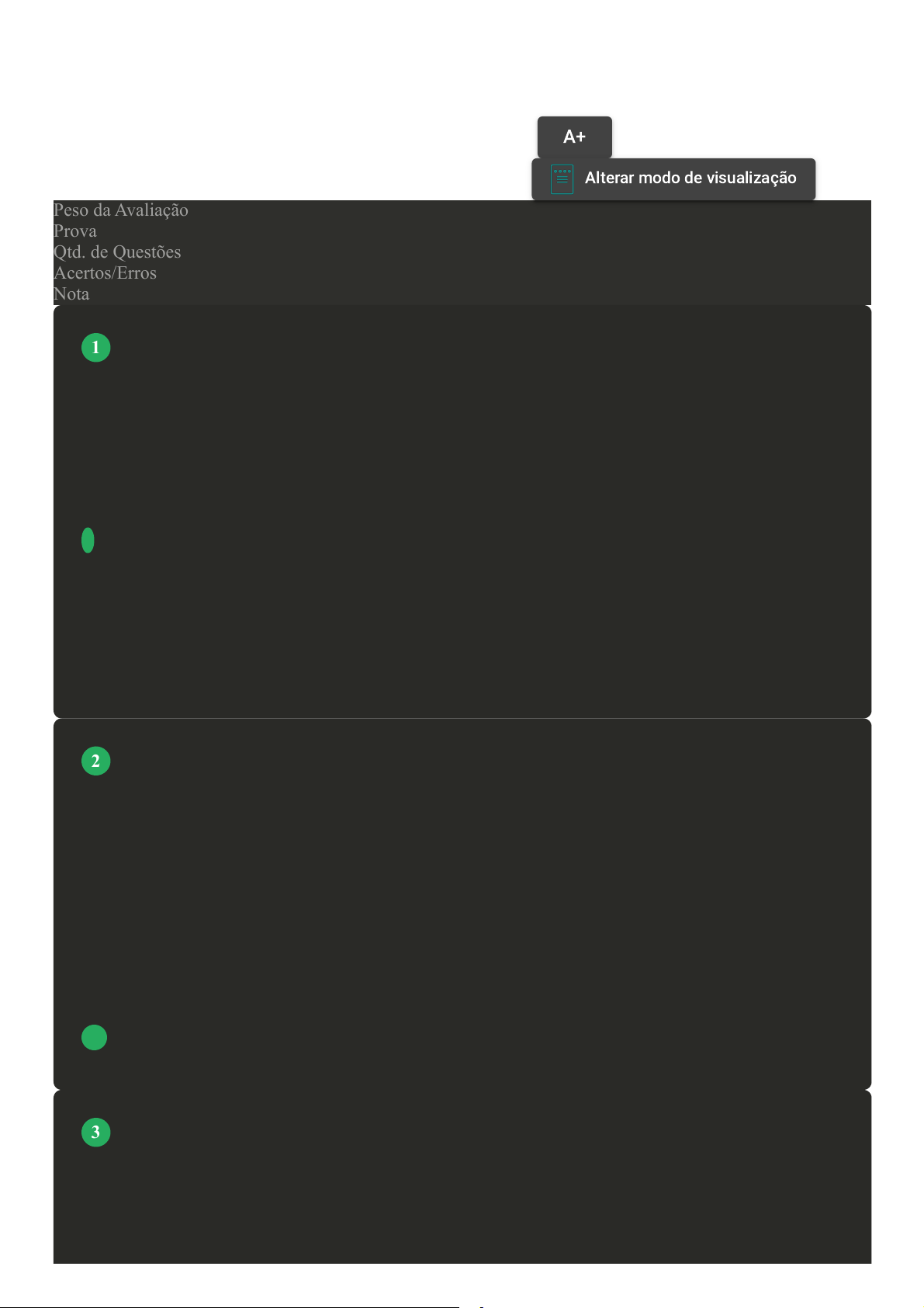 Prova Impressa GABARITO | Avaliação Final (Objetiva) - Individual (Cod.:1523640) Peso da Avaliação 4,00 Prova 105966410 Qtd. de Questões 10 Acertos/Erros 7/3 Nota 7,00 [Laboratório virtual - Teste de sentar e levantar] O teste de sentar e levantar cinco vezes é utilizado e tem sua validação em diversos acometimentos, por exemplo, com pacientes que tiveram acidente vascular cerebral e pacientes com doença de Parkinson. Sobre o exposto, assinale a alternativa CORRETA: A A utilização do teste de sentar e levantar cinco vezes no ambiente hospitalar e com a população idosa permite prever a necessidade de restrição ao leito. B A utilização do teste de sentar e levantar cinco vezes no ambiente hospitalar e com a população idosa permite avaliar diretamente a capacidade de sentar e levantar e, indiretamente, identificar o risco de quedas. C A utilização do teste de sentar e levantar cinco vezes no ambiente hospitalar e com a população idosa permite identificar o grau de comprometimento cognitivo. D A utilização do teste de sentar e levantar cinco vezes no ambiente hospitalar e com a população idosa permite prever diretamente a alta hospitalar. [Laboratório virtual - Manovacuometria] A manovacuometria é um método não invasivo, de baixo custo e clinicamente útil. Os dados obtidos pela manovacuometria são importantes porque auxiliam na avaliação muscular ventilatória. Acerca da manovacuometria, assinale a alternativa CORRETA: A Pode ser utilizada para avaliar o grau de obstrução existente na doença pulmonar obstrutiva. B Nos valores de normalidade, pode haver variações, sendo que obesos e mulheres têm valores mais altos. C O tratamento gera dor difusa devido à sobrecarga do equipamento. D Reflete a pressão desenvolvida pelos músculos ventilatórios, sob forma de PImáx e PEmáx. Os pacientes com doenças cardíacas e respiratórias, geralmente, apresentam dispneia, tosse, secreção, baqueteamento digital, entre outros sinais e sintomas. Com base no exposto, associe os itens, utilizando o código a seguir: I- O Baqueteamento digital é caracterizado pelo alargamento das falanges distais dos dedos da mão ou dos pés, associado ao aumento no ângulo da região da saída da unha, e é presente em pacientes VOLTAR A+Aumentar, Fonte Alterar modo de visualização 1 2 3
