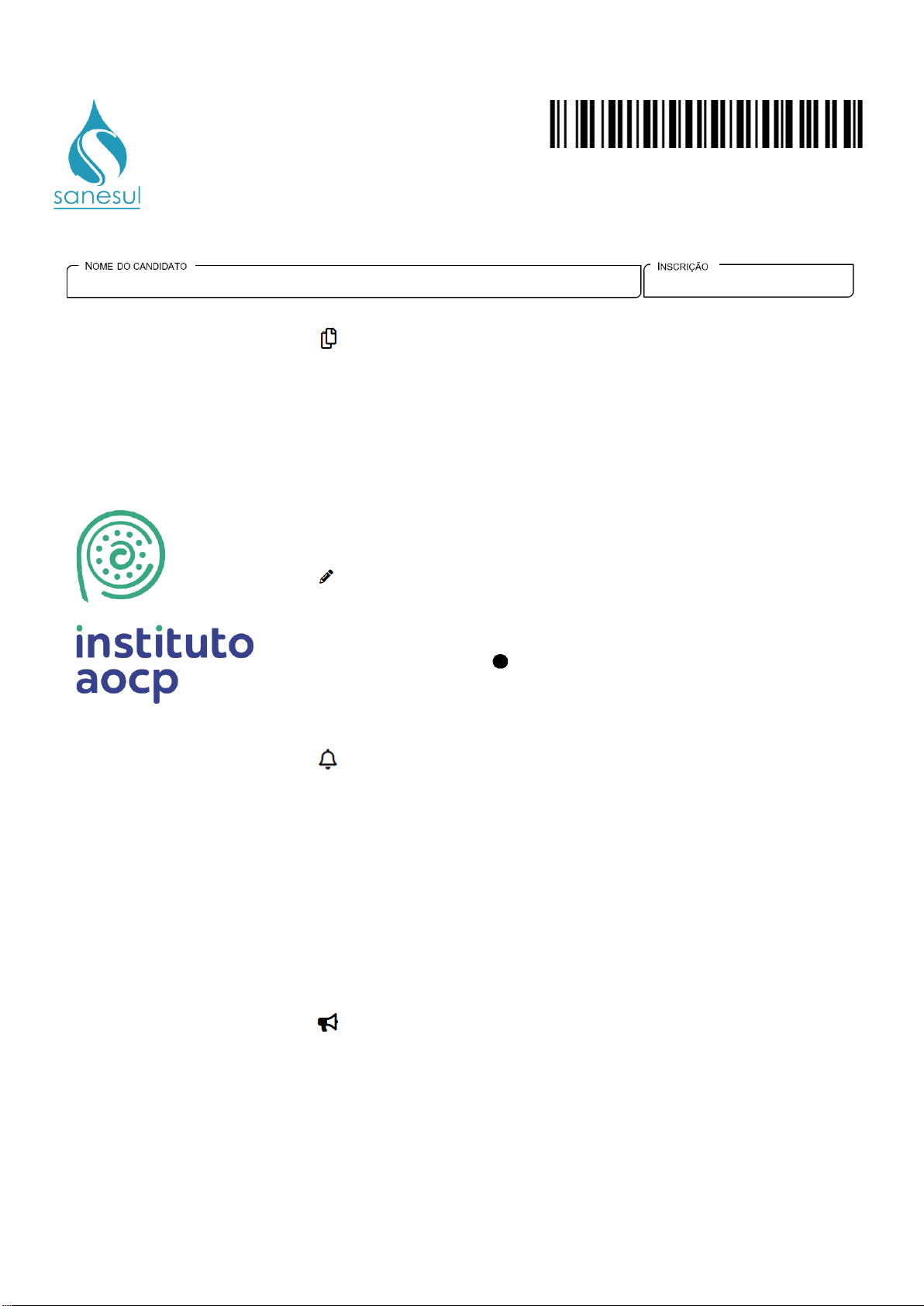 EDITAL DE CONCURSO PARA EMPREGO PÚBLICO N° 1/2025 M0441001N SANESUL – EMPRESA DE SANEAMENTO DE MATO GROSSO DO SUL S.A . AGENTE EM SANEAMENTO Nível MÉDIO Turno MANHÃ Fraudar ou tentar fraudar Concursos Públicos é Crime! Previsto no art. 311 - A do Código Penal Sobre o material recebido pelo candidato ✓ Além deste Caderno de Questões com sessenta questões objetivas, você receberá do fiscal de sala a Folha de Respostas. ✓ Confira seu nome, o número do seu documento e o número de sua inscrição em todos os documentos entregues pelo fiscal. Além disso, não se esqueça de conferir seu Caderno de Questões quanto a falhas de impressão e de numeração e se o emprego público corresponde àquele para o qual você se inscreveu. ✓ O não cumprimento a qualquer uma das determinações constantes em Edital, no presente Caderno e na Folha de Respostas incorrerá na eliminação do candidato. Sobre o material a ser devolvido pelo candidato ✓ O único documento válido para avaliação é a Folha de Respostas. ✓ Na Folha de Respostas, preencha o campo destinado à assinatura. As respostas das questões objetivas devem ser preenchidas da seguinte maneira: ✓ Na Folha de Respostas, só é permitido o uso de caneta esferográfica transparente de cor azul ou preta. Esse documento deve ser devolvido ao fiscal na saída, devidamente preenchido e assinado. Sobre a duração da prova e a permanência na sala ✓ O prazo de realização da prova é de 04 (quatro) horas, incluindo a marcação da Folha de Respostas. ✓ Após 60 (sessenta) minutos do início da prova, o candidato estará liberado para utilizar o sanitário ou deixar definitivamente o local de aplicação, não podendo, no entanto, levar o Caderno de Questões e nenhum tipo de anotação de suas respostas. ✓ O candidato poderá levar consigo o Caderno de Questões somente se aguardar em sala até o término do prazo de realização da prova estabelecido em Edital. ✓ Os três últimos candidatos só poderão retirar-se da sala juntos, após assinatura do Termo de Fechamento do Envelope de Retorno. Sobre a divulgação do Caderno de Questões e do Gabarito ✓ O Caderno de Questões e o Gabarito preliminar estarão disponíveis no site do Instituto AOCP no endereço eletrônico www.institutoaocp.org.br, conforme previsto em Edital. SANESUL - EMPRESA DE SANEAMENTO DE MATO GROSSO DO SUL INSTITUTO AOCP AGENTE EM SANEAMENTO Tipo 01 – Página 2 Língua Portuguesa Atual cenário de chuvas intensas e fortes tempestades no país pode impactar sistema de saneamento básico Estudo do Trata Brasil revela como as tempestades sobrecarregam os sistemas de água e esgotamento sanitário Publicado em 16/01/2025 O Brasil enfrenta um cenário de chuvas intensas e fortes tempestades que estão afetando diversos estados. De acordo com o Instituto Nacional de Meteorologia (INMET), a previsão para o período de 13 a 20 de janeiro aponta chuvas em quase todo o país. Além disso, o boletim agroclimático divulgado pelo INMET destaca que a interação entre a superfície dos oceanos e a atmosfera exerce um impacto nas condições climáticas, com fenômenos como o El Niño influenciando diretamente o tempo e o clima no país. A intensificação das mudanças climáticas representa uma ameaça crescente para o setor de saneamento no Brasil, criando desafios significativos para a operação de sistemas de água e esgoto. Esses riscos climáticos agravam as desigualdades no acesso aos serviços básicos, especialmente em comunidades urbanas periféricas e áreas rurais. De acordo com um estudo do Instituto Trata Brasil, eventos extremos como tempestades, ondas de calor e secas afetam diretamente a infraestrutura básica. Para os serviços de saneamento, as tempestades podem sobrecarregar os sistemas de água, drenagem e de tratamento de esgoto. Entenda quais os principais impactos: Mananciais e Sistemas de Água • Aumento do acúmulo de sedimentos: tempestades intensas e prolongadas podem aumentar a quantidade de sedimentos carregados para mananciais e reservatórios, reduzindo a capacidade de armazenamento e dificultando o tratamento de água. • Estação de tratamento de água (ETAS’s): • Danos físicos às estruturas e impedimento do transporte de água: tempestades podem causar danos significativos em ETA’s, estruturas de pressurização, e afetar o transporte de água. • Redução da eficiência do tratamento: as ETA’s podem receber fluxos de água acima da capacidade projetada durante tempestades, comprometendo a eficiência do tratamento. • Interrupções de energia: tempestades podem gerar interrupções, afetando o funcionamento das ETA’s. Sistema de Esgoto • Contaminação de águas superficiais: tempestades intensas podem causar transbordo de canais sem redes de coleta e tratamento de esgoto, e consequente liberação de efluentes não tratados diretamente nos corpos hídricos. • Estação de tratamento de esgoto (ETE’s): • Danos físicos às estruturas e impedimento do transporte de esgoto: tempestades podem causar danos significativos em ETE’s, elevatórias e linhas de recalque, dificultando o transporte de esgoto. • Redução da eficiência do tratamento: as ETE’s podem receber fluxos de água acima da capacidade projetada durante tempestades, comprometendo a eficiência do tratamento. • Interrupções de energia: tempestades podem gerar interrupções, afetando o funcionamento de bombas e outros equipamentos das ETE’s. Para enfrentar os desafios impostos pelos riscos climáticos, é essencial que tanto o poder público quanto as empresas de saneamento adotem estratégias de adaptação climática. Ações como o fortalecimento da infraestrutura de captação e tratamento de água e esgoto, a modernização dos sistemas de monitoramento e controle de qualidade da água, e os investimentos em tecnologia, como o reuso, contribuem para a diversificação das fontes de água. Essas medidas s