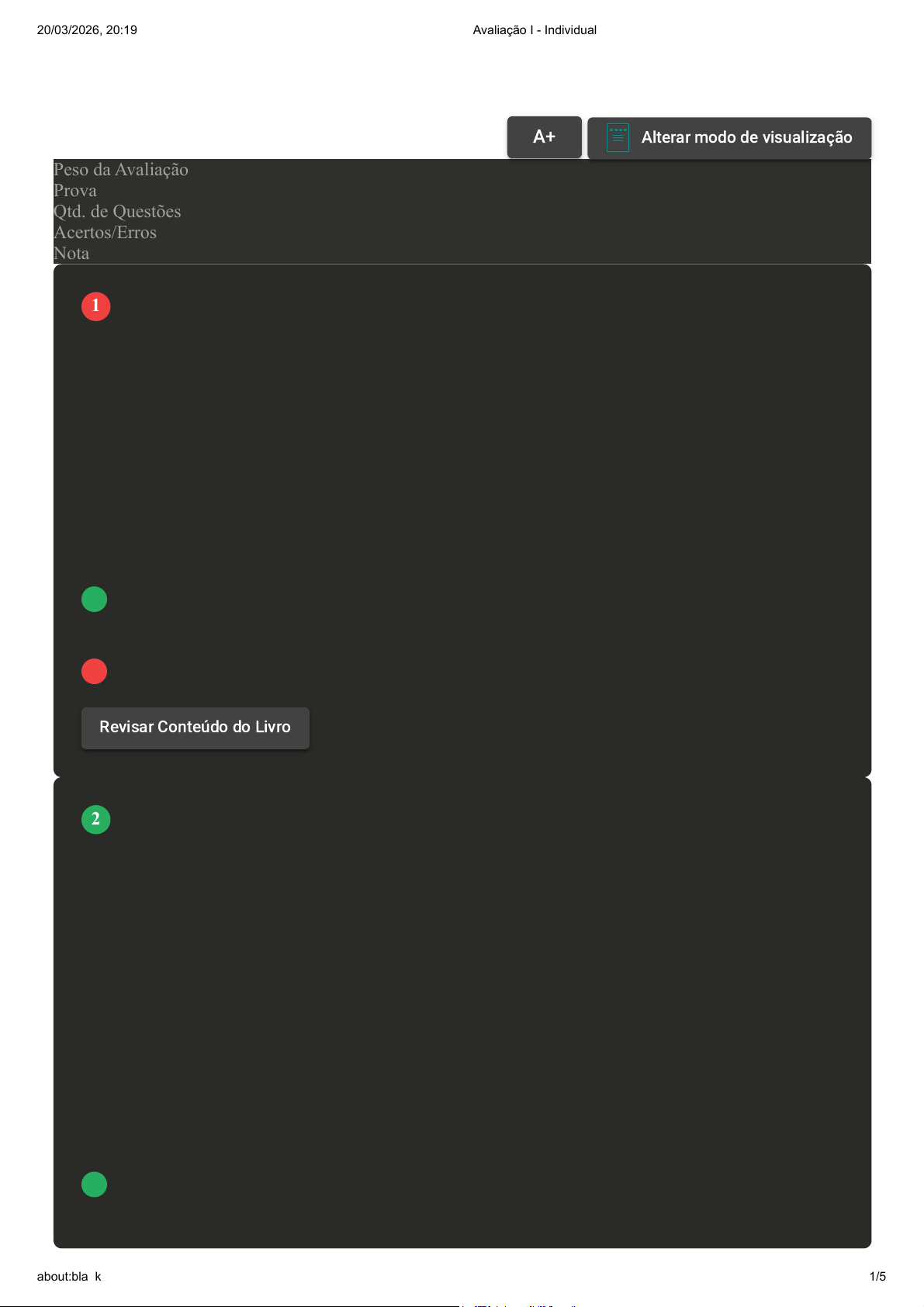 Prova Impressa GABARITO | Avaliação I - Individual (Cod.:1027216) Peso da Avaliação 2,00 Prova 93979471 Qtd. de Questões 10 Acertos/Erros 8/2 Nota 8,00 No que concerne ao handebol, temos várias questões associadas. Qual o primeiro nome dado a essa modalidade, segundo historiadores? A Epyskiros. B Haspartan. C Kemari. D Urânia. No que concerne ao handebol, temos várias questões associadas. Em que ano foi criada essa modalidade? A 1935. B 1930. C 1955. D 1919. VOLTAR A+Aumentar, FonteAlterar modo de visualização 1 Revisar Conteúdo do Livro 2 20/03/2026, 20:19 Avaliação I - Individual about:blank 1/5 No que concerne ao Handebol, temos várias questões associadas. Quais são os fundamentos básicos do handebol? A Deslocamentos com ou sem bola, controle de salto e controle do corpo. B Deslocamentos com ou sem bola, manejo de bola e controle do corpo. C Recepção, salto e controle do corpo. D Deslocamentos com ou sem bola, manejo de bola e arremesso. No que concerne ao handebol, temos várias questões associadas. Qual o número oficial de jogadores por equipe nessa modalidade? A 5. B 8. C 11. D 7. Podemos considerar que o handebol é uma das modalidades mais praticadas no Brasil, além de ser um dos mais praticados no contexto escolar. A que isso se deve? A Ao fato de existirem diversas formas de jogar que se alteram, dependendo do público e do interesse público que se tem com a sua prática. 3 4 5 20/03/2026, 20:19 Avaliação I - Individual about:blank 2/5 B Ao fato de existirem formas de jogar o handebol que se alteram, não dependendo do público e do interesse que se tem com a sua prática. C Ao fato de existirem diversas formas de jogar o handebol que se alteram, dependendo do público e do interesse que se tem com a sua prática. D Ao fato de existirem diversas formas de jogar o handebol que se alteram, dependendo do público e não do interesse que se tem com a sua prática. No que concerne ao handebol, temos várias questões associadas. Qual é um dos sistemas de jogos defensivos mais utilizados nessa modalidade? A 5 x 3. B 6 x 1. C 6 x 0. D 4 x 4. Os goleiros são jogadores imprescindíveis na realização de um jogo de handebol e possuem vários papéis. Sobre o goleiro no handebol, assinale a alternativa INCORRETA: A Durante a partida de handebol, o goleiro é o único jogador que pode tocar a bola com os pés fora da área de gol. B A posição básica que o goleiro adota depende da localização do jogador atacante que estiver com a posse de bola. Revisar Conteúdo do Livro 6 7 20/03/2026, 20:19 Avaliação I - Individual about:blank 3/5 C As defesas realizadas pelo goleiro podem ser caracterizadas a partir da trajetória da bola em direção ao gol quanto a sua altura em: altas, intermediárias, meia altura ou média e baixa. D O goleiro é o único jogador que pode atuar dentro e fora da área de gol. O processo de institucionalização do handebol se inicia em 1931, com a fundação da primeira federação de handebol. Como ela é denominada? A Associação Alemã de Handball. B Associação Carioca de Handball. C Associação Brasileira de Handball. D Associação Paulista de Handball. No que concerne ao handebol, temos várias questões associadas. Quais são as fases desenvolvidas durante a defesa? A Retorno, defesa fixa, roubo de bola e contra-ataque. B Retorno, defesa temporária, organização da defesa e defesa em sistemas. C Retorno, defesa temporária, organização de contra-ataque e finalização. D Retorno, defesa fixa, organização da defesa e defesa em sistemas. 8 9 20/03/2026, 20:19 Avaliação I - Individual about:blank 4/5 O handebol se tornou um esporte com reconhecimento mundial através de competições importantes, como os Jogos Olímpicos e Campeonato Mundial. No Campeonato Mundial de Campo e o primeiro de Handebol indoor, foram disputados apenas o naipe masculino. Em que ano foi a primeira edição do Campeonato Mundial com a equipe masculina? A Em 1957, sendo 22 edições até 2015. B Em 1982, sendo sete edições até 2009. C Em 1938, sendo 25 edições até 2017. D Em 1995, sendo seis edições até 2017. 10 Imprimir 20/03/2026, 20:19 Avaliação I - Individual about:blank 5/5