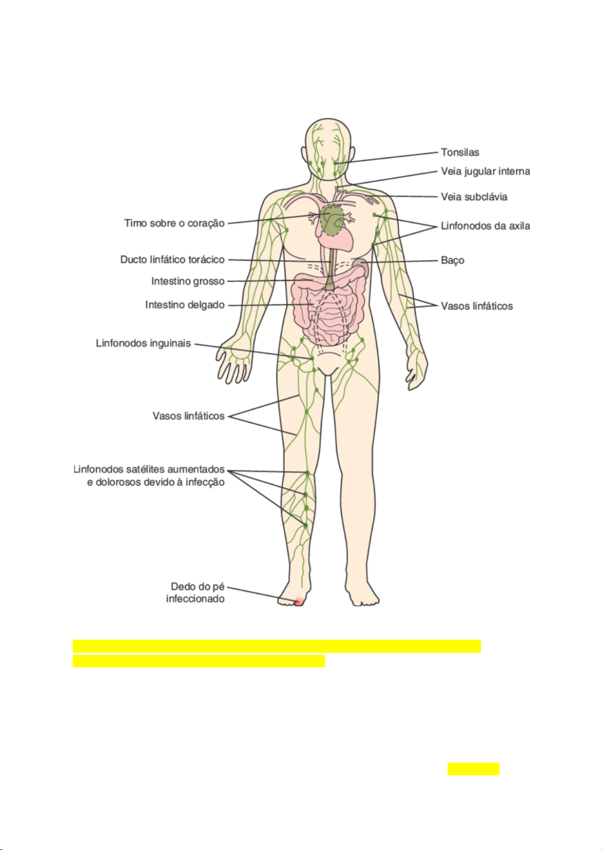APG 8 - SISTEMA LINFÁTICO ★ Anatomia do sistema linfático O sistema linfático consiste em linfa, vasos linfáticos, inúmeras estruturas e órgãos contendo tecido linfático e medula óssea vermelha. O tecido linfático é uma forma especializada de tecido conectivo reticular que contém grande número de linfócitos. A maioria dos componentes do plasma sanguíneo é filtrada pelas paredes dos vasos capilares sanguíneos para formar o líquido intersticial, o fluido que envolve as células dos tecidos corporais. Após passar para os vasos linfáticos, o líquido intersticial é chamado de linfa. Ambos os líquidos são quimicamente similares ao plasma sanguíneo. A principal diferença é que o líquido intersticial e a linfa contêm menos proteínas do que o plasma sanguíneo, porque a maioria das moléculas proteicas do plasma é demasiadamente grande para ser filtrada pelas paredes do vaso capilar. Esse líquido deve retornar ao sistema circulatório, para manter o volume sanguíneo (diariamente, aproximadamente 20 litros de líquido são filtrados do sangue para os espaços teciduais). O sistema linfático tem três funções primárias: 1. Drenagem do excesso de líquido intersticial: os vasos linfáticos drenam o excesso de líquido intersticial e as proteínas provenientes dos espaços teciduais, retornando-os ao sangue. Essa atividade ajuda a manter o balanço hídrico corporal e impede a depleção das proteínas plasmáticas vitais. 2. Transporte de lipídeos alimentares: os vasos linfáticos transportam os lipídeos e as vitaminas lipossolúveis (A, D, E e K) absorvidas pelo trato gastrintestinal até o sangue. 3. Execução das respostas imunes: o tecido linfático inicia respostas extremamente específicas direcionadas contra micróbios específicos ou células anormais. ● Vasos linfáticos e circulação da linfa Os vasos linfáticos começam como capilares linfáticos. Esses minúsculos vasos apresentam uma extremidade fechada e se localizam nos espaços intercelulares. Os capilares linfáticos são ligeiramente maiores que os vasos capilares sanguíneos e apresentam uma estrutura única que permite o fluxo do líquido intersticial para dentro, mas não para fora. ÓRGÃO: HISTOLOGIA E ORGANIZAÇÃO ★ Timo O timo é um órgão situado no mediastino, na altura dos grandes vasos do coração. É formado por dois lobos envolvidos por uma delicada cápsula de tecido conjuntivo denso. A cápsula origina delgados septos que penetram no parênquima delimitando lóbulos. Enquanto os outros órgãos linfoides são de origem exclusivamente mesodérmica, o timo tem origem embriológica dupla: mesodérmica e endodérmica. Ao contrário dos outros órgãos linfoides, o timo não tem folículos linfoides. Em cada lóbulo há uma zona cortical, periférica, corada intensamente pela hematoxilina por ter maior número de linfócitos com escasso citoplasma e uma região central mais clara denominada zona medular. Na zona medular, encontram-se estruturas características do timo, os corpúsculos de Hassall. As células mais abundantes no timo são os linfócitos T em diversos estágios de diferenciação e maturação. Além dos linfócitos T, o timo contém células reticulares epiteliais (CRE), CDs, macrófagos e fibroblastos. ● Células reticulares epiteliais As CRE têm origem endodérmica. São células de núcleos grandes de cromatina delicada que têm numerosos prolongamentos citoplasmáticos que se ligam aos das células adjacentes por desmossomos, formando uma malha tridimensional cujos espaços são ocupados principalmente por linfócitos T. Os prolongamentos são muito delgados e não podem ser observados por microscopia óptica em preparados rotineiros. Ao microscópio eletrônico de transmissão, podem ser observados grânulos semelhantes a grânulos de secreção e feixes de filamentos intermediários constituídos de citoqueratinas, o que evidencia a origem epitelial dessas células ● Corpúsculo de Hassall Os corpúsculos de Hassall são formados por CRE organizadas em camadas concêntricas unidas por numerosos desmossomos. Algumas dessas células, as mais centrais, podem degenerar e morrer, deixando restos celulares que podem calcificar. Os corpúsculos de Hassall são encontrados exclusivamente na região medular do timo e sua observação em cortes histológicos auxilia o diagnóstico diferencial entre órgãos linfoides. ● Vascularização e barreira hematotímica As artérias penetram no timo pela cápsula, ramificam-se em arteríolas que acompanham os septos conjuntivos penetrando no parênquima e seguem pela região limítrofe entre a cortical e a medular. Dessas arteríolas, originam-se capilares que tornam a entrar na zona cortical, na qual se ramificam e se anastomosam, formando arcos, e dirigem-se de volta para a zona medular, na qual desembocam em vênulas. A vascularização da região cortical do timo é particular. Os capilares que irrigam a zona cortical têm endotélio sem poros e lâmina basal muito espessa. CRE envolvem externamente os capilares, contribuindo para a formação da barreira hematotímica, cujos outros componentes são os seguintes: os pericitos dos capilares, a lâmina basal do endotélio, a lâmina basal das células reticulares e as células endoteliais não fenestradas da parede capilar. Essa barreira hematotímica só existe na zona cortical na qual estão se diferenciando os linfócitos T, e impede a entrada, nessa zona, de antígenos existentes no sangue. A irrigação da zona medular é por capilares convencionais que se originam diretamente das arteríolas que estão no limite corticomedular. Não há barreira hematotímica na zona medular. As vênulas da medular confluem para formar veias que penetram nos septos conjuntivos e saem do timo pela cápsula do órgão. O timo não contém vasos linfáticos aferentes e não constitui um filtro para a linfa, como ocorre nos linfonodos. Os poucos vasos linfáticos no timo sã