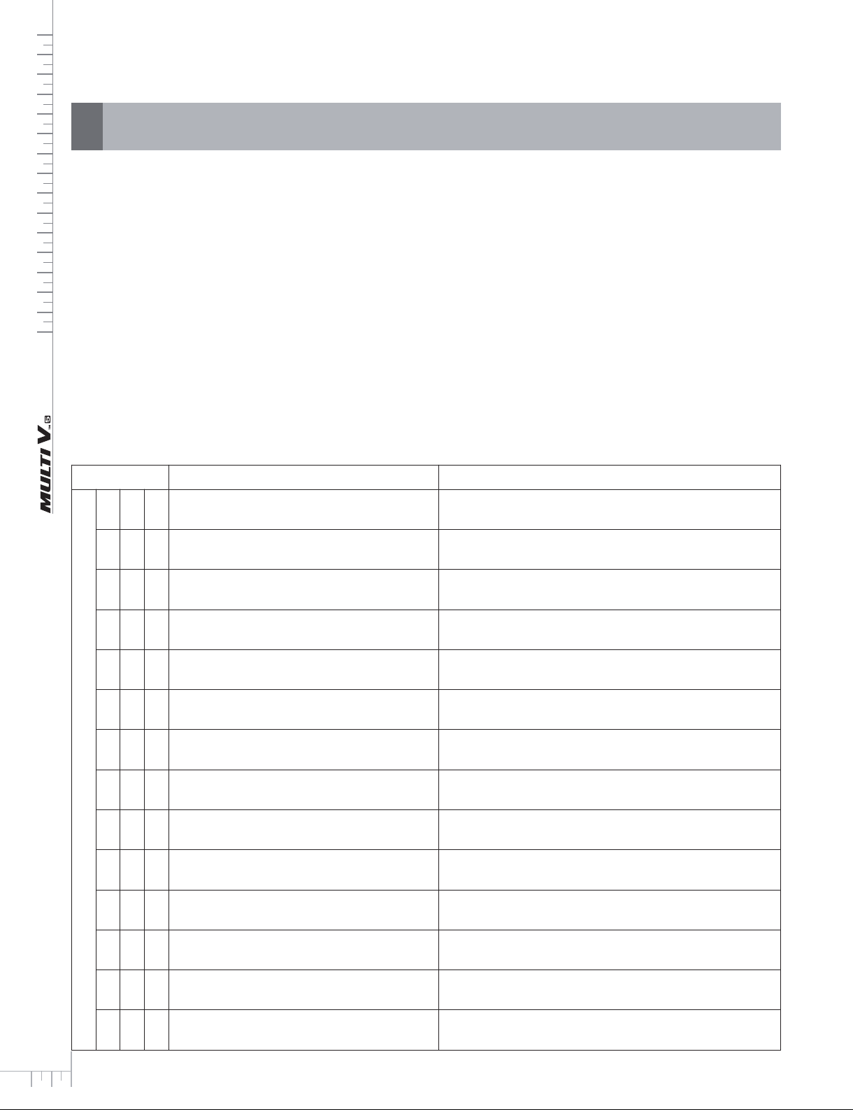 1 Error Numbers - This document describes how to conduct a self-diagnosis on the product and lists possible failure types. - In the LGMV error number field, a failure will be indicated by a code listed in the following table. - If two or more failures occur at the same time, they are listed by order of their error numbers. - If an error occurred and was then fixed, the error code will not be displayed. Error Indication - The error number on the LGMV screen is displayed along with the error number shown on the outdoor unit and the unit number. - Indoor unit errors are displayed on the screen of the unit. Outdoor unit and general operation errors are displayed at the top right of the LGMV screen. - When an error occurs, you can move your mouse over the error number and click it to view troubleshooting methods. - You will be provided with the meaning of the errors, and possible causes, as well as troubleshooting methods for resolving those errors. Follow the troubleshooting guide to fix the errors. Self-diagnosis function Display Title Cause of Error In d o o r u n it r el at ed e rr o r 0 1 - Air temperature sensor of indoor unit Air temperature sensor of indoor unit is open or short 0 2 - Inlet pipe temperature sensor of indoor unit Inlet pipe temperature sensor of indoor unit is open or short 0 3 - Communication error : wired remote con- troller indoor unit Failing to receive wired remote controller signal in indoor unit PCB 0 4 - Drain pump Malfunction of drain pump 0 5 - Communication error : outdoor unit indoor unit Failing to receive outdoor unit signal in indoor unit PCB 0 6 - Outlet pipe temperature sensor of indoor unit Outlet pipe temperature sensor of indoor unit is open or short 0 8 - Hydro Kit Hot water storage tank Temperature sensor Pipe temperature sensor is open or short 0 9 - Indoor EEPROM Error In case when the serial number marked on EEP- ROM of Indoor unit is 0 or FFFFFF 1 0 - Poor fan motor operation Disconnecting the fan motor connector / Failure of indoor fan motor lock 1 1 - Communication error : System boiler Indoor unit � Inv.PCB Failing to receive Inv. PCB signal in indoor unit 1 2 - Hydro Kit Inv.PCB error Hydro Kit Inv.PCB error 1 3 - Hydro Kit Solar heat piping tempera- ture sensor error Pipe temperature sensor is open or short 1 4 - Hydro Kit Indoor unit Flow switch error Flow switch flow detection error 1 5 - Hydro Kit Liquid pipe Strange overheat Error Temperature sensor defective or hot water inflow 2 Display Title Cause of Error 1 6 - Hydro KitIndoor unit Inlet and Outlet pipe Temperature sensor Error Pipe temperature sensor is open or short 1 7 - Hydro Kit Indoor unit Inlet pipe Temperature sensor Error Outside air Introduction duct Inlet pipe Temperature sensor Error Pipe temperature sensor is open or short 1 8 - Hydro Kit Indoor unit Outlet pipe Temperature sensor Error Pipe temperature sensor is open or short O u td o o r u n it r el at ed e rr o r 2 1 1 2 3 4 2 2 1 2 3 4 2 3 1 2 3 4 2 4 1 2 3 4 2 5 1 In do or u ni t r el at ed e rro r Master Outdoor Unit Inverter Compressor IPM Fault Slave1 Outdoor Unit Inverter Compressor IPM Fault Slave2 Outdoor Unit Inverter Compressor IPM Fault Slave3 Outdoor Unit Inverter Compressor IPM Fault Master Inverter Board Input Over Current(RMS) of Master Outdoor Unit Slave1 Inverter Board Input Over Current(RMS) of Master Outdoor Unit Slave2 Inverter Board Input Over Current(RMS) of Master Outdoor Unit Slave3 Inverter Board Input Over Current(RMS) of Master Outdoor Unit Master Outdoor Unit Inverter Compressor DC link Low Voltage Slave1 Outdoor Unit Inverter Compressor DC link Low Voltage Slave2 Outdoor Unit Inverter Compressor DC link Low Voltage Slave3 Outdoor Unit Inverter Compressor DC link Low Voltage Master Outdoor Unit High Pressure Switch Slave1 Outdoor Unit High Pressure Switch Slave2 Outdoor Unit High Pressure Switch Slave3 Outdoor Unit High Pressure Switch Master Outdoor Unit Input Voltage High/ Low Voltage Master Outdoor Unit Inverter Compressor Drive IPM Fault Slave1 Outdoor Unit Inverter Compressor Drive IPM Fault Slave2 Outdoor Unit Inverter Compressor Drive IPM Fault Slave3 Outdoor Unit Inverter Compressor Drive IPM Fault Master Outdoor Unit Inverter Board Input Current excess (RMS) Slave1 Outdoor Unit Inverter Board Input Current excess (RMS) Slave2 Outdoor Unit Inverter Board Input Current excess (RMS) Slave3 Outdoor Unit Inverter Board Input Current excess (RMS) DC charging is not performed at Master Outdoor Unit after starting relay turn on. DC charging is not performed at Slave1 Outdoor Unit after starting relay turn on. DC charging is not performed at Slave2 Outdoor Unit after starting relay turn on. DC charging is not performed at Slave3 Outdoor Unit after starting relay turn on. System is turned off by Master Outdoor Unit high pressure switch. System is turned off by Slave1 Outdoor Unit high pressure switch. System is turned off by Slave2 Outdoor Unit high pressure switch. System is turned off by Slave3 Outdoor Unit high pressure switch. Master Outdoor Unit input voltage is over 487V or below 270V (ARUM***LTE5) Master Outdoor Unit input voltage is over 289V or below 173V (ARUM***BTE5) Master Outdoor Unit input voltage is over 506V or below 414V (ARUM***DTE5) 3 Display Title Cause of Error O u td o o r u n it r el at ed e rr o r 2 5 2 3 4 2 6 1 2 3 4 2 9 1 2 3 4 3 2 1 2 3 4 3 3 1 2 3 4 Slave1 Outdoor Unit Input Voltage High/ Low Voltage Slave2 Outdoor Unit Input Voltage High/ Low Voltage Slave3 Outdoor Unit Input Voltage High/ Low Voltage Master Outdoor Unit Inverter Compressor Start Failure Slave1 Outdoor Unit Inverter Compressor Start Failure Slave2 Outdoor Unit Inverter Compressor Start Failure Slave3 Outdoor Unit Inverter Compressor Start Failure Master Outdoor Unit Inverter Compressor Over Current Slave1 Outdoor Unit Inverter Compressor Over Current Slave2 Outdoor Unit Inverter Compressor Over Current Slave3 Outdoor Unit Inverter Compressor Over Current Master Outdoor Unit Inverter Compres
