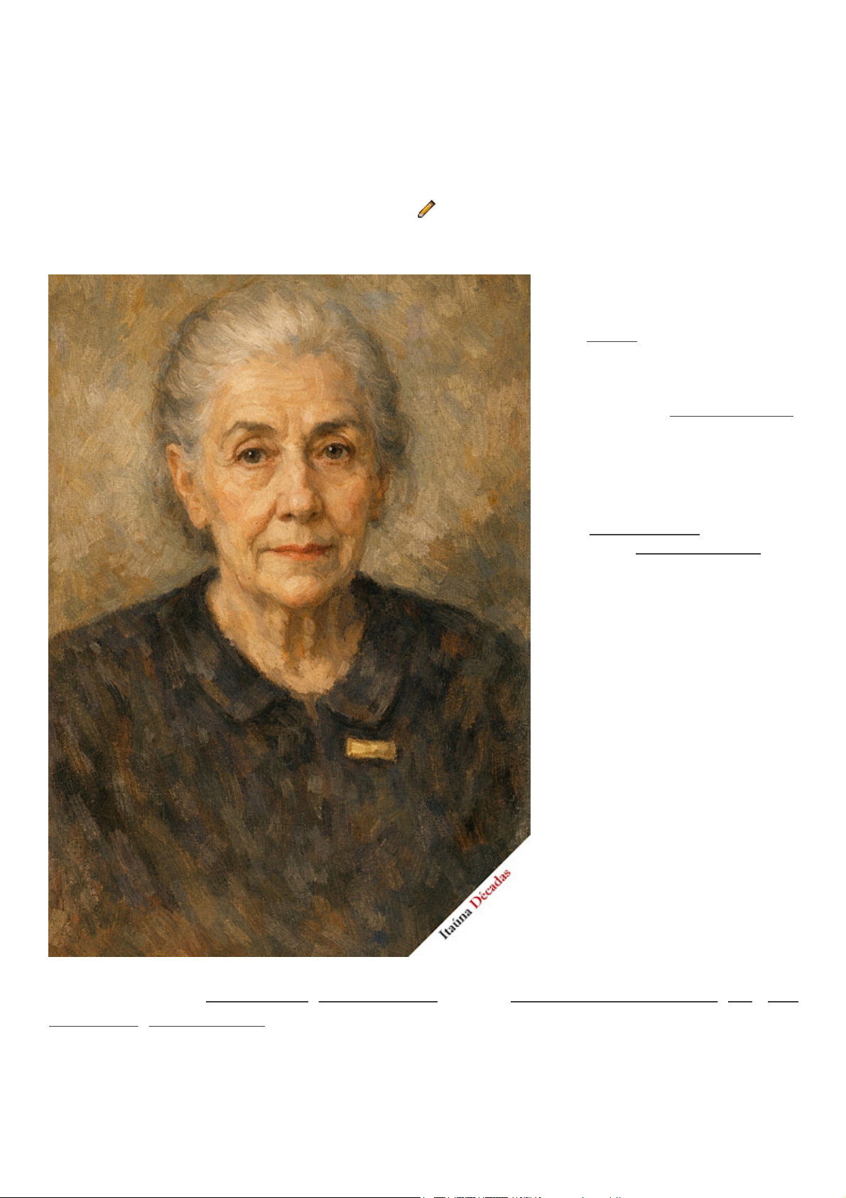 DAMA DONA LADOMILA MARÇO 31, 2026 ITAÚNA MULHER Dama Dona Ladomila: Fé, Caridade e Memória em Itaúna Este texto apresenta a trajetória de Dona Ladomila, personagem marcante na história social e religiosa de Itaúna, a partir de uma narrativa originalmente escrita por Stella Máximo e publicada no jornal Folha do Oeste, em 22 de abril de 1956. Mais do que uma homenagem, o registro permite compreender como práticas de caridade, religiosidade e protagonismo feminino se articulavam no cotidiano da cidade, convidando o leitor a refletir sobre o papel dessas figuras na construção da memória e das relações sociais de seu tempo. DONA LADOMILA Corria o ano de 1872, quando nasceu em Santana de São João do Rio Acima, Ladomila Nogueira de Castro, filha de Zacarias Ribeiro de Camargos e Ana Carolina Nogueira de Castro. Cresceu e desfrutou a vida de família rica e opulenta da época. Aos 26 anos de idade, casou-se com Joaquim Gonçalves de Faria Sobrinho, nascendo sua filha Godvy, em 27 de novembro de 1898, e Odilon, em 11 de agosto de 1900. 05/04/2026, 11:52 DAMA DONA LADOMILA ~ ITAÚNA DÉCADAS https://itaunaemdecadas.blogspot.com/2026/03/dama-dona-ladomila.html 1/4 https://itaunaemdecadas.blogspot.com/2026/03/dama-dona-ladomila.html https://itaunaemdecadas.blogspot.com/2026/03/dama-dona-ladomila.html https://itaunaemdecadas.blogspot.com/search/label/Mulher https://www.blogger.com/post-edit.g?blogID=2328591432647899814&postID=9034495699795478289&from=pencil https://www.blogger.com/post-edit.g?blogID=2328591432647899814&postID=9034495699795478289&from=pencil https://blogger.googleusercontent.com/img/b/R29vZ2xl/AVvXsEjhVKI2_bMtR0kO0tJfAxO-KGSmkeB2VS2-fDwsVnNmZDYnR5Ci_Hw6ZJn3L0s75AjzLkrx3dRB_sawO6mgF2beMoTnOEzDratUgbxwaxNdAyctyyNNTgBLGK6sYBT5M7mtjYw7B6lMWTG7oVZCVXEammprWB3vftUj2ZGrGDdshnIrfLcfjHvM1W1IEGM/s1500/ladomila%203.jpg https://www.google.com/search?ved=1t:260882&q=Ita%C3%BAna+MG&bbid=2328591432647899814&bpid=9034495699795478289 https://www.google.com/search?ved=1t:260882&q=Dona+Ladomila+Ita%C3%BAna+biography&bbid=2328591432647899814&bpid=9034495699795478289 https://www.google.com/search?ved=1t:260882&q=Folha+do+Oeste+Ita%C3%BAna+1956&bbid=2328591432647899814&bpid=9034495699795478289 https://www.asbrap.org.br/revista/artigos/rev20_art16.pdf https://www.asbrap.org.br/revista/artigos/rev20_art16.pdf https://www.asbrap.org.br/revista/artigos/rev20_art16.pdf https://www.asbrap.org.br/revista/artigos/rev20_art16.pdf https://www.asbrap.org.br/revista/artigos/rev20_art16.pdf Começou seu calvário em 1902 quando morreu-lhe o esposo. Viu-se a braços com inúmeras dificuldades, devido à doença do marido e, depois, com a manutenção e educação dos filhos. Lutou sem esmorecer, venceu todas as dificuldades que o destino colocou à sua frente, passou pelas amarguras de viúva pobre que, assustada, pensa no dia de amanhã e no pão de cada dia para seus queridos filhos. Foi por isso, talvez a maior benfeitora dos pobres de nossa terra. Quando dizemos benfeitora, não referimos ao dinheiro, que se pode dar ao pobre, falamos sim de benefícios que ninguém tem coragem de fazer. Lavar a ferida de um infeliz, de um desgraçado era para Ladomila coisa banal sem nenhuma importância; era fato corriqueiro, não merecia ser citado. Era católica fervorosa, estava enterrado o Apostolado da Oração da paróquia, quando ela e d. Umbelina Victoi de Melo, mais conhecida por d. Nenê de Melo, levantaram essa irmandade. Foi zeladora da igreja matriz, trabalhou muito para a construção da atual. Durante 40 anos foi a representante da Terra Santa em Itaúna. Já no leito, em extrema debilidade que a moléstia lhe causava, zelava sem descanso as suas obrigações, sacrificando-se às vezes. Foi a fundadora do lactário, trabalhou para a construção do prédio velho, que foi depois vendido. Fundou a irmandade das Damas de Caridade e por mais de 20 anos foi sua presidente. Nesta associação foi relevante e seu serviço para os pobres desta terra. Conseguiu auxílio do governo federal, comprou a casa para as Damas, na rua Antônio de Matos. Era Ladomila um espírito forte, alegre. Na mocidade foi a alma de toda festa e reunião; tocava violão, sanfona, viola, cantava modinha, era perita na arte de fazer versos, era dama de companhia das mocinhas para os bailes e festas, era enfim, o que se pode chamar de pau de toda obra. Estava pronta para toda festa, como também para acudir um doente ou alguém que sofria. Foi vítima de incompreensão. Foi apedrejada por mãos que muito lhe deviam. Disse-nos ela certa vez: “Fulana me maltratou, porquê?” Respondemos: “Talvez inveja.” Sorrindo, retrucou: “de uma pobretana como eu?” Respondemos agora: “Sim, inveja de sua bondade. Inveja do seu desprendimento, de seu altruísmo. Inveja por se julgarem incapazes de fazer aquilo que essa senhora fazia!” Ao vermos Ladomila no leito de agonia, abatida, alquebrada, contando os minutos finais, lembramo-nos de seu espírito irônico e sarcástico às vezes. Recordamo-nos de uma passagem muito interessante: — Uma sua amiga comprou determinada mercadoria e negou-se a pagar à vendedora. Passado algum tempo a credora pediu àquela senhora uma Santa Visitadora para ir à sua casa. Terminada a novena, negou-se a entregar a santa. Ladomila, como zeladora das imagens, reclamou a demora da santa em regressar, vindo a saber que a mesma se encontrava presa por dívida. Procurou a credora, pagou os Cr$ 8,00, e trouxe a santa. Dias depois, briga ela na igreja, em frente ao altar do Santíssimo com a ex-devedora. Discussão vai, discussão vem, a outra sem 05/04/2026, 11:52 DAMA DONA LADOMILA ~ ITAÚNA DÉCADAS https://itaunaemdecadas.blogspot.com/2026/03/dama-dona-ladomila.html 2/4 https://www.google.com/search?ved=1t:260882&q=define+Apostolado+da+Ora%C3%A7%C3%A3o&bbid=2328591432647899814&bpid=9034495699795478289 https://www.google.com/search?ved=1t:260882&q=Terra+Santa+Ita%C3%BAna+representative&bbid=232859143264789981