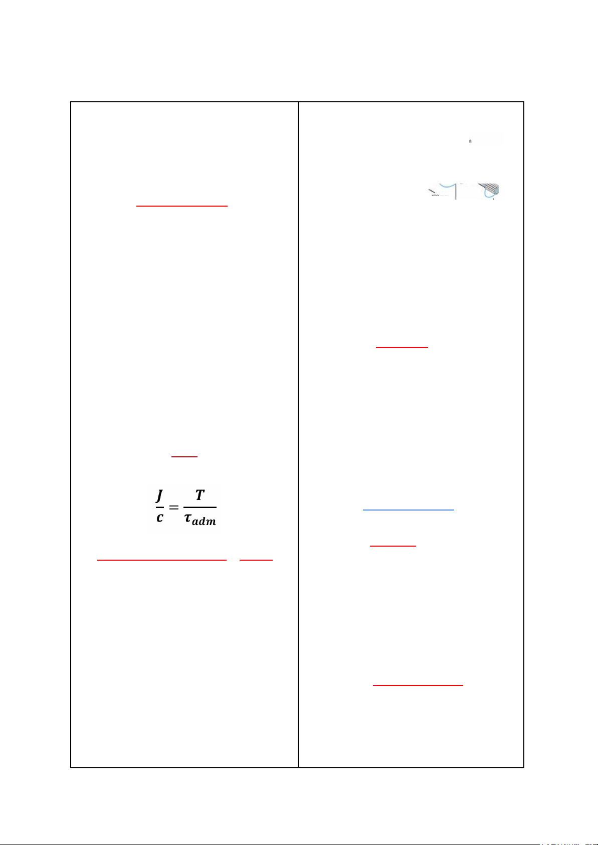 2º Revisão Resistências dos Materiais Aplicadas - Ângulo de Torção É a medida da rotação que ocorre em um material ou eixo quando é submetido a forças de torção. Ele é uma forma de avaliar a deformação e a resistência do material. o Ângulo de Torção é calculado por: Torque x Comprimento Módulo de Cisalhamento x Momento Polar de Inércia Onde o Resultado é dado em Radianos e por isso, é preciso Convertê-lo para Graus por uma relação de Regra de Três em que. 1 π Rad = 180° - Transmissão de Potência Potência é definida como o trabalho realizado por unidade de tempo. Para um eixo rotativo com torque, a potência é: Torque x Velocidade Angular Onde velocidade angular também pode ser descrita como: 2 x π x Frequência Então uma Equação Para Potência também pode ser: Torque x 2 x π x Frequência Transformação de rpm para Radiano por Segundo: 1 rpm = 2 x π 60 - Parâmetros de Projetos para o Eixo Momento Polar de Inércia = Torque Raio Tensão Cisalhamento Máxima Ex1: As extremidades estriadas e engrenagens acopladas ao eixo de aço A-36 estão sujeitas aos torques mostrados. Qual o ângulo de torção da engrenagem C em relação à engrenagem D. O eixo tem diâmetro de 40 mm e G = 75 GPa. - Definir o Torque entre C e D. Utilizando da noção das convenções das rotações fazendo o somatório dos torques representados. Temos um Torque de 400 no sentido anti horário e um torque de 200 no sentido horário, então o torque em CD vai ser. 400 - 200 - TCD = 0 TCD = 200 N.m - Momento Polar de Inércia O eixo representado possui um diâmetro de 40 mm, para o momento polar de inércia precisamos do raio, basta dividir por 2, que é igual a 20 mm. Que iremos transformar em metros, dividindo por 1000, igual à medida de 0,02 m. Pi vezes Raio elevado a 4 dividido por dois. π x 0,02^4 2 momento polar de inércia = 2,513 x 10^-7 - Ângulo de Torção. Como a questão pede o ângulo de torção C somente em relação a engrenagem D, vamos levar em conta somente essa distância, que é sinalizada na imagem como tendo 400 mm, que dividido por mil é 0,4 metros. o Módulo de Cisalhamento em giga fica = 10^9 o Ângulo de Torção é calculado por: Torque x Comprimento Módulo de Cisalhamento x Momento Polar de Inércia Então: 200 x 0,4 75 x 10^9 x 2,513 x 10^-7 Ângulo de Torção = 4,24 x 10^-3 rad. - De Radianos para Graus Resultado é dado em Radianos e por isso, é preciso convertê-lo para Graus por uma relação de Regra de Três em que. 1 π Rad = 180° Então: 1 π Rad = 180° 4,24 x 10^-3 = x x = 180 x 4,24 x 10^-3 π Ângulo em Graus = 0,243º Ex2: O eixo de aço A-36 (G = 75 GPa) de 20 mm de diâmetro é submetido aos torques mostrados. Determine o ângulo de torção da extremidade B. - Definir Torques. Como esse é caso que não separa a seção específica só fala da torção num ponto de extremidade, então toda a barra precisa ser levada em consideração, então vamos definir os Torques em toda ela. . Em BC. TBC - 80 = 0 TBC = 80 N.m . Em CD. TCD - 80 + 20 = 0 TCD = 60 N.m . Em DA. TDA - 80 + 20 - 30 = 0 TDA = 90 N.m - Momento Polar de Inércia O eixo representado possui um diâmetro de 20 mm, para o momento polar de inércia precisamos do raio, basta dividir por 2, que é igual a 10 mm. Que iremos transformar em metros, dividindo por 1000, igual à medida de 0,01 m. Pi vezes Raio elevado a 4 dividido por dois. π x 0,01^4 2 momento polar de inércia = 1,57 x 10^-8 - Ângulo de Torção. Essa questão pede o ângulo de torção na extremidade, vamos levar em conta toda a barra, com as distâncias. BC = 800 mm; CD = 600 mm; DA = 200 mm. Onde os comprimentos vão ser em metros. o Módulo de Cisalhamento em giga fica = 10^9 o Ângulo de Torção é calculado por: Somatório de Torques x Comprimentos Módulo de Cisalhamento x Momento Polar de Inércia TBC x LBC + TCD x LCD + TDA x LDA Módulo de Cisalhamento x Momento Polar de Inércia 80 x 0,8 + 60 x 0,6 + 90 x 0,2 75 x 10^9 x 1,57 x 10^-8 Ângulo em Radiano = 0,1002 - De Radianos para Graus Resultado é dado em Radianos e por isso, é preciso convertê-lo para Graus por uma relação de Regra de Três em que. 1 π Rad = 180° Então: 1 π Rad = 180° 0,1002 = x x = 180 x 0,1002 π Ângulo em Graus = 5,74° Ex3: Um eixo maciço de aço AB será usado para transmitir 3750 W do motor M ao qual está acoplado.Se o eixo girar a 175 rpm e o aço tiver uma tensão de cisalhamento admissível τadm = 100 MPa, determine o diâmetro exigido para o eixo com precisão de mm. - Transformar RPS para Radianos por Segundo. Se a questão nos apresentar um caso em que nos der uma medida em rps, é preciso transformar na unidade de Velocidade Angular, ( Rad/s) 1 rpm = 2 x π rad/s 60 Então 175 rpm; 1 rpm = 2 x π rad/s 60 175 = x x = 2 x π x 175 60 Velocidade Angular = 18,32 Rad/S - Achar Torque pela Potência. Nesse Problema nos foi dado a Potência do Motor = 3750 W. Para um eixo rotativo com torque, a potência é: Torque x Velocidade Angular Então: 3750 = Torque x 18,32 Torque = 3750 18,32 Torque = 204,70 - Definir o Raio Em Função da Tensão Máxima Admissível. Como a questão pede pelo Raio, a gente pode encontrar ele a partir da Fórmula de Tensão Máxima, se modificarmos a fórmula para isolar o raio,ficaria: Raio = (raiz cúbica) de 2 x Torque π x Tensão Raíz Cúbica de 2 x 204,70 π x 100 x 10^6 Raíz Cúbica de 1,303 x 10^-6 Raio = 0,011 m - Diâmetro em precisão em mm. A questão deixa claro que deseja o diâmetro, que graças a ter o raio basta multiplicar ele por 2 para encontrar. 0,011 x 2 = 0,022 m. Que para passarmos para mm basta multiplicarmos por 1000. 0,022 x 1000 = 22 mm. Ex4: Um eixo tubular com diâmetro interno de 30 mm e diâmetro externo de 42mm será usado para transmitir 90 kW de potência. Determine a frequência de rotação do eixo de modo que a tensão de cisalhamento não ultrapasse 50MPa. - Momento Polar de Inércia. O exemplo em questão indica que o tubo possui medid