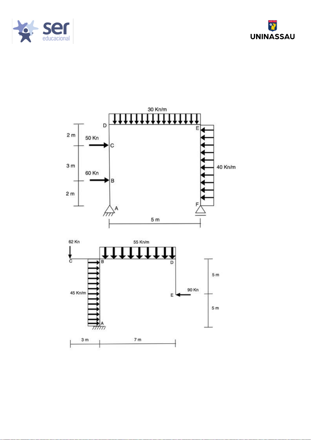 CENTRO UNIVERSITÁRIO MAURICIO DE NASSAU CURSO DE GRADUAÇÃO EM ENGENHARIA CIVIL DISCIPLINA TEORIA DAS ESTRUTURAS LISTA DE EXERCÍCIOS 1) Determinar os gráficos de esforços normais, cortantes e momentos fletor para as estruturas abaixo: a. b. CENTRO UNIVERSITÁRIO MAURICIO DE NASSAU CURSO DE GRADUAÇÃO EM ENGENHARIA CIVIL DISCIPLINA TEORIA DAS ESTRUTURAS LISTA DE EXERCÍCIOS c. d.