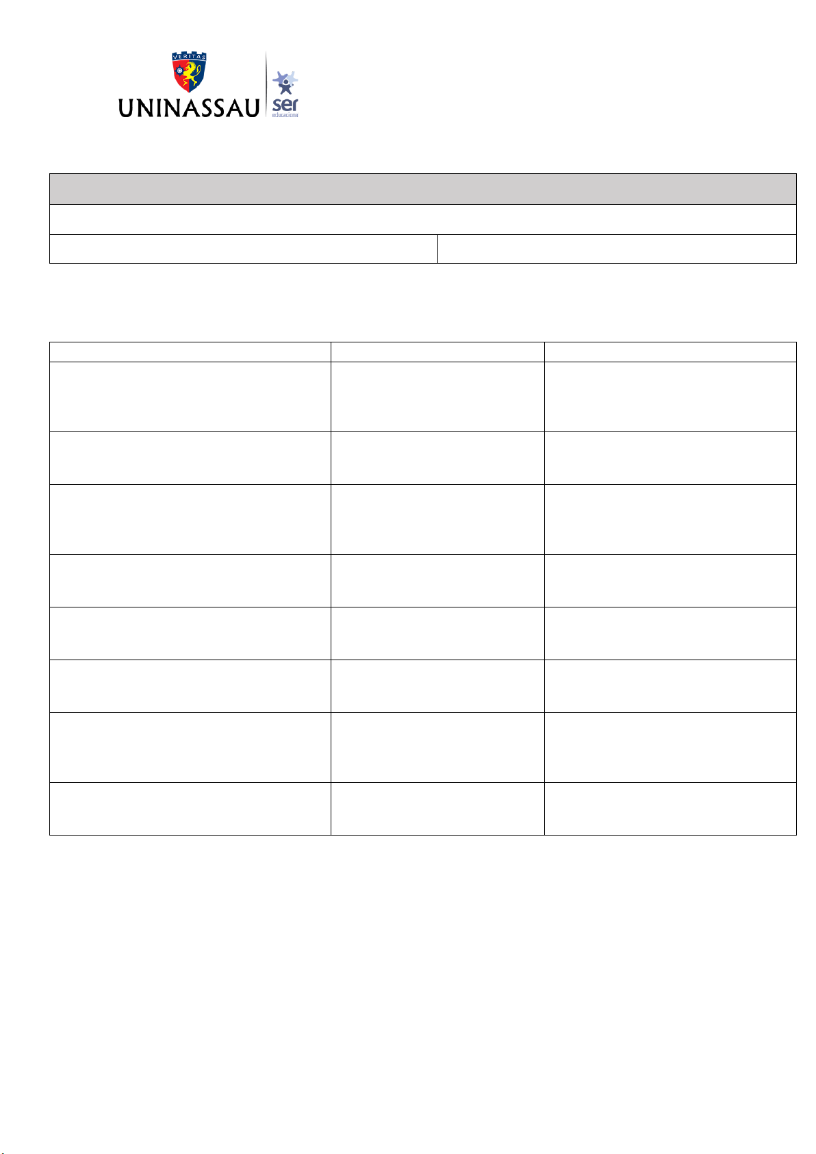 ATIVIDADE PRÁTICA DE COMPREENSÃO DO CICLO CARDÍACO E CIRCULAÇÃO SANGUÍNEA CITOLOGIA, HISTOGIA E EMBRIOLOGIA Prof.a. Dra. Esther Machado IDENTIFICAÇÃO Discente: Matrícula: Curso: 1. Preencha a tabela abaixo com as fases correspondentes do ciclo cardíaco (sístole ou diástole) para cada etapa do processo de circulação sanguínea. Etapa do Processo de Circulação Fase do Ciclo Cardíaco Descrição/Explicação 1. O sangue venoso entra no coração no átrio direito Durante esta fase, o átrio direito está relaxado e permite que o sangue venoso entre proveniente do corpo. 2. O sangue é bombeado para o ventrículo direito O átrio direito se contrai, empurrando o sangue para o ventrículo direito. 3. O sangue é bombeado para a artéria pulmonar O ventrículo direito se contrai, enviando o sangue para a artéria pulmonar para a troca gasosa nos pulmões. 4. Hematose (troca gasosa nos pulmões) _____________________ O sangue realiza a troca de gases nos pulmões, recebendo oxigênio e liberando dióxido de carbono. 5. O sangue retorna ao coração pelas veias pulmonares no átrio esquerdo O sangue oxigenado retorna dos pulmões e entra no átrio esquerdo. 6. O sangue é bombeado para o ventrículo esquerdo O átrio esquerdo se contrai, enviando o sangue para o ventrículo esquerdo. 7. O sangue é bombeado para a artéria aorta O ventrículo esquerdo se contrai e envia o sangue para a artéria aorta, que distribui oxigênio e nutrientes para todo o corpo. 8. Circulação sistêmica ____________________ O sangue oxigenado é distribuído por todo o corpo, alimentando os órgãos e tecidos. RESPONDA: 2 - O que acontece com o coração durante a diástole? Explique o processo de enchimento dos átrios e ventrículos. 3 - Quais as diferenças entre a sístole do ventrículo direito e esquerdo? Explique o que ocorre em cada um. 4 - Quais são as consequências de um bloqueio ou falha na função de qualquer parte do ciclo cardíaco para a circulação sanguínea?