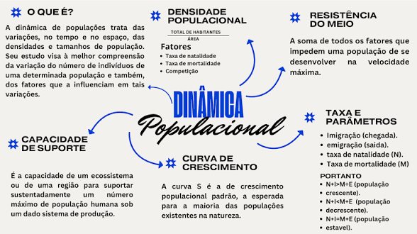 O QUE É? DENSIDADE RESISTÊNCIA POPULACIONAL A dinamica de trata das DO MEIO TOTAL DE HABITANTES variações, no tempo e no espaço, das AREA A soma de todos os fatores que densidades e tamanhos de população. Fatores impedem uma população de se Seu estudo visa à compreensão Taxa de natalidade da variação do de individuos de Taxa de mortalidade desenvolver na velocidade Competição uma determinada população e tambem, maxima. dos fatores que a influenciam em tais variações. TAXA E CAPACIDADE Populacional PARAMETROS Imigração (chegada). DE SUPORTE emigração (saida). CURVA DE taxa de natalidade (N). CRESCIMENTO Taxa de mortalidade (M) E a capacidade de um ecossistema PORTANTO ou de uma para suportar A curva a de crescimento N+I>M+E (população sustentadamente um numero populacional padrão, a esperada crescente). maximo de população humana sob N+I