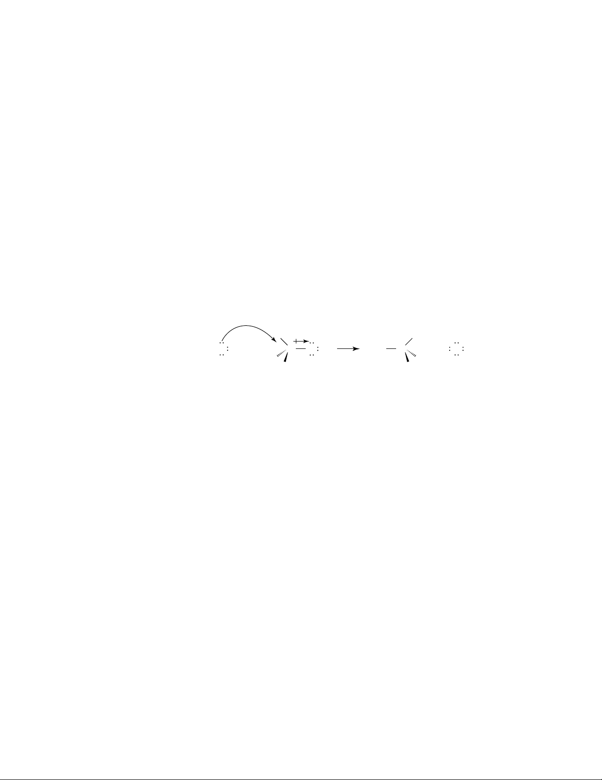 INTRODUCTION xxiii chemistry by considering the relative polarity of molecules and the propensity, or lack thereof, for them to interact with each other. Let us consider one example of reactivity that can be understood at the initial level by considering structure and polarity. When chloromethane (CH3Cl) is exposed to hydroxide ions (HO−) in water a reaction occurs that produces methanol. This reaction is shown below. CH3Cl + HO−(as NaOH dissolved in water) → HOCH3 + Cl− This reaction is called a substitution reaction, and it is of a general type that you will spend considerable time studying in organic chemistry. The reason this reaction occurs readily can be understood by considering the principles of structure and polarity that we have been discussing. The hydroxide ion has a negative charge associated with it, and thus should be attracted to a species that has positive charge. Now recall our discussion of electronegativity and polar covalent bonds, and apply these ideas to the structure of chloromethane. The chlorine atom is significantly more electronegative than carbon (note its position in the periodic table). Thus, the covalent bond between the carbon and the chlorine is polarized such that there is partial negative charge on the chlorine and partial positive charge on the carbon. This provides the positive site that attracts the hydroxide anion! C H H H HO − δ+ C H H H HOδ−+ +Cl Cl − The intimate details of this reaction will be studied in Chapter 6 of your text. Suffice it to say for the moment that the hydroxide ion attacks the carbon atom using one of its nonbonding electron pairs to form a bond with the carbon. At the same time, the chlorine atom is pushed away from the carbon and takes with it the pair of electrons that used to bond it to the carbon. The result is substitution of OH for Cl at the carbon atom and the synthesis of methanol. By calculating formal charges (Section 1.5 in the text) one can show that the oxygen of the hydroxide anion goes from having a formal negative charge in hydroxide to zero formal charge in the methanol molecule. Similarly, the chlorine atom goes from having zero formal charge in chloromethane to a formal negative charge as a chloride ion after the reaction. The fact that the reaction takes place at all rests largely upon the complementary polarity of the interacting species. This is a pervasive theme in organic chemistry. Acid-base reactions are also very important in organic chemistry. Many organic re- actions involve at least one step in the overall process that is fundamentally an acid-base reaction. Both Brønsted-Lowry acid-base reactions (those involving proton donors and ac- ceptors) and Lewis acid-base reactions (those involving electron pair acceptors and donors, respectively) are important. In fact, the reaction above can be classified as a Lewis acid-base reaction in that the hydroxide ion acts as a Lewis base to attack the partially positive carbon as a Lewis acid. It is strongly recommended that you review concepts you have learned previously regarding acid-base reactions. Chapter 3 in Organic Chemistry will help in this regard, but it is advisable that you begin some early review about acids and bases based on your previous studies. Acid–base chemistry is widely applicable to understanding organic reactions.