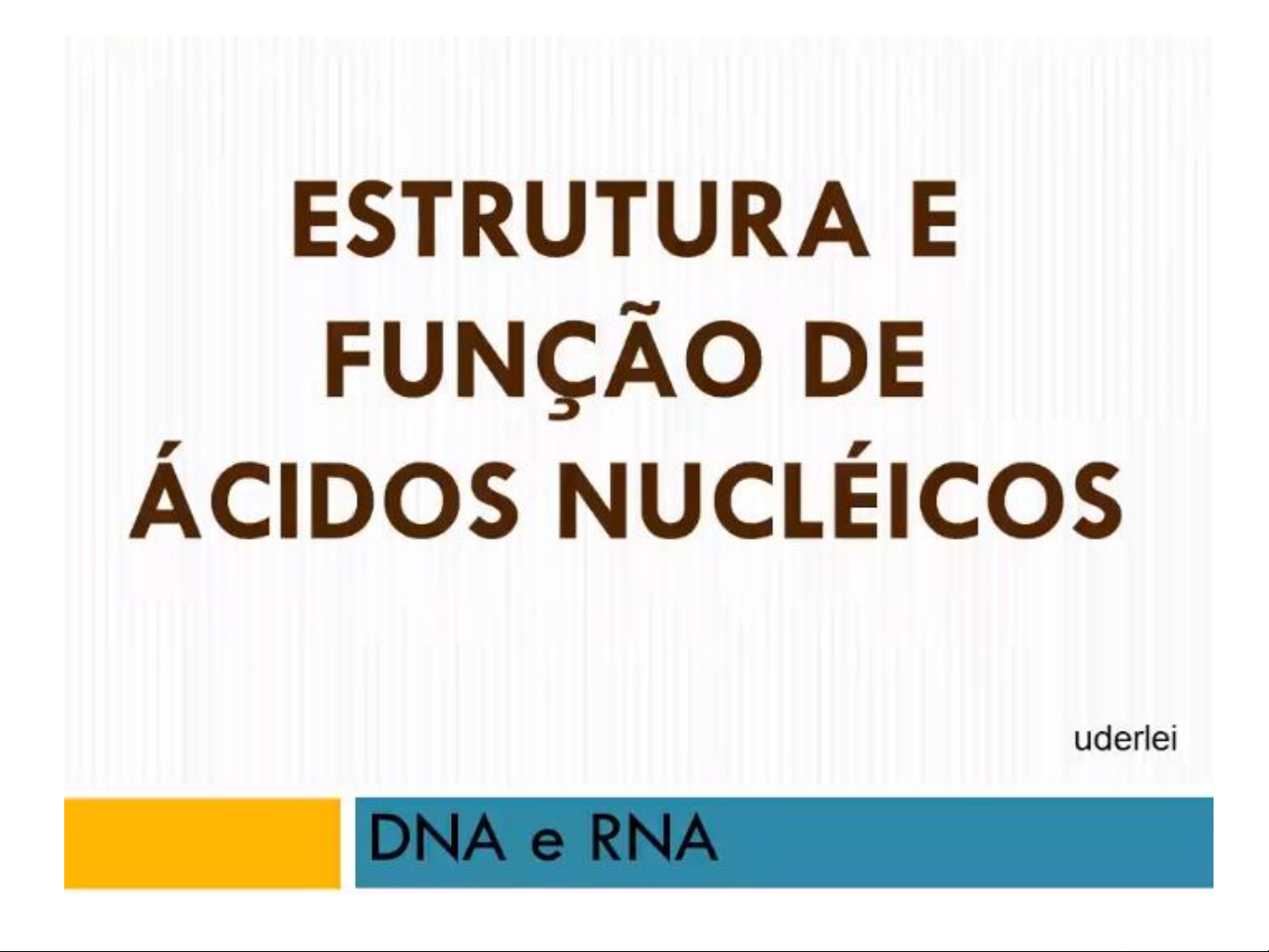 ESTRUTURA E FUNÇÃO DE ÁCIDOS NUCLÉICOS uderlei DNA e RNAHISTÓRICO 1865 - Gregor Mendel experimentos com ervilhas lei da hereditariedade características são transmitidas. 1871 Friedrich Miescher: encontrou uma nova substância que diferia das proteínas no núcleo de diversos tipos celulares chamou de nucleína. 1889 - Richard Altmann: comprovou a existência da nucleína de Miescher e sugeriu a troca do nome para ácido nucléico (caráter ácido).HISTÓRICO 1938 - William Astbury figura de difração do DNA com uso de raios X ideia de que a informação genética esta contida nas proteínas DNA seria estrutura muito simples. 1944 Oswald Avery, Maclyn McCarty e Colin Macleod: What is life? sugere que as informações genéticas estão numa estrutura molecular. 1952 - Alfred Hershey e Martha Chase: conseguiram provar que o DNA continha o material genético não as proteínas.HISTÓRICO 1953 - James Watson e Francis Crick decifram a estrutura de dupla hélice para DNA e a publicam na revista Nature sugeriram um mecanismo para a replicação do DNA. James Watson e Francis Crick compartilharam a Prêmio Nobel de Fisiologia ou Medicina em 1962. James Watson (à esquerda) e Francis Crick a olhar para seu modelo da molécula de DNACOMPOSIÇÃO Ácidos Nucléicos Ácido Ácido Ribonucléico (DNA) (RNA) Cadeias de NucleotídeosCOMPOSIÇÃO Ácidos Nucléicos: C H2C são polímeros C NH 0 formados por N 0 NUCLEOTÍDEOS 0 Base nitrogenada Grupo fosfato CH2 0 - 0 3 tipos de moléculas C H H C AçúcarCOMPOSIÇÃO ÁCIDO DESOXIRIBONUCLÉICO RNA - ÁCIDO RIBONUCLÉICO fosfato 5' carbon 5' carbon 5' Base nitrogenada 5' HOCH₂ OH HOCH₂ OH O 4' C1' C1' H H H H H C H H C C H 3' 2' 3' 2' 3' carbon 3' carbon OH H OH OH 2-Deoxyribose Ribose (Klug & Cummings 1997)COMPOSIÇÃO DNA - ÁCIDO DESOXIRIBONUCLÉICO RNA - ÁCIDO RIBONUCLÉICO DNA RNA timina uracila NH NH N N P P H H H H H H H H OH H OH OH There are two differences between the structure of DNA (on the left) and RNA (on the right). DNA contains a sugar group with a 2' while RNA contains a 2' hydroxyl group (circled in blue). DNA contains the base which base pairs with adenine. Instead of thymine, RNA contains a related base called uracil. Uracil is similar to thymine but lacks a methyl group (circled in red). Like uracil can base pair with adenine.BASES NITROGENADAS DNA E RNA Nucleotídeo = açúcar + grupo fosfato + base nitrogenada. As bases nitrogenadas são formadas por anéis de carbono e nitrogênio. H H C H C H C H C H C C N C N C N C N C NH 0 C C C C C C C C H N H H N i H N i H N i N P 0 Pyrimidine ring H H H Base Cytosine Uracil Grupo Thymine H NH2 N N H N C N C N C N H H H H C H C C C C C C C C N H N N N N H Açúcar H H H Purine ring Guanine AdenineNucleotídeos DNA Milhares de nucleotídeos P P G Sugar Double empilham-se em uma forma linear. P P Phosphate A I Helix Grupo fosfato liga 0 carbono 3 P P A I Nucleotide de um nucleotídeo ao carbono 5 P P de outro nucleotídeo. I A P P G Complementary Base Pair P P G P P I A Fosfato Açucar P P G A P P A I A Adesina P P T . Timina Base Nitrogenada C - Citosina G - GuaninaPolinucleotídeos Ligações fosfodiéster NH2 N N 5'end H adenina D N N H 0 purinas D fosfato H H N H N H H guanina deoxirribose H 0 H N N CH₂ 0 D H H H HOCH2 D CH H citosina H H H N pirimidinas H 0 0 OH 0 CH3 H H H timina ribose (no RNA) N (no DNA) H H H 0 D H N H N-H H H N 0 H H H uracil (no RNA) 0 H 3'endPolinucleotídeos Ligações fosfodiéster N 5'end H adenina D N N H purinas D fosfato H H H H guanina deoxirribose H 0 H N N 0 D H H H HOCH2 H citosina H H D H N 0 pirimidinas H 0 OH 0 CH3 H H H timina ribose (no RNA) (no DNA) H H H 0 H N 0 H N-H CH2 D 0 H H N 0 H H H uracil (no RNA) 0 H - 3'endÁcido Desorirribonucléico - DNA Composta por duas fitas de nucleotídeos unidas por pontes de hidrogênio Polímero longo (A não-ramificado T C Alto peso molecular G Pentose faz ligação entre base nitrogenada e fosfato. Pentose + fosfato invariáveis nos nucleotídeos e função unicamente estrutural. Bases nitrogenadas informações para a síntese de proteínas.Dupla fita do DNA A dupla fita é complementar e antiparalela P P 3'end P P S S 5'end T C A G A G T C S $ P P P P 3'endDupla fita do DNA A dupla fita é complementar e antiparalela P P P P Em uma das 3 end extremidades há S 5'end um grupo fosfato ligado ao carbono T C A G 5' e na outra extremidade uma A hidroxila ligada ao G T C carbono 3'. 5'end S S S P P P P 3'endDupla fita do DNA Base H Fosfato nitrogenada N N-H Desoxirribose OH Ligação de N hidrogênio N H-N OH H2C T A Sugar N N CH2 Sugar Adenine (A) Thymine (T) H2C G C H N H-N H2C C G N N-H N CH2 Sugar N N H2C N-H Sugar A T CH2 H OH Guanine (G) Cytosine (C) B Copyright publishing as BenjaminDupla fita do DNA H H 0.28 H Pontes de hidrogênio Thymine D Adenine H 0.30 H entre as bases N e Nitrogenadas 1.11 nm 50° 51° H H 0.29 am Cytosine H Rompimento das pontes de H 0.30 N hidrogênio: H N 0.29 nm D chain temperatura agitação das moléculas 1.08 nm desprotonação pH fosfato perde prótons e fica mais negativo aumenta a repulsãoDupla fita helicoidal do DNA Duas cadeias de nucleotídeos DNA Sugar Cytosine and que se enrolam com giro para Thymine Molecule: Bases direita Dupla hélice Two Antiparalelas 5' 3' Views Adenine and Guanine Phosphate group F Estrutura da molécula de DNA: H C H H H H 1- Parte invariável (açúcar e H H H fosfato) esqueleto H na parte externa CH H H 2- Pares de bases d CH H H complementares parte interna estrutura da molécula de DNA comparada a uma escada enrolada sobre siDupla fita helicoidal do DNA Entre os filamentos estão sulco Blocos construtores de DNA Fita de DNA maior e sulco menor. Fosfato Açúcar + G 5 3' G G A Base fostato Fita dupla de DNA de DNA Sulco menor 5 5 G C A T 1 A A A 3 À 10 pares Sulco T A A maior de bases G Esqueleto de G G G G A A 20 À G G T A A T (a) 5' 5' y Pares de bases unidos por ligações de Alberts; Biologia Molecular da Célula (pág. 17