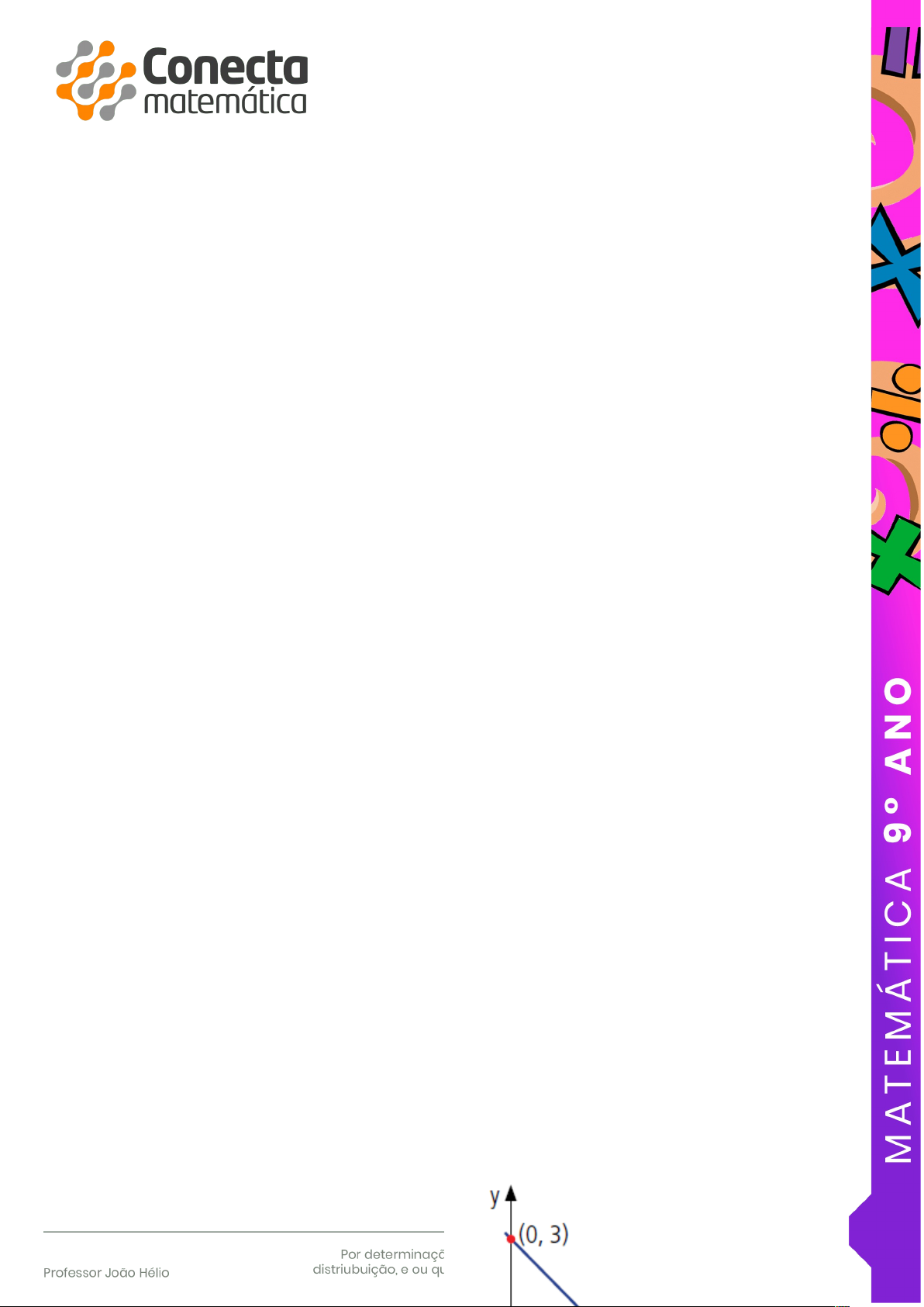 ATIVIDADES: AULA 26 UNIDADES TEMÁTICAS: Números OBJETO DE CONHECIMENTO: Funções: representações numérica, algébrica e gráfica. 1) Considerando uma função y = 2x+3, qual par ordenado obtemos quando x assume o valor 2 A) (2, 4) B) (4, 2) C) (2, 7) D) (7, 2) 2) Qual a definição de zero da função A) É todo valor de x para o qual y é igual a um B) É todo valor de x para o qual y é igual a zero C) É todo valor de y para o qual x é igual a zero D) É todo valor de x para o qual y é igual a x 3) Qual o zero da função y = -x + 2 A) x = 5 B) x = 2 C) x = 4 D) x = 1 4) Qual o zero da função y = 2x - 6 A) x = 1 B) x = 2 C) x = 3 D) x = 4 5) Observe o gráfico: As coordenadas do ponto que intercepta o eixo das ordenadas é: A) (4, 21) B) (0, 4) C) (0, 3) D) (3, 4) 6) Construa, na malha quadriculada abaixo, o gráfico das seguintes funções do 1° grau: A) y = - 2x + 6 B) y = 2x – 4 Gabarito: 1C, 2B, 3B, 4C, 5C, . image1.png image2.png image3.png