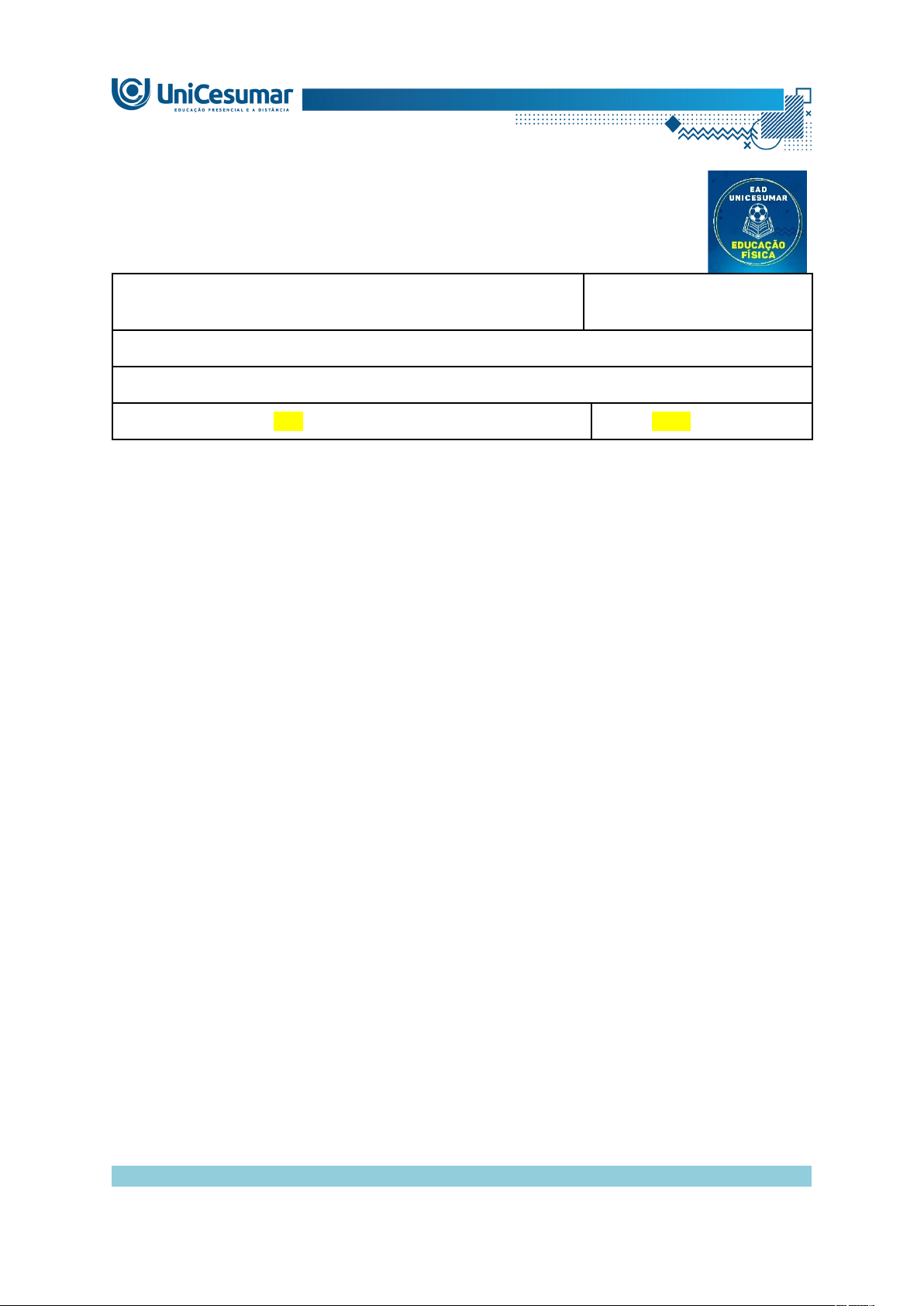 MAPA– Material de Avaliação Prática da Aprendizagem Acadêmico: [descreva seu nome aqui] R.A. [descreva o número do seu RA aqui] Curso: Educação Física Disciplina: Fisiologia geral e do movimento Valor da atividade: 3.00 Prazo: 28/10 Instruções para Realização da Atividade 1. Todos os campos acima deverão ser devidamente preenchidos; 2. É obrigatória a utilização deste formulário para a realização do MAPA Substitutivo; 3. Esta é uma atividade individual. Caso identificado cópia de colegas, o trabalho de ambos sofrerá decréscimo de nota; 4. Utilizando este formulário, realize sua atividade, salve em seu computador, renomeie e envie em forma de anexo; 5. Formatação exigida para esta atividade: documento Word, Fonte Arial ou Times New Roman tamanho 12, Espaçamento entre linhas 1,5, texto justificado; 6. Ao utilizar quaisquer materiais de pesquisa referencie conforme as normas da ABNT; 7. Critérios de avaliação: Utilização deste arquivo; Atendimento ao Tema; Constituição dos argumentos e organização das Ideias; Correção Gramatical e atendimento às normas ABNT. 8. Procure argumentar de forma clara e objetiva, de acordo com o conteúdo da disciplina. Em caso de dúvidas, entre em contato com seu Professor Mediador. Bons estudos! ATIVIDADE MAPA FISIOLOGIA GERAL E DO MOVIMENTO Saber quais são as mudanças/respostas/adaptações que ocorrem nos músculos e também no sistema cardiovascular como resultado de uma simples sessão de exercício (exercício agudo) e de repetidas sessões de exercício (programas de treinamento) nos tecidos, órgãos e sistemas que permite que o indivíduo corra em velocidades mais rápidas por distâncias s longas, qual o impacto dos fatores ambientais (altitudes elevadas ou calor e umidade excessivos) nas habilidades dos indivíduos para responder e adaptar-se ao exercício realizados nessas condições, qual combustível (carboidrato, proteínas ou gordura) é mais importante quando o indivíduo estiver correndo uma maratona, qual é a predominância dos sistemas bioenergéticos responsáveis pela ressíntese de ATP (fornecimento de energia) em provas de velocidade até provas de longa duração, além de entender o papel do exercício físico sobre as alterações fisiológicas que ocorrem em grupos especiais, são apontamentos que podem ser respondidos por pesquisas feitas relacionadas a fisiologia do exercício. POWERS, S. K.; HOWLEY, E. T. Fisiologia do exercício: Teoria e aplicação ao condicionamento e ao desempenho. New York, 8ª ed., 2014. Imagine a seguinte situação hipotética: Uma das melhores clínicas de assessoria esportiva voltada para modalidades aeróbias (corrida, natação e ciclismo) de sua cidade vai iniciar a seleção de um estagiário com possibilidade de realizar a sua contratação ao final do período de estágio. Essa seleção é composta por duas etapas: a primeira de caráter eliminatório, composta por uma prova relacionada aos conhecimentos sobre fisiologia do exercício, e uma segunda etapa composta por uma entrevista de caráter classificatório com os indivíduos aprovados na primeira etapa. Essa pode ser uma oportunidade excelente para você aprimorar e colocar em prática todo o conhecimento adquirido na disciplina de fisiologia geral e do movimento. A partir do exposto, para realizar esta atividade Mapa, você deverá recorrer às informações do livro da disciplina e das aulas ao vivo e responder as questões abaixo que foram realizadas na primeira etapa de seleção para estagiário desta clínica de assessoria esportiva. Leia com atenção o que é solicitado e responda de forma clara e direta. Prova para seleção de estagiário (questões de 1 a 4): 01. Explique a principal diferença existente na predominância dos sistemas de transferência de energia responsáveis pela ressíntese de trifosfato de adenosina (ATP) entre a prova de 50 metros livres da natação com a prova de 200 metros “medley” da natação. A principal diferença dentro dos sistemas de transferência de energia tanto em provas de 50 metros livres na natação ou os 200 metros do tipo "medley" é que a de resíntese de ATP deve ser mais ou menos exigida, havendo um certo equilíbrio. O envio de energia para os músculos do corpo conforme a necessidade Se na prova de 200 metros "medley" os nadadores profissionais executassem rapidamente e com toda a intensidade do seu corpo, logo na metade ou na reta final da prova eles perderiam o controle pulmonar e também ficariam sem oxigenação nos músculos. Já na prova de 50 metros livres, eles podem distribuir com total força a energia pelo corpo, afim de terminar a prova rapidamente. 02. Cite qual o substrato energético é predominante nas provas de 50 metros livres da natação (duração: ≈ 22 segundos) e na prova de 800 metros rasos no atletismo (duração: ≈ 1 minuto e 41 segundos). De acordo com os conhecimentos em Fisiologia Geral e do Movimento, é possível determinar que o substrato energético predominante nas provas de 50 metros livres da natação e na prova de 800 metros rasos no atletismo é o glicogênio muscular. 03. Explique as alterações agudas que ocorrem no débito cardíaco, volume sistólico e frequência cardíaca durante o exercício em indivíduos sem treinamento ou moderadamente treinados. [descreva sua resposta aqui] 04. Observe abaixo a figura referente a transição do repouso para o exercício e as respostas metabólicas que ocorrem na sua fase de recuperação, e responda as questões “a, b e c” a seguir: a) Explique o que acontece no início do exercício para a ocorrência do déficit de oxigênio. [descreva sua resposta aqui] b) Explique por que indivíduos treinados atingem o estado estável do consumo de oxigênio (VO2) mais rápido do que os indivíduos sem treinamento e, como consequência, apresentam um déficit de oxigênio menor. [descreva sua resposta aqui] c) Quais são os fatores que contribuem para o com