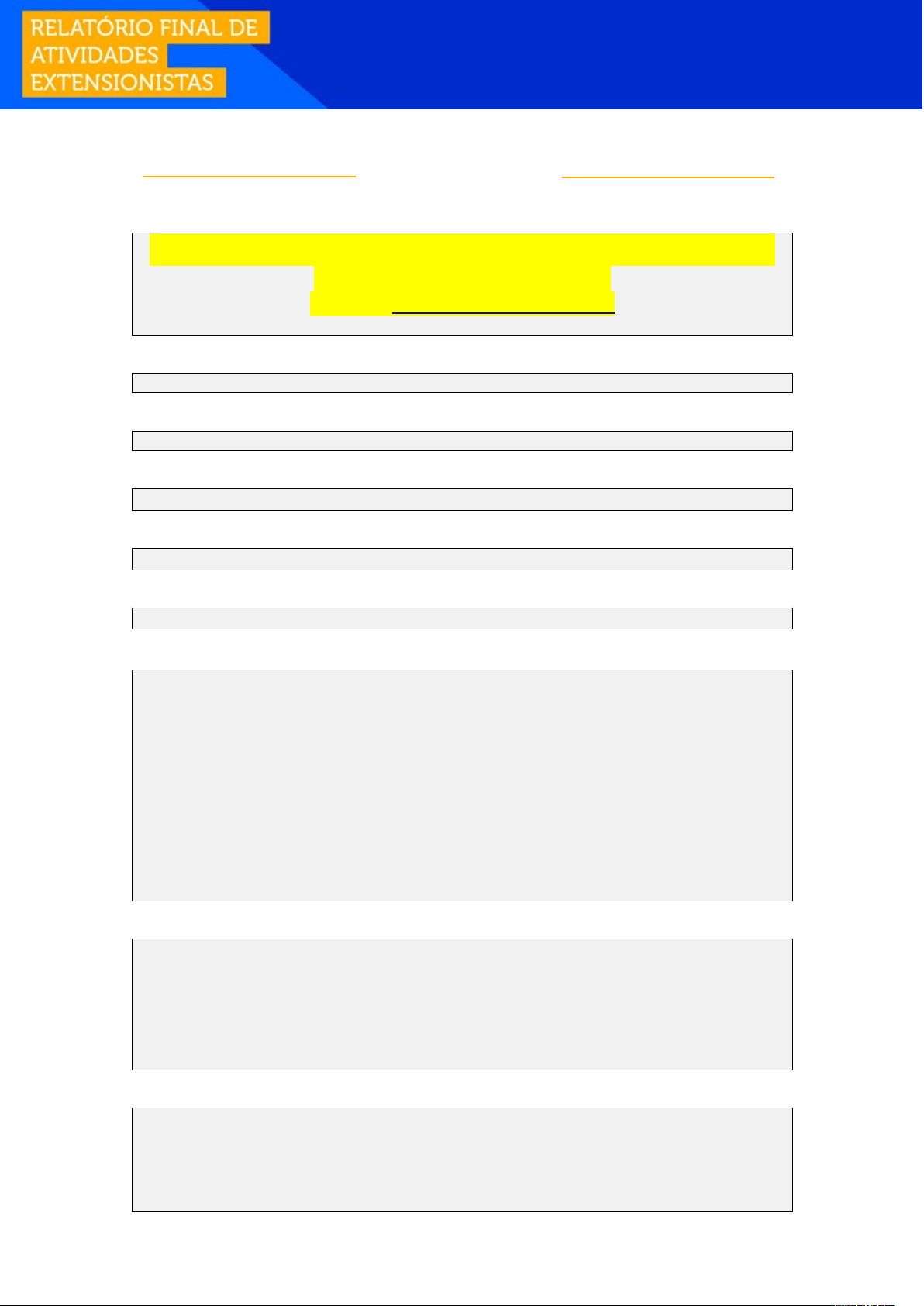 Aluno e Aluna, após realizar suas atividades de extensão, é necessário que você o formalize, enviando esse Relatório Final para ser avaliado junto ao seu