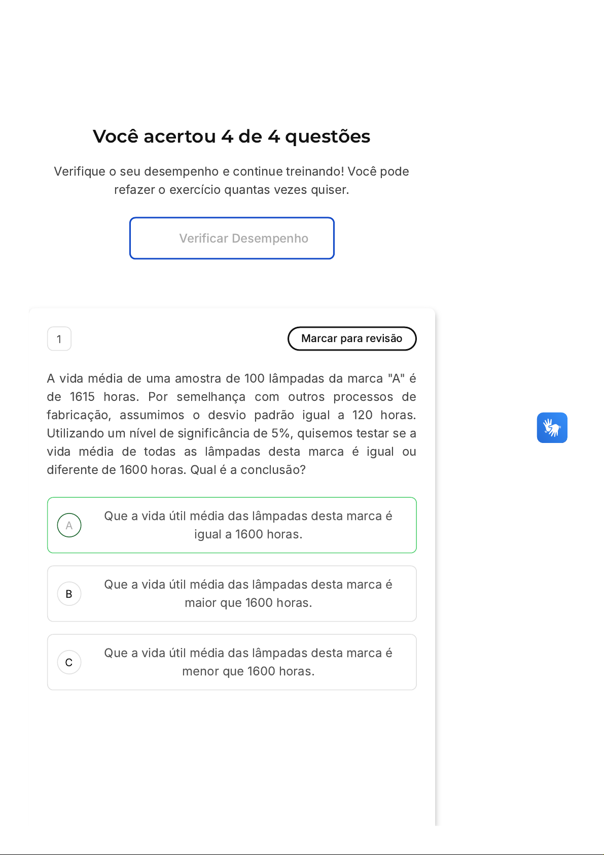 diferente de 1600 horas. Qual é a conclusão?