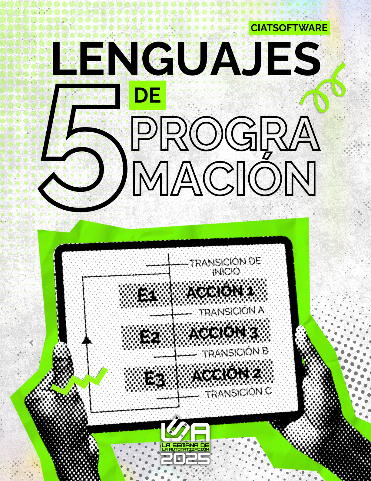 LENGUAJES DE 5PROGRA MACIÓN CIATSOFTWARE AWL (IL) CIATSOFTWARE AWL (IL) Se le conoce como listas de instrucciones, ya que busca dar indicaciones en un nivel muy bajo de programación para que el controlador no pierda tiempo en traducir la información. La desventaja del lenguaje es el tamaño del código, mientras mas complejo sea el proceso el tamaño sera más grande. El AWL dispone de un juego de nemónicos extensos (más de 100) al igual que de operandos y de modos de direccionamiento. Funciones básicas del lenguaje AWL AND OR SET / RESET A I0.1 AN I02 = Q0.1 O I0.1 ON I0.2 = Q0.1 A I0.1 SQ0.1 A I0.2 R Q0.1 Q0.1 = I0.1 * I0.2 Q0-1 = I0.1 + I’.2 (S) Q0.1 = I0.1 (R) Q0.1 = I0.2 AND OR SET/RESET CIATSOFTWARE SIEMENS SCHNEIDER ELECTRICS MITSUBISHI DELTAL ABB TIA Portal Step 7 Microwin. v4.0 EcoStruxure Machine Expert (SoMachine, Unity pro) GxWorks 2 ISP Soft Automation Build er ¿Que PLCs utilizan AWL? ¿Que entornos utilizan AWL? SIEMENS SCHNEIDER ELECTRICS MITSUBISHI DELTAL ABB S7-200 S7-300 S7-400 S7-1200 S7-1500 PLC Modicon Schneider M221 PLC Modicon Schneider M241 PLC Modicon Schneider M251 PLC Modicon Schneider M340 Mitsubishi FX5U Mitsubishi FX5UC Mitsubishi FX5UJ Mitsubishi FX3U AS200 AS300 AH 500 AC500 AC 500 Eco AC 500 S SIEMENS SCHNEIDER ELECTRICS MITSUBISHI DELTAL ABB SIEMENS SCHNEIDER ELECTRICS MITSUBISHI DELTAL ABB KOP (LD) CIATSOFTWARE KOP (LD) Se le denomina diagrama de contactos o escalera, ya que a diferencia del FUP, hace uso de la logica booleana por medio de contactos eléctricos en serie y paralelo. Actualmente es el lenguaje más ocupado en la programación PLC. Funciones básicas del lenguaje AWL Entrada: contacto normalmente abierto Entrada: contacto normalmente cerrado Salida: bobina o relé Activar salida: bobina o relé Desactivar salida: bobina o relé puesto “0” E1 E2 S2 S2 S S3 R ENTRADA: ENTRADA: SALIDA: ACTIVAR SALIDA: DESACTIVAR SALIDA: CIATSOFTWARE ¿Que PLCs utilizan KOP? ALLEN BRADLEY SIEMENS OMRON MITSUBISHI DELTA Micro 800 ControlLogix MicroLogix CompactLogix LOGO S7-200 S7-300 S7-400 S7-1200 S7-1500 CJ2H CJ2M CP2E Mitsubishi FX5U Mitsubishi FX5UC Mitsubishi FX5UJ Mitsubishi FX3U AS200 AS300 AH500 MITSUBISHIALLEN BRADLEY SIEMENS OMRON DELTA SCHNEIDER ELECTRICS ABB PLC Modicon Schneider M221 PLC Modicon Schneider M241 PLC Modicon Schneider M251 PLC Modicon Schneider M340 AC500 AC500 Eco AC500 S ABBSCHNEIDER ELECTRICS CIATSOFTWARE ¿Qué entornos utilizan KOP? SIEMENS OMRON MITSUBISHI DELTA ABB TIA Portal LOGO Step 7 Microwin.v4.0 Cx-One GxDeveloper GxWorks 2 WPL Soft ISP Soft Automation Builder ALLEN BRADLEY SCHNEIDER ELECTRICS Workbench RSLogix 5000 Studio 5000 Logix Designer RSLogix 500 EcoStruxure Machine Expert (SoMachine, Unity pro) MITSUBISHI ALLEN BRADLEY SIEMENS OMRON DELTA ABB SCHNEIDER ELECTRICS FUB (FBD) CIATSOFTWARE FUB (FBD) Se le denomina diagrama de funciones, esta ligado a la lógica boleana, ya que esta representado por funciones como OR, AND, NOT, XOR, NAND, NOR, etcétera. Tiene la vantaja de ser agrupados por bloques a las diferentes logicas y tener bloques complejos. Entre las principales instrucciones en este lenguaje se encuentran: coloca resultado, inserta nueva rama, niega la entrada seleccionada, inserta nueva entrada al bloque Funciones básicas del lenguaje FUB AND OR NOT AND OR NOT CIATSOFTWARE ¿Qué PLCs utilizan FUB? ALLEN BRADLEY SIEMENS OMRON MITSUBISHI DELTA Micro 800 ControlLogix CompactLogix Smart Guard 600 LOGO S7-200 S7-300 S7-400 S7-1200 S7-1500 CJ2H CJ2M CP2E Mitsubishi FX5U Mitsubishi FX5UC Mitsubishi FX5UJ Mitsubishi FX3U AS200 AS300 AH500 MITSUBISHIALLEN BRADLEY SIEMENS OMRON DELTA SCHNEIDER ELECTRICS ABB PLC Modicon Schneider M221 PLC Modicon Schneider M241 PLC Modicon Schneider M251 PLC Modicon Schneider M340 AC500 AC500 Eco AC500 S ABBSCHNEIDER ELECTRICS CIATSOFTWARE ¿Qué entornos utilizan FUB? SIEMENS OMRON MITSUBISHI DELTA ABB LOGO TIA Portal Step 7 Microwin.v4. 0 TIA Portal Step 7 V5.x TIA Portal Step 7 Cx-One GxWorks 2 ISP Soft Automation Builder ALLEN BRADLEY SCHNEIDER ELECTRICS Workbench RSLogix 5000 Studio 5000 Logix Designer RSLogix 500 Studio 500 Logix Designer RSNetWorx EcoStruxure Machine Expert (SoMachine, Unity pro) MITSUBISHI ALLEN BRADLEY SIEMENS OMRON DELTA ABB SCHNEIDER ELECTRICS GRAFCET CIATSOFTWARE GRAFCET Este lenguaje es un híbrido entre KOP y AWL. Su función primaria es crear una cadena de etapas, es decir, pequeños bloques de códigos que representan funciones específicas del proceso. Así mismo, permite representar también los procesos complejos de una forma muy clara, logrando una programación y una búsqueda de errores efectivas. Funciones básicas del lenguaje FUB CIATSOFTWARE ¿Qué PLCs utilizan FUB? ALLEN BRADLEY SIEMENS MITSUBISHI DELTA ControlLogix CompactLogix S7-300 S7-400 S7-1500 Mitsubishi FX5U Mitsubishi FX5UC Mitsubishi FX5UJ Mitsubishi FX3U AS200 AS300 AH500 SCHNEIDER ELECTRICS ABB PLC Modicon Schneider M221 PLC Modicon Schneider M241 PLC Modicon Schneider M251 PLC Modicon Schneider M340 AC500 AC500 Eco AC500 S MITSUBISHIALLEN BRADLEY SIEMENS DELTA ABBSCHNEIDER ELECTRICS CIATSOFTWARE ¿Qué entornos utilizan FUB? SIEMENS OMRON MITSUBISHI DELTA ABB TIA Portal Step 7 V5.x TIA Portal Step 7 Cx-One GxWorks 2 GxDeveloper WPL Soft ISP Soft Automation Builder ALLEN BRADLEY SCHNEIDER ELECTRICS RSLogix 5000 Studio 5000 Logix Designer RSLogix 500 Studio 500 Logix Designer EcoStruxure Machine Expert (SoMachine, Unity pro) MITSUBISHI ALLEN BRADLEY SIEMENS OMRON DELTA ABB SCHNEIDER ELECTRICS SCL (ST) CIATSOFTWARE SCL (ST) SCL “Structured Control Lenguage” es el lenguaje de texto estructurado para PLCs de Siemens y está basado en el lenguaje de alto nivel PASCAL. Permite una fácil integración en el contexto de una solución global para un problema de automatización ya que un bloque programado en SCL puede ser llamado desde un bloque escrito en KOP, en grafcet, en AWL o en FUP y a la inversa, un bloque escrito en SCL. Se considera de mucha utilidad cuando s