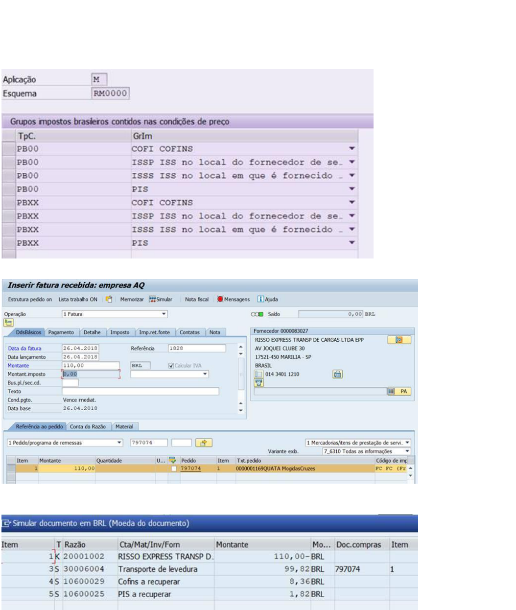 We have a case that was working in all three environments and we realized that in the first half of that month, the QAS and PRD stopped working. We set the scenario to include the PIS / COFINS in the net price and this causes in TAXBRA to activate the offset conditions by zeroing the tax field because the value is within the net value. View: J_1BKON1V ZLD - Despite the PIS / COFINS calculation, see that the Tax field is zero due to the above configuration: QAS Já no QAS e na PRD é como se o standard tivesse ignorando a configuração acima e adicionando no liquido o imposto (campo imposto) para chegar no montante final We have seen that you have a note applied in QAS .. but it is not in Production. I believe that the determine_adjusted_net method is that SAP considers that configuration above. I guess could be something on: CLASS: CL_TAX_CALC_BR or FUNCTION: MRM_FINAL_CHECK I also checked the SAP NOTES: 2539805 - MIRO/MIR4: Various corrections for invoice reduction Of: Version 3 from 08.11.2017 in EnglishShow Changes It deals with: ou enter a logistics invoice with manual invoice reduction 1) You do not enter a tax amount, or you enter a tax amount that is smaller than the amount automatically calculated in the credit memo. If the ‘Basic data’ tab page is active and a header tax code is set, the system issues corresponding error messages. These messages are (incorrectly) not issued if: a) the ‘Basic data’ tab page is active and the header tax code is missing b) the ‘Tax’ tab page is active. If the invoice contains only items with complete invoice reduction (quantity and amount = 0), the tax base is determined incorrectly. 2) If the ‘Tax’ tab page is active, error messages from the tax calculation may not appear in the log. 3) In the case of certain error messages from the tax calculation (e.g. FF 796), the messages are not written to the log, but are displayed directly in the status bar. As a result, there is no option to correct this data. 4) You have parked the invoice with manual invoice reduction. You use transaction MIR4 to postprocess the parked document. Then you choose ‘Update Allocation’. Afterwards, previously entered invoice reduction data may be lost during parking. COULD YOU CHECK PLEASE IF WE ARE IN THE RIGHT WAY. I tried to apply the sap note: 2539805 Best regards Denner S F Andrade Other information:
