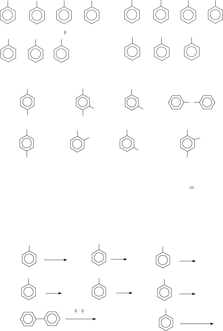 QFL 2342 Reatividade de Compostos Orgânicos I – Prof. J. WILHELM BAADER EXERCÍCIOS 07 - 2012 1. Coloque os compostos de cada um dos seguintes conjuntos em ordem decrescente de reatividade frente a substituição eletrofílica aromâtica. Justifique. 2. Especifique se você espera que os anéis benzênicos dos compostos a seguir serão ativados ou desativados frente a substituição eletrofílica aromática. 3. Escreva estruturas de ressonância apropriadas para explicar o efeito diretor dos seguintes grupos: 4. Escreva o principal produto (ou produtos) esperado(s) de cada uma das seguintes reações de substituição eletrofílica: 5. Você concorda com a afirmação a seguir? Explique sua resposta. "Substituintes fortemente retirantes de elétrons em anéis benzênicos são meta dirigentes porque eles desativam as posições meta em menor intensidade do que desativam as posições orto e para". CONH2CO2 - Na + COCH3OCCH3 O O - Na + d) OCH3 c) CF2CH3CH2CF3CH2CCl3CH2CH3 b) CH2ClCHCl2CH3CCl3 a) d) O c)b) OH CH3 NO2 NO2 F CO2H CO2H a) h)g)f) OH C(CH3)3 CH3 SO3H NO2 NH2 OH CO2H CH3 e) a) -NH2 b) -O - c) -CN d) -SO3H e) -CO2H f) -CO2CH3 g) -OCOCH3 h) -COCH3 i) -OCH3 j) -NHCOCH3 l) -CONH2 m) -CH CH2 n) -Cl o) -NO2 a) N(CH3)2 CH3COCl AlCl3 b) Cl Br2 Fe c) CH(CH3)2 SO3 H2SO3 d) OCH3 ClSO3H e) COCH2CH3 HNO3 H2SO4 f) NHCOCH3 I2 HNO3 g) CH3COCCH3 O O AlCl3 h) NO2 HNO3 /H2SO4 QFL 2342 Reatividade de Compostos Orgânicos I – Prof. J. WILHELM BAADER EXERCÍCIOS 07 - 2012 6. A substituição eletrofílica no anel benzênico do benzenotiol (tiofenol, C6H5SH) não é possível. Por quê? O que você acha que acontece quando o benzenotiol reage com um eletrófilo? 7. Escreva o principal produto (ou produtos) esperado(s) de cada uma das seguintes reações: 8. Partindo de benzeno, proponha uma síntese razoável para cada um dos seguintes arenos polissubstituídos: 9. a) Formule o mecanismo da nitração de tolueno com HNO3/H2SO4 e mostre o diagrama de energia potencial desta transformação. b) Formule o mecanismo da sulfonação de benzeno e mostre um diagrama de energia. c) Formule o mecanismo da alquilação e da acilação de Friedel Crafts, catalisadas por ácidos de Lewis, para um exemplo típico. d) Mostre o mecanismo da bromação de fenol em meio neutro e em meio básico. Qual das reações deve ocorrer mais rapidamente. Qual seria o meio mais adequado para obter produtos monobromados? 10. Sabe-se que benzenos alquilados são mais suscetíveis a ataques eletrofílicos que o próprio benzeno. Faça um diagrama de energia, mostrando como uma substituição eletrofílica no tolueno difere de uma no benzeno, em termos energéticos. H2O Br2 H2SO4 HNO3 a) NO2 CH3 b) OCH3 OCH3 c) Cl CH3 d) CO2H CH2CH3 e) NH2 NH2 f) SO3H COCH3 g) h) NHCOCH3 NO2 Cl2 FeCl3 HNO3 H2SO4 SO3 H2SO4 Br2 FeBr3 NO2 HNO3 H2SO1 Cl2 Fe i) NO2 Cl CH3Cl AlCl3 j) CH3 OCH3 NO2 SO3 H2SO4 d)c)b) NO2 NH2 CH2CH3 SO3H NO2 Cl CH2CH3 COCH3 a) QFL 2342 Reatividade de Compostos Orgânicos I – Prof. J. WILHELM BAADER EXERCÍCIOS 07 - 2012 11. O corante diazo 4-dietilamino-4’-nitro-azobenzeno mostra um espectro de absorção que depende fortemente do solvente utilizado, o que resulta na coloração amarela de soluções deste composto em ciclo-hexano e soluções vermelho escuro em etanol. Mostre a síntese deste composto a partir de benzeno, brometo de etila e reagentes inorgânicos necessários. N(C2H5)2 N N NO2 12. O corante “Pararot” e derivados é utilizado na indústria têxtil. Mostre a síntese deste composto a partir de –naftol, benzeno e reagentes inorgânicos necessários. OH N N NO2 13. Mostre os intermediários 1 a 5 da sequência de reação abaixo para a síntese da proparacaína. Indique o mecanismo envolvido em cada passo. 14. Mostre como cada composto abaixo pode ser sintetizado a partir do benzeno. 15. Ambas as transformações propostas abaixo fracassam. Explique porque. 16. Um dos anéis do benzoato de fenila sofre substituição eletrofílica aromática com muito maior facilidade que o outro. Qual é o anel? Explique a resposta. 17. Mostre um caminha sintético eficiente para a preparação de cada um dos compostos abaixo, utilizando-se sais de diazônio e grupos de proteção removíveis quando for necessário. Use como material de partida o benzeno e reagentes inorgâncios e haletos de alquil e acila necessários, evitando a necessidade de separação de isômeros orto e para. a) 1,3,5-tribromobenzeno; b) 1,3-dicianobenzeno; c) 3-bromo-4-fluorotolueno; d) 1,5-dibromotolueno. 18. A produção industrial mundial anual de cumeno (2-propilbenzeno), a partir de propeno e benzeno na presença de ácido fosfórico, é de várias bilhões de quilos, devido a sua importante como intermediário na produção de fenol. Escreva um mecanismo detalhado desta reação. Como se faria esta síntese em um laboratório de pesquisa e porque a indústria não utiliza este processo. Se informe nos livros didáticos sobre a transformação do cumeno para o fenol e a principal utilização industrial do fenol.
