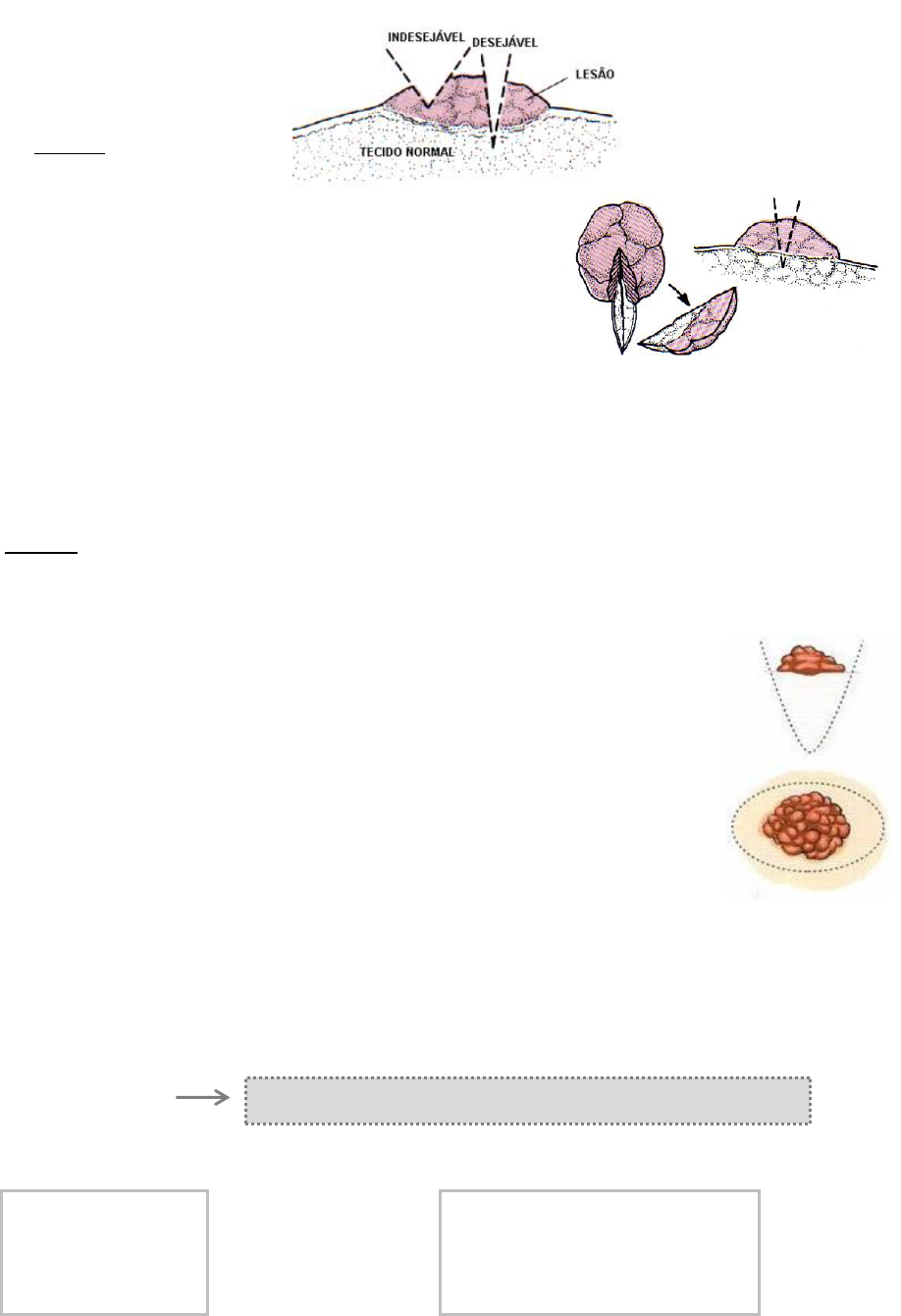 Biópsia excisional EXAMES EXPLORATÓRIOS PROCESSO DIAGNÓSTICO 1) Exame clínico 2) Hipóteses de diagnóstico 3) Exames complementares a. Imagem b. BIÓPSIA c. Citologia d. Punção aspirativa e. Hematológicos 4) Diagnóstico final 5) Terapêutica 6) Prognóstico 7) Reavaliação EXAMES COMPLEMENTARES “O contexto clínico é fundamental na interpretação dos exames complementares.” Exames exploratórios: biópsia, citologia, punção/aspiração. BIÓPSIA Remoção de um fragmento vivo para exame histopatológico. Procedimento diagnóstico, no qual são removidos tecidos de um organismo vivo para exame microscópico e preparo de laudos. INDICAÇÕES ─ Lesões persistentes e que não podem ser diagnosticadas por outros métodos ─ Lesões leucoplásicas ─ Lesões eritroplásicas ─ Úlceras com tempo de evolução superior a 14 dias ─ Alterações inflamatórias persistentes ─ Lesões ósseas ─ Achados clínicos com suspeita de malignidade ─ Reconhecimento de metástases tumorais CONTRA INDICAÇÕES ─ Quando o diagnóstico é possível pelo exame clínico. Ex: herpes, candidíase, língua geográfica, afta. ─ Gerais: estado geral do paciente – ponderar a urgência do procedimento. Ex: hipertensos graves, diabéticos não controlados, uso de anticoagulantes, com deficiência de fatores da coagulação. ─ Locais: lesões vasculares? Lesões pigmentadas? TIPOS DE BIÓPSIA ─ Excisional/total ─ Incisional/parcial Escolha depende da natureza e diagnóstico clínico da lesão. Lesões benignas Únicas Pequenas Bem delimitadas Lesões suspeitas de malignidade Múltiplas Extensas Limites mal definidos Biópsia incisional EXCISIONAL Retirada de toda lesão para exame histopatológico; O exame complementar coincidiu com o tratamento Biópsia NÃO é tratamento. PROTOCOLO CLÍNICO PARA EXECUÇÃO DE BIÓPSIA 1) Preenchimento do prontuário (dados pessoais + anamnese + exame clínico) 2) Determinação do tipo de biópsia 3) Escolha do instrumental cirúrgico adequado 4) Seleção da área mais representativa com tecido sadio próximo 5) Realização da técnica operatória 6) Acondicionamento do material coletado em recipiente com formol a 10% 7) Recomendações pós-operatórias 8) Envio do material biológico para o laboratório 9) Análise do resultado histopatológico 10) Controle clínico e plano de tratamento PRINCÍPIOS DE BIOSSEGURANÇA 1) Utilização de EPI’s: gorro, máscara, luvas estéreis, jaleco/avental, pró-pé, óculos 2) Antissepsia extra bucal: ─ Extra-bucal: clorexidina 4% ─ Intra-bucal: clorexidina 0,12% 3) Campos cirúrgicos estéreis e descartáveis 4) Instrumental estéril CONSIDERAÇÕES CIRÚRGICAS Anestesia Estabilização dos tecidos Incisão Fechamento Cuidados com o espécime COMO ENVIAR O MATERIAL PARA O PATOLOGISTA Cuidados com a peça: 1) Fixação com formalina tamponada 10% por no mínimo 24h 2) Volume de líquido 20x tamanho da peça 3) Peça totalmente imersa na solução 4) Boca do frasco 2x maior que o diâmetro da peça 5) Identificação do frasco (nome do paciente e data da coleta) Informações clínicas 1) Dados referentes ao paciente 2) Características clínicas da lesão NO LABORATÓRIO... 1) Registro 2) Mascroscopia 3) Processamento da lâmina histológica 4) Coloração 5) Laudo histopatológico Após o procedimento cirúrgico, terminou a biópsia? NÃO Deve-se enviar o material coletado para o patologista. CITOLOGIA ESFOLIATIVA Técnica simples, barata, indolor, não invasiva. NÃO substitui a biópsia. Papanicolau e Traut em 1943 ─ Objetivo: método de exame que se baseia na análise de células esfoliadas por raspagem e análise microscópica. ─ Pode ser utilizada: a) Rastreamento ou monitoramento da mucosa exposta a carcinógenos. INDICAÇÕES: ─ Lesão SEM suspeita de malignidade ─ Lesões extensas ou múltiplas ─ Pacientes comprometidos sistemicamente ─ Lesões virais ou fúngicas (candidíase) ─ Preservação do paciente CLASSIFICAÇÃO ─ Classe 0 – material insuficiente/inadequado ─ Classe I – células normais ─ Classe II – células atípicas sem evidencia de malignidade ─ Classe III – células sugestivas de malignidade ─ Classe IV – fortemente sugestiva de malignidade ─ Classe V – citologia conclusiva de malignidade OBS: a biópsia é mandatória para classes III, IV e V PUNÇÃO/ASPIRAÇÃO INDICAÇÕES ─ Lesões ósseas dos maxilares devem ser submetidas a uma biópsia aspirativa prévia a exploração cirúrgica (descartar lesões vasculares intra-ósseas). ─ Identificação da presença de líquidos em lesões intra-ósseas PUNÇÃO COM AGULHA Material coletado: ─ Ar = lesão sólida x cavidades ósseas ─ Líquido cor de palha/castanho = cistos ─ Pus = processo inflamatório/infeccioso ─ Sangue = lesão vascular BIÓPSIA ASPIRATIVA POR AGULHA FINA Deve ser utilizada para lesões de localização profunda nos tecidos, como glândulas salivares maiores e linfonodos. Técnica de Punch