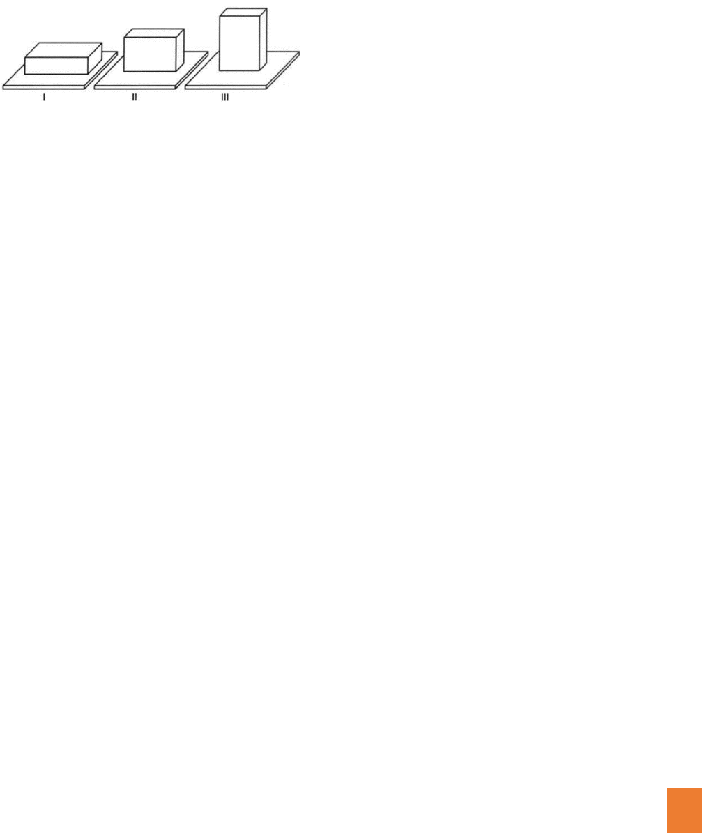 As figuras mostram um mesmo tijolo, de dimensões 5cm x 10cm, apoiado sobre uma mesa de três maneiras diferentes, em cada situação, a face do tijolo que está em contato com a mesa é diferente.