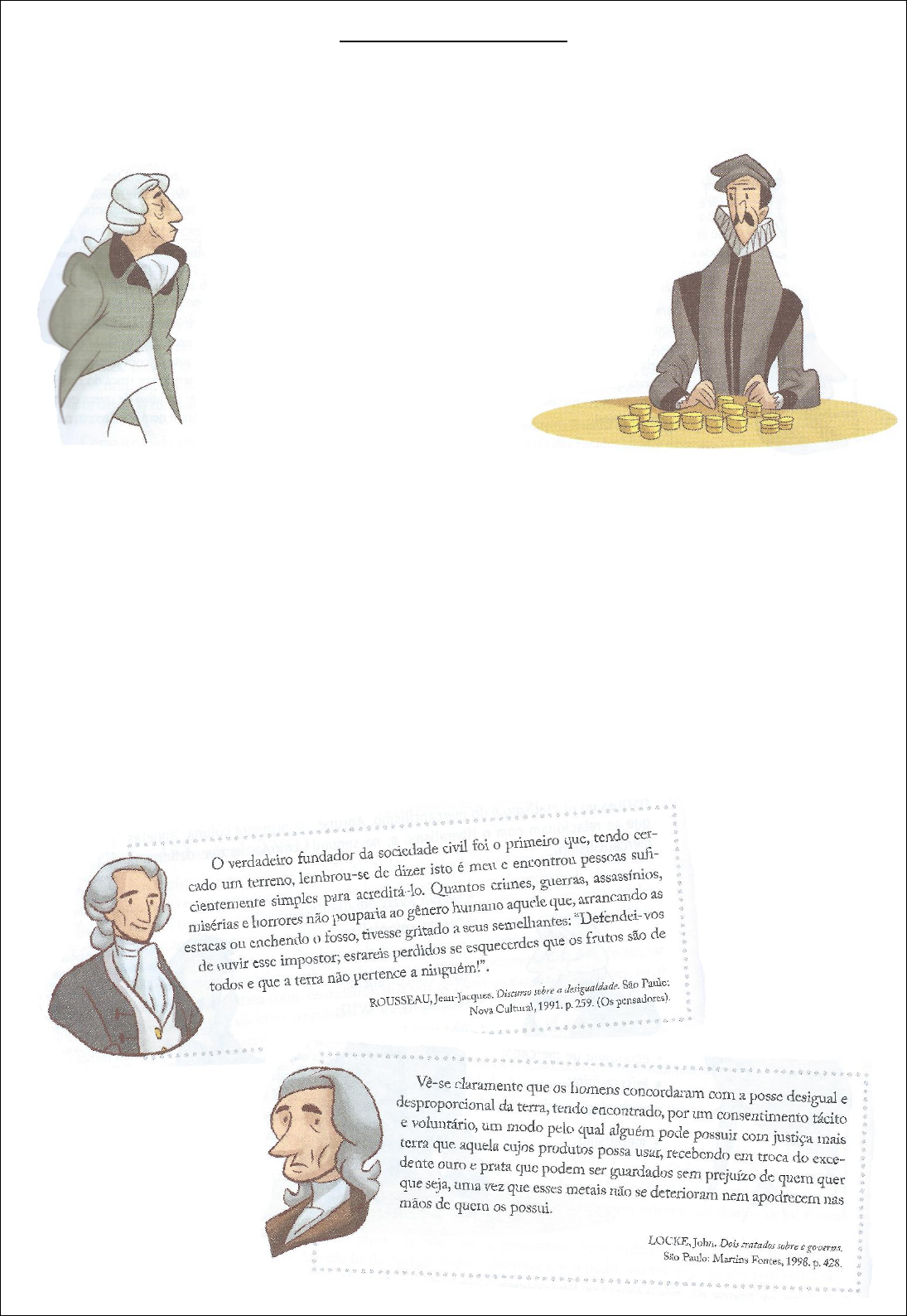 ATIVIDADES – ILUMINISMO 1. No caderno, monte uma tabela com duas colunas cujos títulos sejam: Liberalismo e Mercantilismo. Entre os itens listados abaixo, encontramos características do liberalismo e do mercantilismo. Agrupe, na primeira colina, aquelas que se relacionam com o liberalismo e, na segunda coluna, as que definem o mercantilismo: século XVIII em diante; “pacto colonial” intervencionismo estatal; livre concorrência; séculos XV ao XVIII; mão invisível; economia de mercado; laissez-faire; protecionismo; metalismo. 2. Defina os termos abaixo utilizando suas palavras: a) Liberalismo econômico: b) Despotismo esclarecido: 3. Escreva um pequeno texto articulando as seguintes palavras ou expressões: Iluminismo, Intervencionismo, liberdade, igualdade, escravidão. 4. Qual a relação existente entre a atual organização política de nosso país e o Iluminismo? 5. Os iluministas não pensavam todos de maneira igual. Leia com atenção os textos a seguir, que abordam a questão da propriedade privada da terra. O primeiro texto foi escrito por Rousseau, e o segundo é de John Locke. Em seguida, responda as questões em seu caderno: a) Segundo Rousseau, como teria se originado a sociedade civil? b) Qual a opinião de Rousseau sobre a propriedade privada da terra? c) Segundo Locke, é justo que uma pessoa possua mais terras de que outra? Justifique sua resposta: d) Podemos considerar as visões dos dois autores semelhantes ou diferentes? Justifique:
