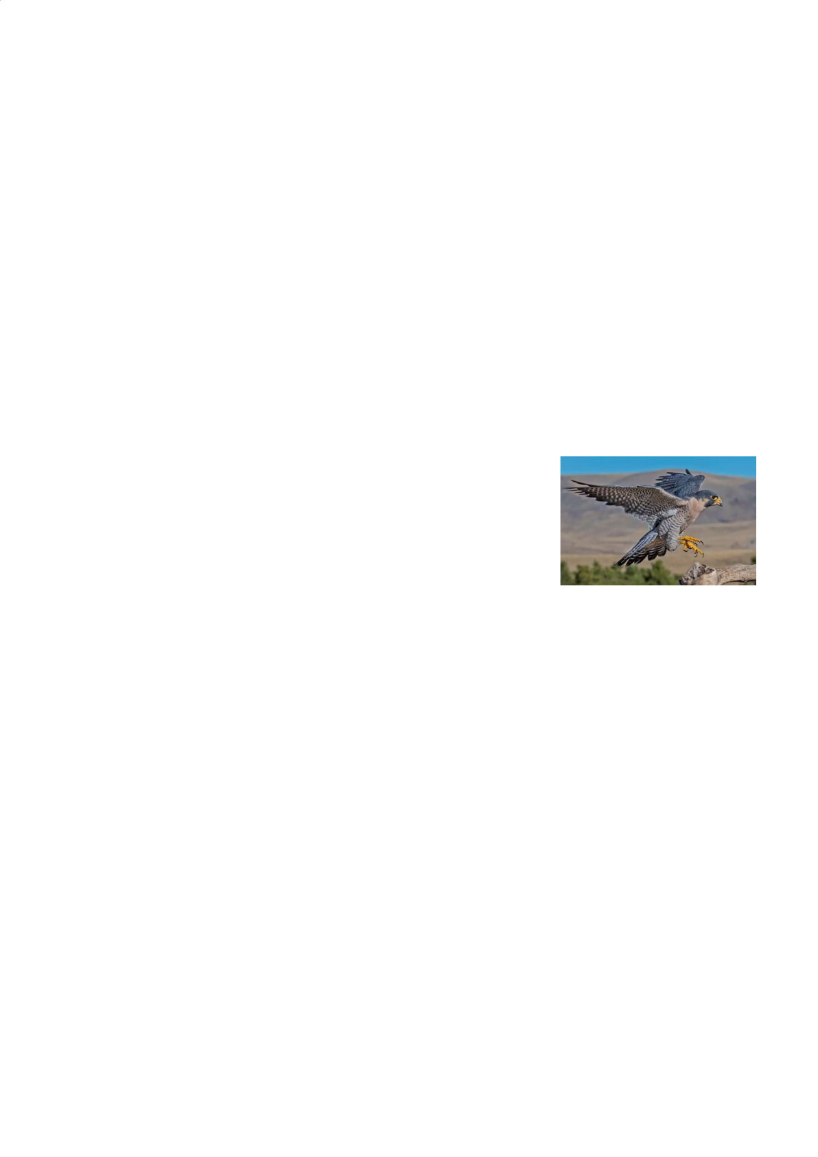 o falcão-peregrino pode alcançar cerca de 320 km/h durante um mergulho para caçar. A espécie