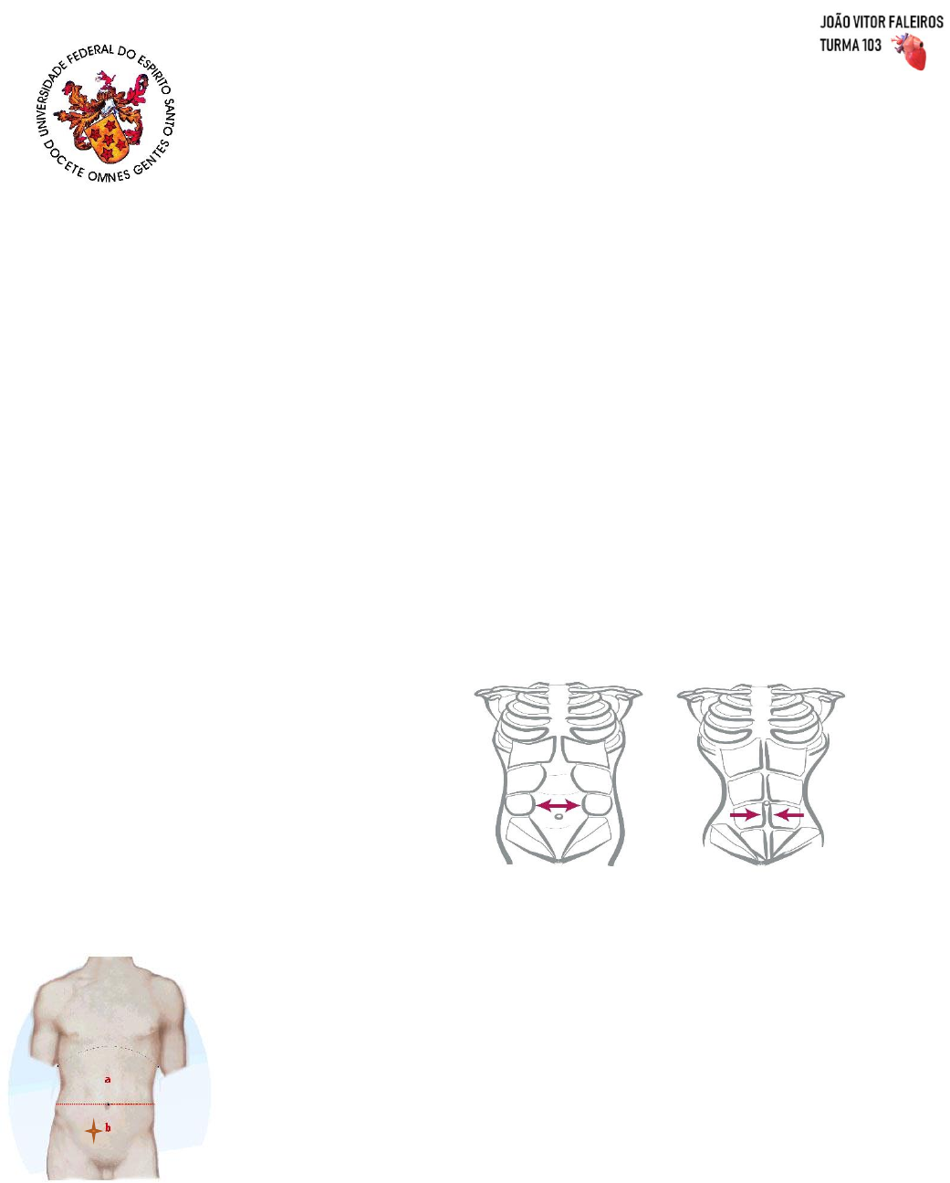 UNIVERSIDADE FEDERAL DO ESPÍRITO SANTO DEPARTAMENTO DE MORFOLOGIA – SETOR DE ANATOMIA CURSO DE MEDICINA NOME: _______________________________________________________ TURMA: _________________________________ 1. O plano transpilórico é um plano de delimitação utilizado para estudo e avaliação do abdome, situado a meio caminho entre a face superior do manúbrio do esterno e a sínfise púbica. Sobre ele, responda: a) A qual nível vertebral fica esse plano? ________________________________________________________________________________________________ b) Cite outras 2 estruturas pelas quais esse plano passa. ________________________________________________________________________________________________ 2. Cite as regiões centrais do abdome, delimitadas pelas linhas medioclaviculares, de superior para inferior. ________________________________________________________________________________________________ 3. a) Qual o processo esquematizado? _____________________________________________ b) De que ele decorre? _________________________________________ 4. Escreva a estratigrafia desde a pele até o peritônio visceral no ponto marcado em “b”. __________________________________________________________ __________________________________________________________ __________________________________________________________ __________________________________________________________ 5. Indique quais músculos abdominais se fixam na aponeurose toracolombar. _______________________________________________________________________________________ 6. Dê a inervação do músculo oblíquo externo do abdome. _______________________________________________________________________________________ 7. Aponte as estruturas marcadas com os alfinetes. PRETO -> ______________________________________ AZUL -> _________________________________________ LARANJA -> ____________________________________ VERDE -> ______________________________________ 8. Na parede abdominal anterolateral, há uma grande anastomose venosa na região superficial, formando a veia toracoepigástrica. a) Quais veias se anastomosam? _______________________________________________ b) Essas veias são tributárias de que veias? _______________________________________________ c) A secção da prega umbilical lateral resulta em sangramento devido ao corte de quais vasos? ________________________________________________ 9. Observe a “peça”. a) Quais as estruturas anatômicas apontadas? ________________________________________ ________________________________________ ________________________________________ b) Qual o conteúdo das prega umbilicais mediais? Esse conteúdo é remanescente de que? ________________________________________ ________________________________________ ________________________________________ c) Cite a parede posterior, anterior e teto do anel inguinal superficial? ________________________________________ ________________________________________ ________________________________________ 10. Sobre o omento, responda: a) Cite os ligamentos do omento menor. ____________________________________________________________________________________ b) O ligamento do omento menor que se situa na parte proximal do duodeno abriga que conteúdo? Seja espeífico. ____________________________________________________________________________________ c) Onde se localiza o saco menor (bolsa omental)? ____________________________________________________________________________________ d) O ligamento gastrocólico é uma parte do omento maior que liga a curvatura maior do estômago ao que? ____________________________________________________________________________________ 11. Sobre o esôfago: a) Cite as três constrições do esôfago. _______________________________________________________________________________________ _______________________________________________________________________________________ b) Qual a inervação parassimpática desse órgão e o que é Linha Z? _______________________________________________________________________________________ _______________________________________________________________________________________ 12. Observe a “peça”. a) Indique as estruturas alfinetadas. _____________________________________________ _____________________________________________ _____________________________________________ b) Qual a inervação simpática desse órgão e a vascularização arterial do alfinete cinza? _____________________________________________ _____________________________________________ c) Quais os ramos arteriais do tronco celíaco? De qual deles deriva a irrigação do alfinete verde? ____________________________________________________________________________________