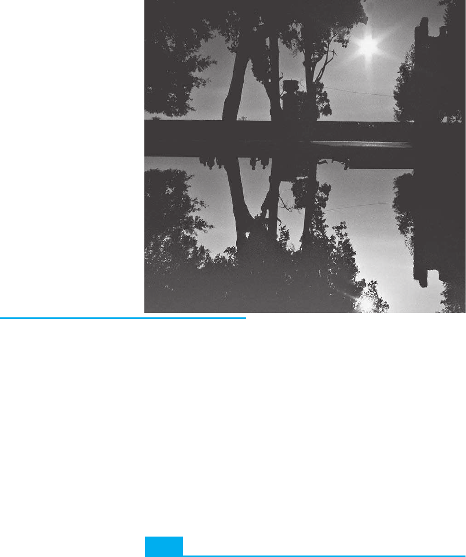 El reflejo en el agua tranquila, así como el que se forma en un espe- jo de vidrio, se pueden analizar con el modelo de rayos de la luz. ¿Esta fotografía está derecha? ¿Cómo se puede saber? ¿Cuáles son las pistas? Los diagramas de rayos, que el lector aprenderá a di- bujar en este capítulo, ayudan a obtener la respuesta. (La fotogra- fía está de cabeza). En este primer capítulo acerca de la luz y la óptica, se utiliza el modelo de rayos de la luz para comprender la formación de imá- genes en los espejos, tanto planos como curvos (esféricos), así como en las lentes, que son la parte esencial de los así llamados instru- mentos ópticos. 632 E l sentido de la vista es extremadamente importante para los seres humanos,pues proporciona una gran parte de la información acerca del mundo. ¿Cómoven los humanos? ¿Qué es eso llamado luz que entra en los ojos y provoca la sensación de visión? ¿Cómo se comporta la luz de modo que se puede ver todo lo que uno hace? En el capítulo 22 se explicó que la luz se considera una forma de ra- diación electromagnética. Ahora, en los próximos tres capítulos, se examinará en de- talle el tema de la luz. Uno ve un objeto en una de dos formas: 1. cuando el objeto es una fuente de luz, como una bombilla, una flama o una estrella, uno ve la luz emitida directamente por la fuente; o, más comúnmente, 2. uno ve un objeto por la luz que se refleja en él. En el último caso, la luz puede proceder del Sol, de las luces artificiales o de una fo- gata. No fue sino hasta la década de 1920 cuando se logró una comprensión de cómo los cuerpos emiten luz. La comprensión de cómo se refleja la luz de los objetos se lo- gró muchísimo antes, y esto se estudiará en la sección 23-2. El modelo de rayos de la luz Un gran cúmulo de evidencia sugiere que la luz viaja en líneas rectas en una amplia variedad de circunstancias. Por ejemplo, una fuente puntual de luz, como el Sol, for- ma distintas sombras, y el haz de una linterna parece estar en línea recta. De hecho, uno infiere las posiciones de los objetos en el ambiente al suponer que la luz se mueve desde el objeto hasta los ojos en trayectorias de líneas rectas. La orientación en el mundo físico se basa en esta suposición. Esta suposición razonable condujo al modelo de rayos de la luz. Este modelo supone que la luz viaja en trayectorias de líneas rectas llamadas rayos de luz. En realidad, un rayo es una idealización; tiene la intención de representar un haz de luz 23–1 La luz llega a los ojos 1. desde una fuente, 2. por reflexión. Rayos de luz CAPÍTULO23 Luz: óptica geométrica www.elsolucionario.org SECCIÓN 23–2 633 extremadamente estrecho. Cuando uno ve un objeto, de acuerdo con el modelo de ra- yos, la luz alcanza los ojos desde cada punto sobre el objeto. Aunque los rayos de luz abandonan cada punto en muchas direcciones diferentes, normalmente sólo un pe- queño cúmulo de esos rayos entran a la pupila del ojo de un observador, como se muestra en la figura 23-1. Si la cabeza de la persona se mueve hacia un lado, desde cada punto entrará al ojo un cúmulo de rayos diferente. En el capítulo 22 se vio que la luz se considera una onda electromagnética. Aunque el modelo de rayos de la luz no trata con este aspecto (en el capítulo 24 se analizará la naturaleza ondulatoria de la luz), sí resulta adecuado para describir mu- chos aspectos de la luz tales como la reflexión, la refracción y la formación de imá- genes en los espejos y en las lentes. Como tales explicaciones consideran rayos en línea recta en varios ángulos, a esta materia se le conoce como óptica geométrica. Reflexión; formación de una imagen por medio de un espejo plano Cuando la luz entra en contacto con la superficie de un objeto, parte de la luz se re- fleja. El resto puede ser absorbido por el objeto (y transformarse en energía térmi- ca) o, si el objeto es transparente como el vidrio o el agua, parte de la luz se puede transmitir a través de él. Para un objeto muy brillante, como un espejo plateado, ca- si el 95% de la luz se refleja. 23–2 Este cúmulo entra al ojo FIGURA 23–1 Los rayos de luz provienen de cada punto individual de un objeto. Se muestra cómo un pequeño cúmulo de rayos que salen de un punto entran a los ojos de una persona. Cuando un estrecho haz de luz entra en contacto con una superficie plana (figu- ra 23-2), se define el ángulo de incidencia, Ui, como el ángulo que un rayo incidente forma con la normal (perpendicular) a la superficie, y el ángulo de reflexión, Ur, como el ángulo que el rayo reflejado forma con la normal. Se observa que los rayos inci- dente y reflejado se encuentran en el mismo plano con la normal a la superficie y que el ángulo de reflexión es igual al ángulo de incidencia, Ur 5 Ui. Ésta es la ley de reflexión y se bosqueja en la figura 23-2. Los antiguos griegos la co- nocían y uno la puede confirmar al hacer brillar un estrecho haz de una linterna en un espejo dentro de un cuarto oscuro. Cuando la luz incide sobre una superficie rugosa, incluso microscópicamente rugosa como esta página, se refleja en muchas direcciones (figura 23-3). A esto se le llama reflexión difusa. Sin embargo, se sostiene la ley de reflexión en cada pequeña sección de la superficie. En virtud de la reflexión difusa en todas direcciones, un ob- jeto ordinario puede ser visto desde muchos ángulos diferentes por la luz que se re- fleja en él. Cuando uno mueve la cabeza hacia un lado, diferentes rayos reflejados alcanzan los ojos desde cada punto del objeto (como esta página), figura 23-4a. Compare la reflexión difusa con la reflexión de un espejo, que se conoce como refle- xión especular. (“Speculum” en latín significa espejo.) Cuando un estrecho haz de luz brilla en un espejo, la luz no alcanzará los ojos de una persona a menos que los ojos estén ubicados justo en el lugar correcto donde la ley de reflexión se satisface, como se muestra 