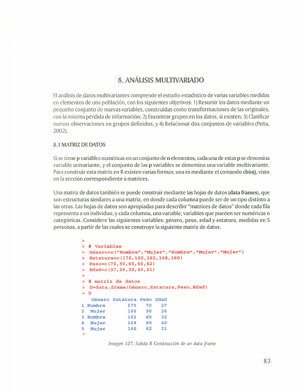 > D=data. frame (Género,Estatura,Peso,Edad)