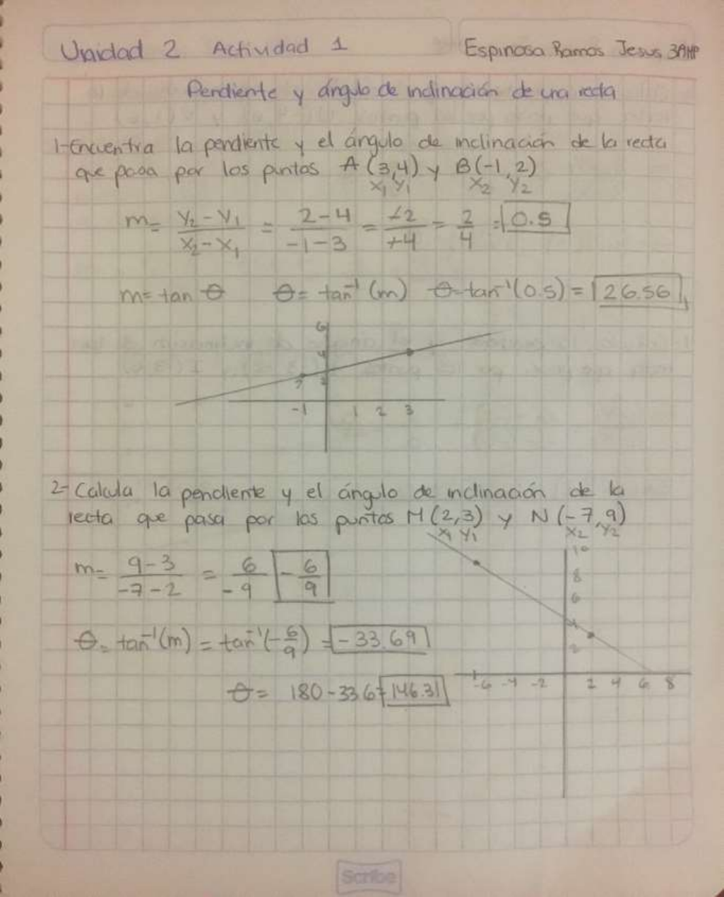 pendiente y angulo de inclinación de una recta