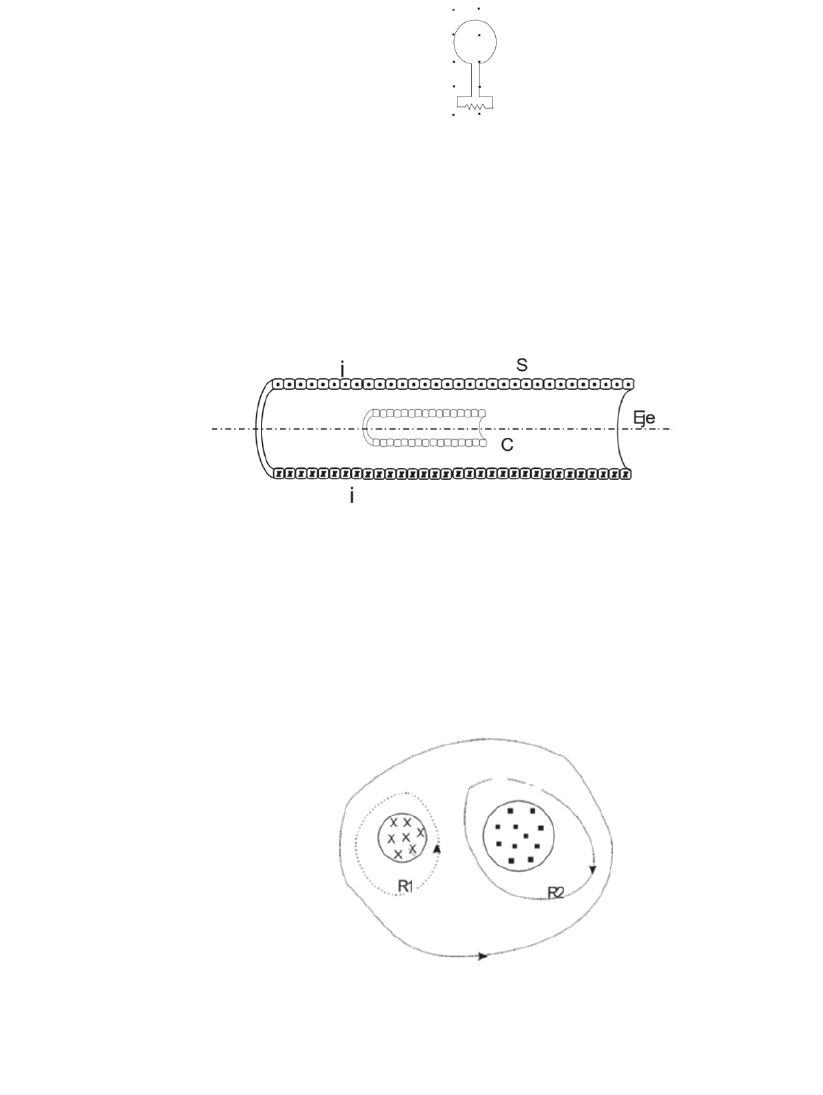 Física III PRÁCTICO DE AULA N° 7 LICENCIATURA EN CIENCIAS DE LA ATMÓSFERA Y METEOROLOGÍA 2022 Universidad Nacional de los Comechingones a) Ley de Faraday. Fuerza Electromotriz Inducida. Inductancia 1) En la figura el flujo magnético a través de la espira mostrada B aumenta gradualmente de acuerdo con la relación ΦB = 6t2 +7t, donde ΦB está en miliwebers y t está en segundos. a)¿Cuál es el valor absoluto de la fem inducida en la espira cuando t = 2.0 s? b) ¿Cuál es la dirección de la corriente que pasa por el resistor? 2) El solenoide largo S de la figura tiene 220 vueltas/cm, su diámetro es de 3.2 cm. En su centro colocamos una bobina C de 130 vueltas bien apretadas de diámetro 2.1 cm. Supongamos que la corriente en el solenoide cambia de acuerdo con i = 3.0 t +1.0 t2, donde i está en amperes y t en segundos. a) Grafique la fem inducida en la bobina desde t = 0 hasta t = 4 s. b) La resistencia de la bobina C es de 0.15 Ω ¿Cuál es la corriente en la bobina en t = 2?0 s? 3) La figura muestra dos regiones circulares R1 y R2 con radios r1 = 21.2 cm y r2 = 32.3 cm, respectivamente. En R1 existe un campo magnético uniforme de B1 = 48.6 mT hacia adentro de la página y en R2 existe un campo magnético uniforme de B2 = 77.2 mT hacia fuera de la página (haga caso omiso de cualquier efecto de borde de estos campos). Ambos campos están decreciendo a razón de 8.50 mT/s. Calcule la integral ∫ E.ds para cada una de las tres trayectorias indicadas. Física III PRÁCTICO DE AULA N° 7 LICENCIATURA EN CIENCIAS DE LA ATMÓSFERA Y METEOROLOGÍA 2022 Universidad Nacional de los Comechingones 4) La corriente en un circuito LR aumenta hasta 1/3 de su valor de régimen constante en 5 seg. ¿Cuál es la constante de tiempo inductiva? b) Inductancia; Circuitos LR; Oscilaciones electromagnéticas 5) Dos inductores L1 y L2 están conectados en paralelo y separados por una gran distancia a) Demuestre que la inductancia equivalente es ! "# = ! "! + ! "' b) ¿Por qué debe ser grande su separación para que se mantenga esta relación? 6) El número de conexiones (encadenamientos) de flujo en cierta bobina con una resistencia de 745 MΩ es 26.2 mWb cuando circula una corriente de 5.48 A. a) Calcule su inductancia. b) si de repente conectamos una batería de 6.0 V en ella, ¿cuánto tardará la corriente en aumentar de 0 a 2.53 A? 7) Un circuito oscilatorio LC está diseñado para operar con una corriente máxima de 31 mA. La inductancia de 42 mH permanece fija y se varía la frecuencia cambiando C. a) Si el capacitor tiene un voltaje máximo de 50 V,¿puede el circuito funcionar sin peligro con una frecuencia de 1.0 MHz? b) Cuál es la frecuencia máxima de operación segura? c) ¿Cuál es la capacitancia mínima? 8) Un circuito de malla simple consta de un resistor de 7.22 Ω, de un inductor de 12.3 H y de un capacitor de 3.18 μF. Al inicio este último tiene una carga de 6.31 μC y la corriente es cero. Calcule la carga en el capacitor al cabo de N ciclos y para N = 5, 10 y 100. 9) ¿Qué resistencia debería conectarse a un inductor L =220 mH y a un capacitor C = 12 μF en serie, a fin de que la carga máxima en el capacitor disminuya al 99 % de su valor inicial en 50 ciclos?