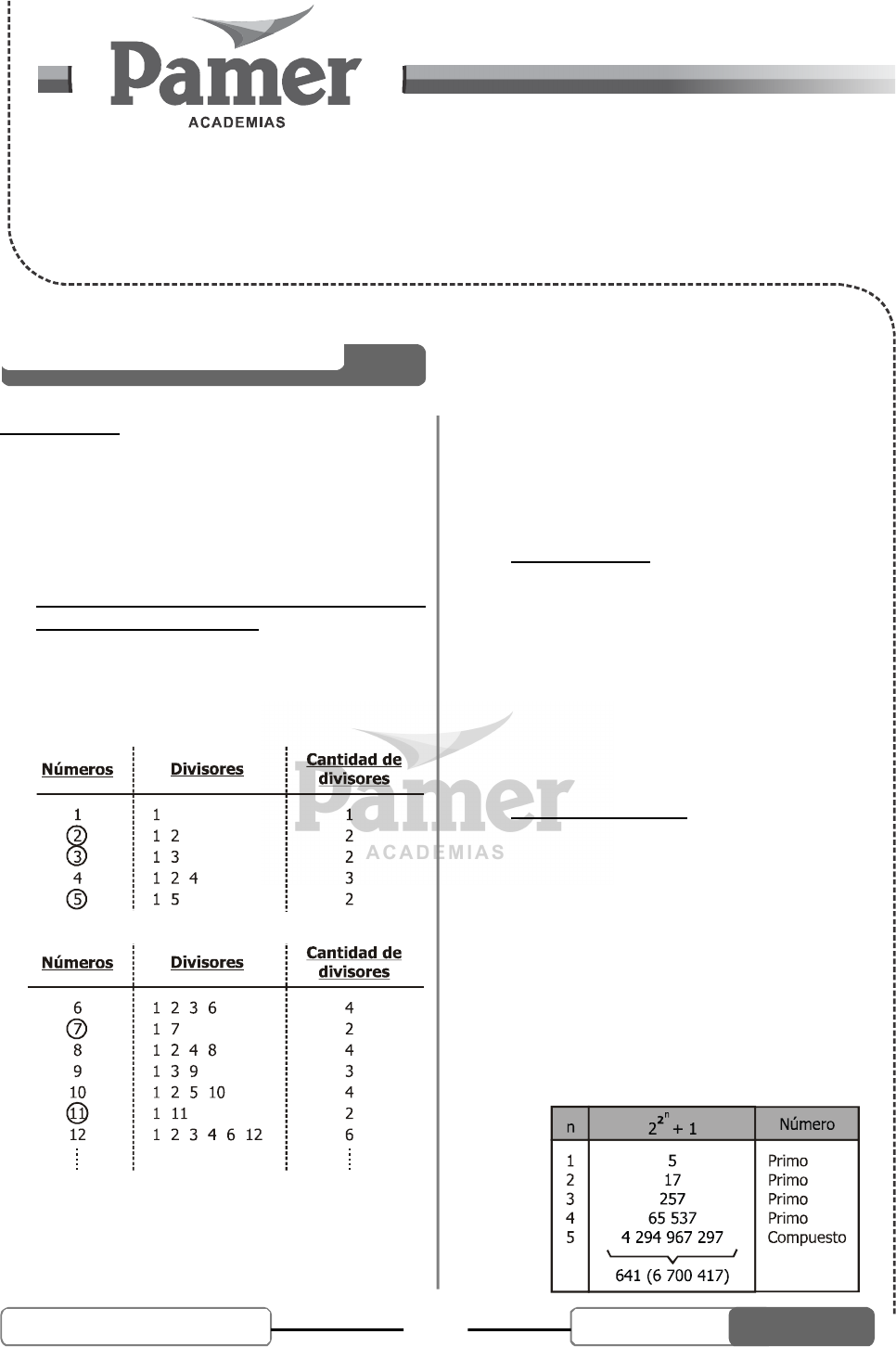 – 2, 3, 5, 7, 11 ... tienen solo 2 divisores.