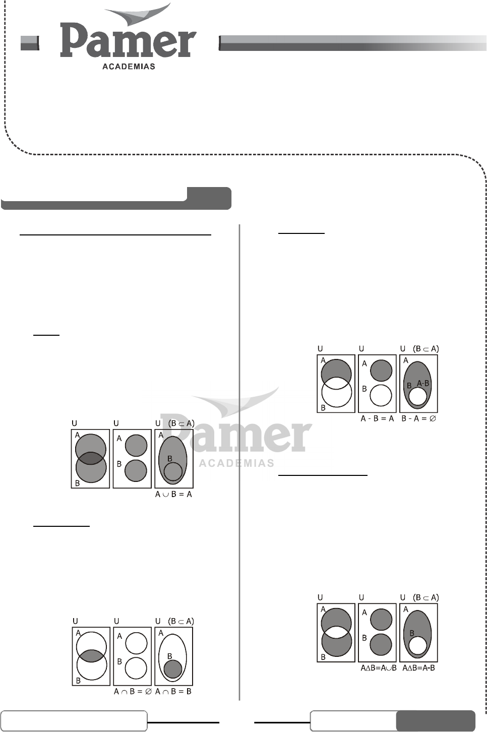 Recordar: A \ B = A – B
