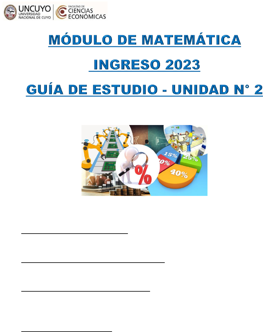 Dirección del Módulo de Matemática: Prof. Sara Pettina Coordinación General del Módulo de Matemática: Prof. Marianela Bello Co-Coordinación del Módulo de Matemática: Prof. Germán Diez Dictado de clases presenciales: Prof. Matías Albornoz Prof. Gabriel Aluz Prof. Sofía Amorós Prof. Melani Antolinez Prof. Giuliana Calani Prof. Carolina Camargo Prof. Sebastián Egea Prof. Carolina Gonzalez Prof. Lorena Granero Prof. Alejandra Larralde Prof. Agostina Ligutti Prof. Carolina Maza Prof. Paula Sosa Prof. Matías Vidoret 2 Página Símbolos matemáticos 3 UNIDAD N° 2: Razones y proporciones. Porcentajes TEMA N° 1: Razones 4 1.- Razón aritmética 4 2.- Razón geométrica 5 TEMA N° 2: Proporciones 6 1.- Teorema Fundamental de las Proporciones (T.F.P.) 8 2.- Clasificación de las proporciones 9 3.- Propiedades de las proporciones 9 4.- Series de razones 11 5.- Proporcionalidad directa e inversa 14 TEMA N° 3: Regla de tres 23 1.- Regla de tres simple 24 1.1.- Regla de tres simple directa 24 1.2.- Regla de tres simple inversa 26 2.- Regla de tres compuesta 27 TEMA N° 4: Sistemas de unidades de medidas 34 1.- Magnitudes 34 2.- Sistema Métrico Legal Argentino 34 2.1.- Unidades de base 35 2.2.- Unidades derivadas 35 3.- Otras unidades de medida que no se encuentran en el SI 36 4.- Normas relativas a los símbolos 37 5.- Múltiplos y submúltiplos de las unidades de medidas 38 5.1.- Unidades de longitud 38 5.2.- Unidades de masa 39 5.3.- Unidades de capacidad 40 5.4.- Unidades de superficie 41 5.5.- Unidades de volumen 41 5.6.- Relaciones entre capacidad, volumen y masa del agua 42 TEMA N° 5: Porcentaje (%) y tanto por mil (‰) 46 Bibliografía 50 3 ℕ: Números naturales (a;b): Intervalo abierto ℤ: Números enteros (a;b]: Intervalo semiabierto por la izquierda ℚ: Números racionales [a;b): Intervalo semiabierto por la derecha 𝕀: Números irracionales [a;b]: Intervalo cerrado ℝ: Números reales ϕ: Número irracional fi = 1+√5 2 : Existe π: número irracional pi (3,1415…) ∄: No existe e: Número e o constante de Euler (2,7182…) : Para todo 𝑓: 𝐴 → 𝐵: función de A en B : Conjunto vacío 𝑓−1: Función inversa ∪: Unión ≅ : Aproximadamente igual : Intersección f o g: Composición de las funciones f y g. : Pertenece f(x): función de x : No pertenece Dom f: Dominio de la función f ∞: Infinito Rec f: Recorrido de la función f −∞: Menos infinito % : Porcentaje a = b: a igual a b : Incluido a ≠ b: a distinto de b ⊈: No incluido a > b: a mayor a b ∆: Discriminante a < b: a menor a b |a|: Valor absoluto de a, para a ℝ a ≥ b: a mayor o igual que b ∆= | a b c d | = ad − bc: determinante a ≤ b: a menor o igual que b :: estos cuatro puntos se usan en las proporciones y se lee “como” Nota: Agrega los que vayas utilizando y no aparezcan en la lista. 4 TEMA N° 1: RAZONES La razón es un objeto matemático que se utiliza para comparar dos cantidades cualesquiera para establecer una característica que las relacione, en particular, ambas cantidades las podemos comparar principalmente de dos formas; a través de su diferencia (razón aritmética) y a través de su cociente (razón geométrica). 1.- RAZÓN ARITMÉTICA La razón aritmética es una forma de comparar dos cantidades en las cuales se considera cuánto excede una de la otra, es decir, se encuentra su diferencia. Este tipo de razón se puede escribir de dos modos; separando ambas cantidades a comparar con un signo (-) o con un punto (.). De esta forma la razón aritmética entre un par de números a y b, es: a – b ó a . b; y se lee a es a b El primer término de una razón aritmética se denomina antecedente, mientras que el segundo consecuente. Por ejemplo: Si una empresa dispone de $20.000 a repartir a fin de mes entre dos empleados según el logro de objetivos alcanzados, y uno de los empleados no alcanzó los objetivos propuestos por lo que recibe $6.000 menos que al otro empleado que sí alcanzó todos los objetivos ¿Cuánto le corresponde a cada uno? Respuesta: Para resolver problemas de este tipo existe un método sencillo de utilizar. Consiste en dividir el intervalo en dos partes iguales (en este caso $20.000:2=$10.000), e incorporar a cada parte la mitad de la diferencia que existe entre el antecedente y el consecuente de la razón (lo que recibe el empleado 1 – lo que recibe el empleado 2 = $6.000, dividido 2 es igual a $3.000). Luego se incorpora para cada parte en este caso $3.000, por lo tanto, se tiene que: Luego, resulta ser la cantidad que aparece en gris la que le corresponde al empleado que logró los objetivos ($13.000) y el resto para el que no los cumplió ($.7000). https://youtu.be/TRDul2IYBSo 5 2.- RAZÓN GEOMÉTRICA En general cuando se habla de razón se hace referencia a una razón geométrica. La razón geométrica de dos números es el cociente que resulta de dividir el primero (antecedente) por el segundo (consecuente). Es decir, se llama razón geométrica de dos cantidades cualesquiera a y b, a la comparación por cociente de ellas. La razón de a y b se puede escribir como, a:b ó 𝐚 𝐛 , donde 𝐚 ∈ ℝ y 𝐛 ≠ 𝟎, y se lee “a es a b”. Al primer elemento a se lo denomina antecedente y al segundo b es el consecuente. Toda razón tiene asociado un cociente llamado valor de la razón. Así, 𝐚 𝐛 = 𝒌, donde k es el valor de la razón y 𝐤 ∈ ℝ Por ejemplo: El ancho y el largo de un rectángulo son 20 cm y 40 cm respectivamente. Luego, la razón de la medida del ancho y el largo es: 𝑎𝑛𝑐ℎ𝑜 𝑙𝑎𝑟𝑔𝑜 = 20 𝑐𝑚 40 𝑐𝑚 = 1 2 Se puede concluir que la medida del largo es el doble de la medida del ancho, o bien, la medida del ancho es la mitad de la medida del largo. Si se analiza otro ejemplo: En su actividad normal el corazón de un adulto late alrededor de 70 veces por minuto, ¿sabías que los latidos del recién nacido alcanzan a 140 por minuto? 𝑛ú𝑚𝑒𝑟𝑜 𝑑𝑒 𝑙