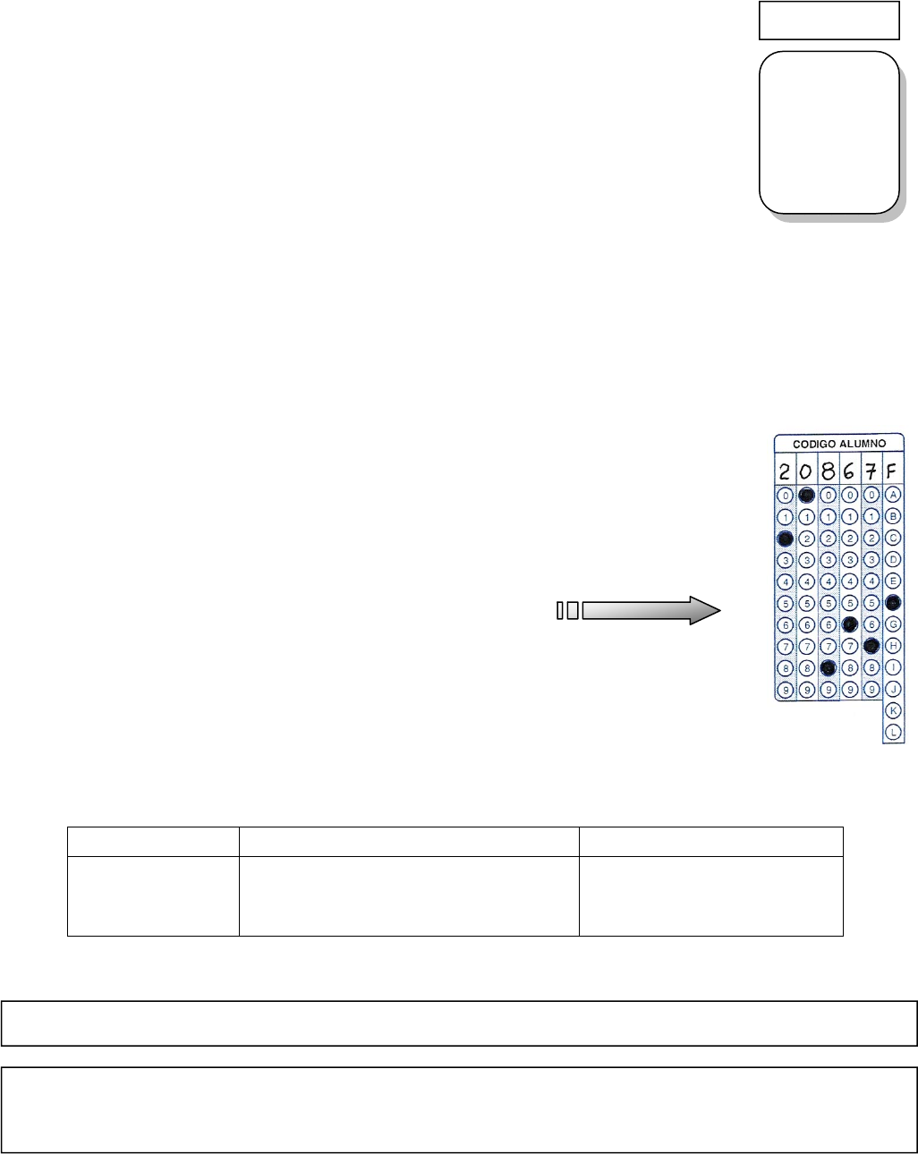 se le solicitan. Escriba y rellene los círculos correspondientes a su código