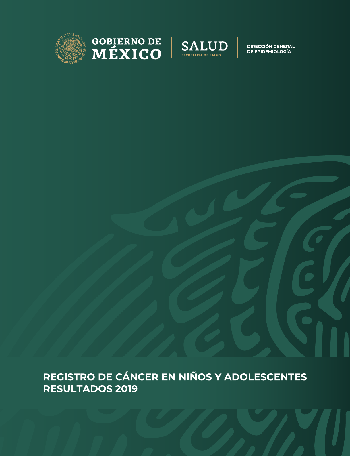REGISTRO DE CÁNCER EN NIÑOS Y ADOLESCENTES RESULTADOS 2019 REGISTRO DE CÁNCER EN NIÑOS Y ADOLESCENTES. RESULTADOS 2019. Secretaría de Salud Subsecretaría de Prevención y Promoción de la Salud Dirección General de Epidemiología www.gob.mx/salud Se autoriza la reproducción parcial o total del contenido de este documento, siempre y cuando se cite la fuente. Hecho en México DIRECTORIO SECRETARÍA DE SALUD DR. JORGE ALCOCER VARELA SECRETARIO DE SALUD DR. HUGO LÓPEZ-GATELL RAMÍREZ SUBSECRETARIO DE PREVENCIÓN Y PROMOCIÓN DE LA SALUD DR. PEDRO FLORES JIMÉNEZ TITULAR DE LA UNIDAD DE ADMINISTRACIÓN Y FINANZAS DIRECCIÓN GENERAL DE EPIDEMIOLOGÍA DR. JOSÉ LUIS ALOMÍA ZEGARRA DIRECTOR GENERAL DE EPIDEMIOLOGÍA DRA. GABRIELA DEL CARMEN NUCAMENDI CERVANTES DIRECTORA DE VIGILANCIA EPIDEMIOLÓGICA DE ENFERMEDADES NO TRANSMISIBLES DRA. SANTA ELIZABETH CEBALLOS LICEAGA DIRECTORA DE VIGILANCIA EPIDEMIOLÓGICA DE ENFERMEDADES TRANSMISIBLES DRA. ANA LUCÍA DE LA GARZA BARROSO DIRECTORA DE INVESTIGACIÓN OPERATIVA EPIDEMIOLÓGICA DR. CHRISTIAN ARTURO ZARAGOZA JIMÉNEZ DIRECTOR DE INFORMACIÓN EPIDEMIOLÓGICA BIOL. IRMA LÓPEZ MARTÍNEZ DIRECTORA DE DIAGNÓSTICO Y REFERENCIA M. EN G.S. LUCIA HERNÁNDEZ RIVAS DIRECTORA DE SERVICIOS Y APOYO TÉCNICO DIRECCIÓN DE VIGILANCIA EPIDEMIOLÓGICA DE ENFERMEDADES NO TRASMISIBLES DRA. GABRIELA DEL CARMEN NUCAMENDI CERVANTES DIRECTORA DE VIGILANCIA EPIDEMIOLÓGICA DE ENFERMEDADES NO TRANSMISIBLES DRA. MARÍA ISABEL OCOTZI ELÍAS JEFA DEL DEPARTAMENTO DE DESARROLLO OPERATIVO PARA LA VIGILANCIA EPIDEMIOLÓGICA DE ENFERMEDADES NO TRANSMISIBLES MTRO. RAFAEL CALVILLO MARTÍNEZ APOYO OPERATIVO AL REGISTRO DE CÁNCER EN NIÑOS Y ADOLESCENTES CENTRO NACIONAL PARA LA SALUD DE LA INFANCIA Y LA ADOLESCENCIA DR. JOSÉ LUIS DÍAZ ORTEGA DIRECTOR DEL PROGRAMA DE ATENCIÓN A LA SALUD DE LA IN- FANCIA Y LA ADOLESCENCIA MTRO. AGUSTÍN LÓPEZ GONZÁLEZ DIRECTOR DE ÁREA DRA. IRIS CHANTAL RODRÍGUEZ MEDINA SUBDIRECTORA DE ESTRATEGIAS Y DESARROLLO DE PROGRAMAS. ANÁLISIS DE INFORMACIÓN DRA. GABRIELA DEL CARMEN NUCAMENDI CERVANTES DIRECTORA DE VIGILANCIA EPIDEMIOLÓGICA DE ENFERMEDADES NO TRANSMISIBLES MTRO. RAFAEL CALVILLO MARTÍNEZ COORDINADOR OPERATIVO AL REGISTRO DE CÁNCER EN NIÑOS Y ADOLESCENTES REVISIÓN TÉCNICA DRA. ROCÍO GARCÍA RAMOS COORDINADORA ESTATAL DE CÁNCER INFANTIL. GUANAJUATO DRA. GLADIS M. RAMOS LÓPEZ. COORDINADORA ESTATAL DE CÁNCER INFANTIL. NUEVO LEÓN COLABORADORES ESTATALES AGUASCALIENTES RESPONSABLE DEL PROGRAMA DE ATENCIÓN A LA SALUD DE LA INFANCIA Y LA ADOLESCENCIA DRA. ADRIANA DIAZ FRANCO RESPONSABLE DEL PROGRAMA DE CÁNCER EN LA INFANCIA Y LA ADOLESCENCIA DRA. MARIE SALAS VALENZUELA RESPONSABLE DE CAPTURA LIC. JACQUELINE CANO VARGAS BAJA CALIFORNIA RESPONSABLE DEL PROGRAMA DE ATENCIÓN A LA SALUD DE LA INFANCIA Y LA ADOLESCENCIA MSP CLAUDIA ERIKA NEVAREZ NEVAREZ RESPONSABLE DEL PROGRAMA DE CÁNCER EN LA INFANCIA Y LA ADOLESCENCIA DR. JORGE CEVALLOS DE LA TORRE RESPONSABLE DE CAPTURA LIC. SANDRA ELIZABETH CORONEL GONZÁLEZ BAJA CALIFORNIA SUR RESPONSABLE DEL PROGRAMA DE ATENCIÓN A LA SALUD DE LA INFANCIA Y LA ADOLESCENCIA DR. RAMÓN LÓPEZ GARCÍA RESPONSABLE DEL PROGRAMA DE CÁNCER EN LA INFANCIA Y LA ADOLESCENCIA RESPONSABLE DE CAPTURA LTS. ANDREA TAMAYO RAMÍREZ CAMPECHE RESPONSABLE DEL PROGRAMA DE ATENCIÓN A LA SALUD DE LA INFANCIA Y LA ADOLESCENCIA RESPONSABLE DEL PROGRAMA DE CÁNCER EN LA INFANCIA Y LA ADOLESCENCIA DR. GIOVANI GALINDO AY FALCÓN RESPONSABLE DE CAPTURA CHIAPAS RESPONSABLE DEL PROGRAMA DE ATENCIÓN A LA SALUD DE LA INFANCIA Y LA ADOLESCENCIA MARÍA ELENA MONTESINOS ÁLVAREZ RESPONSABLE DEL PROGRAMA DE CÁNCER EN LA INFANCIA Y LA ADOLESCENCIA RESPONSABLE DE CAPTURA LUIS FERNANDO MENESES BARRIOS CHIHUAHUA RESPONSABLE DEL PROGRAMA DE ATENCIÓN A LA SALUD DE LA INFANCIA Y LA ADOLESCENCIA DRA. MARTHA FLORENCIA PASOS ROMERO RESPONSABLE DEL PROGRAMA DE CÁNCER EN LA INFANCIA Y LA ADOLESCENCIA LIC. GABRIELA ANDREA PRIETO VILLASANA RESPONSABLE DE CAPTURA LIC. GABRIELA ANDREA PRIETO VILLASANA CIUDAD DE MÉXICO RESPONSABLE DEL PROGRAMA DE ATENCIÓN A LA SALUD DE LA INFANCIA Y LA ADOLESCENCIA DRA. HERMINIA LÓPEZ MENDOZA RESPONSABLE DEL PROGRAMA DE CÁNCER EN LA INFANCIA Y LA ADOLESCENCIA DRA. ZAIRA ROSARIO HERNÁNDEZ RESPONSABLE DE CAPTURA SALVADOR ERNESTO ÁVILA MARTÍNEZ COAHUILA RESPONSABLE DEL PROGRAMA DE ATENCIÓN A LA SALUD DE LA INFANCIA Y LA ADOLESCENCIA JOSÉ SATURNINO MORIN PEÑA RESPONSABLE DEL PROGRAMA DE CÁNCER EN LA INFANCIA Y LA ADOLESCENCIA ESTHER MORALES DELGADO RESPONSABLE DE CAPTURA XOCHIPILI URBINA GONZÁLEZ COLIMA RESPONSABLE DEL PROGRAMA DE ATENCIÓN A LA SALUD DE LA INFANCIA Y LA ADOLESCENCIA DRA. DENYSE EUGENIA GARCÍA ENSCH RESPONSABLE DEL PROGRAMA DE CÁNCER EN LA INFANCIA Y LA ADOLESCENCIA DR. JORGE OMAR LARIOS GONZALEZ RESPONSABLE DE CAPTURA DURANGO RESPONSABLE DEL PROGRAMA DE ATENCIÓN A LA SALUD DE LA INFANCIA Y LA ADOLESCENCIA DRA. MARIA LUISA HERNÁNDEZ CONTRERAS RESPONSABLE DEL PROGRAMA DE CÁNCER EN LA INFANCIA Y LA ADOLESCENCIA DR. SILVANO RAMÍREZ SOTO RESPONSABLE DE CAPTURA SAMANTHA SARAHÍ TORRES MARTÍNEZ ESTADO DE MÉXICO RESPONSABLE DEL PROGRAMA DE ATENCIÓN A LA SALUD DE LA INFANCIA Y LA ADOLESCENCIA DR. JAIME EDWIN CONTRERAS SÁNCHEZ RESPONSABLE DEL PROGRAMA DE CÁNCER EN LA INFANCIA Y LA ADOLESCENCIA DR. ALFREDO LEAL GABILAN RESPONSABLE DE CAPTURA ANGÉLICA MARÍA OLIVARES CAMACHO GUANAJUATO RESPONSABLE DEL PROGRAMA DE ATENCIÓN A LA SALUD DE LA INFANCIA Y LA ADOLESCENCIA DRA. SARA GARCÍA SALINAS RESPONSABLE DEL PROGRAMA DE CÁNCER EN LA INFANCIA Y LA ADOLESCENCIA DRA. ROCÍO GARCÍA RAMOS RESPONSABLE DE CAPTURA DRA. ROCÍO GARCÍA RAMOS GUERRERO RESPONSABLE DEL PROGRAMA DE ATENCIÓN A LA SALUD DE LA INFANCIA Y LA ADOLESCENCIA DR. ROBERTO MEMIJE CALVO RESPONSABLE DEL PROGRAMA DE CÁNCER EN LA INFANCIA Y LA ADOLESCENCIA DR. JOSÉ MANUEL GONZÁLEZ FIERRO RESPONSABLE DE CAPTURA T.I. IRMA ROCIO BENÍTEZ SOTO HIDALGO RESPONSABLE DEL PROGRAMA DE ATENCIÓN A LA SALUD DE LA INFANCIA Y LA 
