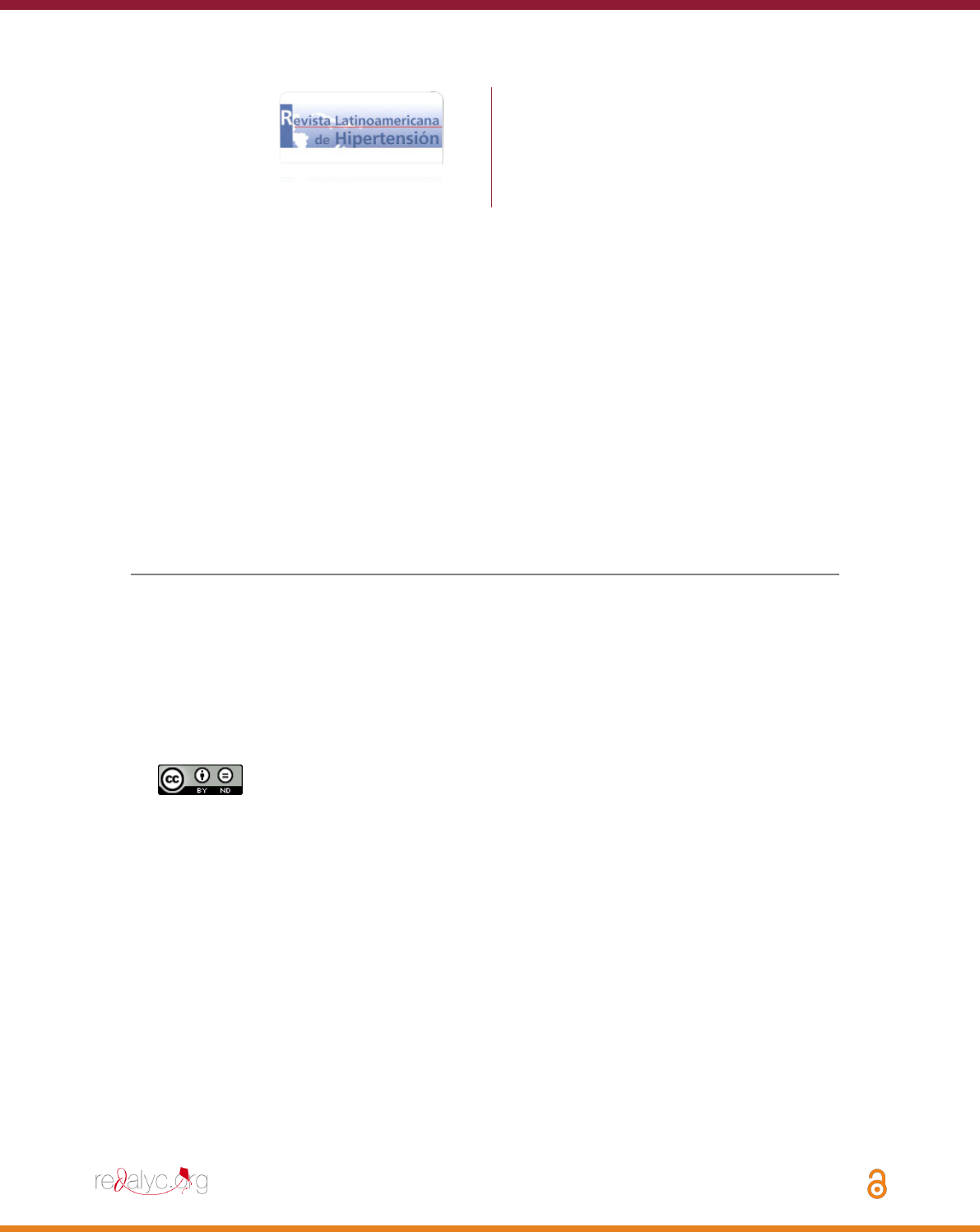 PDF generado a partir de XML-JATS4R por Redalyc Proyecto académico sin fines de lucro, desarrollado bajo la iniciativa de acceso abierto Revista Latinoamericana de Hipertensión ISSN: 1856-4550 ISSN: 2610-7996 latinoamericanadehipertension@gmail.com Sociedad Latinoamericana de Hipertensión República Bolivariana de Venezuela Factores de riesgo de la hipertensión arterial esencial y el riesgo cardiovascular Torres Pérez, Rómulo Francisco; Quinteros León, Mónica Susana; Pérez Rodríguez, María Renata; Molina Toca, Erik Paul; Ávila Orellana, Fabian Mateo; Molina Toca, Sofía Carolina; Ávila Orellana, Fabian Mateo; Molina Toca, Sofía Carolina; Torres Pérez, Angélica Estefanía; Ávila Orellana, Pablo Andrés Factores de riesgo de la hipertensión arterial esencial y el riesgo cardiovascular Revista Latinoamericana de Hipertensión, vol. 16, núm. 4, 2021 Sociedad Latinoamericana de Hipertensión, República Bolivariana de Venezuela Disponible en: https://www.redalyc.org/articulo.oa?id=170271859009 DOI: https://doi.org/10.5281/zenodo.5812331 Derechos reservados. Queda prohibida la reproducción total o parcial de todo el material contenido en la revista sin el consentimiento por escrito del editor en jefe. Esta obra está bajo una Licencia Creative Commons Atribución-SinDerivar 4.0 Internacional. https://www.redalyc.org/articulo.oa?id=170271859009 https://doi.org/10.5281/zenodo.5812331 https://creativecommons.org/licenses/by-nd/4.0/ https://creativecommons.org/licenses/by-nd/4.0/ Rómulo Francisco Torres Pérez, et al. Factores de riesgo de la hipertensión arterial esencial y el... PDF generado a partir de XML-JATS4R por Redalyc Proyecto académico sin fines de lucro, desarrollado bajo la iniciativa de acceso abierto 321 Artículos Factores de riesgo de la hipertensión arterial esencial y el riesgo cardiovascular Risk factors for essential blood hypertension and cardiovascular risk Rómulo Francisco Torres Pérez Universidad Católica de Cuenca, Ecuador Mónica Susana Quinteros León Universidad Católica de Cuenca sede Azogues, Ecuador María Renata Pérez Rodríguez Médico general, Cuenca/ Universidad Católica de Cuenca, Ecuador Erik Paul Molina Toca Médico general, Quito / Universidad de las Américas UDLA, Ecuador Fabian Mateo Ávila Orellana Médico general, Azogues/ Universidad Católica de Cuenca sede Azogues, Ecuador Sofía Carolina Molina Toca Médico general, Quito / Universidad de las Américas UDLA, Ecuador Fabian Mateo Ávila Orellana Médico general, Azogues/ Universidad Católica de Cuenca sede Azogues, Ecuador Sofía Carolina Molina Toca Médica General, Quito/ Universidad Central del Ecuador. Máster universitario en alta dirección, especialidad en gerencia de servicios de la salud. Universitá Degli Studi Di Bari Aldo Moro. Médica posgradista de Dermatología- Universidad de Buenos Aires-Argentina., Ecuador Angélica Estefanía Torres Pérez Médico general, Azogues/ Universidad Católica de Cuenca sede Azogues Médica posgradista de Neurología-universidad de Buenos Aires - Argentina., Ecuador Pablo Andrés Ávila Orellana Médico general, Cuenca, Universidad católica de Cuenca. Interno de medicina en el IESS de los Ceibos, Guayaquil., Ecuador DOI: https://doi.org/10.5281/zenodo.5812331 Redalyc: https://www.redalyc.org/articulo.oa? id=170271859009 Recepción: 21 Junio 2021 Aprobación: 15 Agosto 2021 Publicación: 12 Septiembre 2021 Resumen: https://doi.org/10.5281/zenodo.5812331 https://www.redalyc.org/articulo.oa?id=170271859009 https://www.redalyc.org/articulo.oa?id=170271859009 Revista Latinoamericana de Hipertensión, 2021, vol. 16, núm. 4, ISSN: 1856-4550 / 2610-7996 PDF generado a partir de XML-JATS4R por Redalyc Proyecto académico sin fines de lucro, desarrollado bajo la iniciativa de acceso abierto 322 La hipertensión arterial (HTA) es una patología cardiovascular con una alta prevalencia global, la cual representa el antecedente principal en pacientes con cardiopatía coronaria, por lo cual su diagnóstico y tratamiento debe ser de conocimiento general para el médico tanto en la emergencia como de atención primaria, por lo cual se realizó la presente revisión bibliográfica con la finalidad de resumir los últimos hallazgos en relación a la fisiopatología de la HTA, diagnóstico y últimas pautas de manejo. Palabras clave: Hipertensión arterial, Coronariopatías, Factores de riesgo cardiovascular. Abstract: Hypertension (HTN) is a cardiovascular disease with a high global prevalence, which represents the main antecedent in patients with coronary heart disease, for which its diagnosis and treatment should be general knowledge for the doctor both in the emergency and care is is why the present bibliographic review was carried out in order to summarize the latest findings in relation to the pathophysiology of HT, diagnosis and latest management guidelines. Keywords: Hypertension, Coronary heart disease, Cardiovascular risk factor. INTRODUCCIÓN La hipertensión arterial (HTA) está considerada como una enfermedad crónica y prevalente de gran transición epidemiológica. Es la patología que con mayor frecuencia genera prescripciones de medicamentos crónicos; puesto que, a pesar de los avances en su manejo, aproximadamente la mitad de las personas hipertensas no tienen un control adecuado de la presión arterial; esto, de manera general entre los adultos, sin considerar la enfermedad hipertensiva del embarazo. La hipertensión arterial, produce tasas elevadas de mortalidad en países con transición epidemiológica, demuestra un diagnostico principal y común dentro de la enfermedad coronaria, así como también tiene su incidencia en el accidente cerebrovascular, que es otra causa común de decesos y en otras que impactan la calidad de vida de las personas y encarecen los sistemas de salud, tales como: insuficiencia cardiaca congestiva, enfermedad renal en etapa terminal y enfermedad vascular periférica. Según la American Heart A