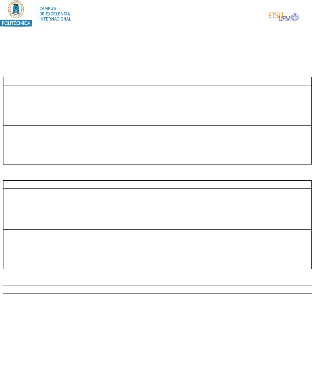 GRADO EN INGENIERÍA BIOMÉDICA (CÓDIGO 09IB) PRIMER CURSO CÓDIGO ASIGNATURAS CRÉDITOS TIPO SEMESTRE 95000101 MATEMÁTICAS I 6 Bás 1º 95000102 FÍSICA 6 Bás 1º 95000103 QUÍMICA 6 Bás 1º 95000104 BIOLOGÍA 6 Bás 1º 95000109 FUNDAMENTOS DE PROGRAMACIÓN 6 Bás 1º 95000105 ESTADÍSTICA 6 Bás 2º 95000106 MATEMÁTICAS II 6 Bás 2º 95000107 BIOQUÍMICA ESTRUCTURAL 6 Obl 2º 95000108 BIOLOGÍA CELULAR Y TISULAR 6 Obl 2º 95000110 FUNDAMENTOS DE BIOMECÁNICA 6 Obl 2º SEGUNDO CURSO CÓDIGO ASIGNATURAS CRÉDITOS TIPO SEMESTRE 95000112 ANÁLISIS INSTRUMENTAL 6 Obl 3º 95000118 ECONOMÍA Y GESTIÓN DE EMPRESAS 6 Obl 3º 95000114 MATEMÁTICAS III 6 Obl 3º 95000115 FÍSICA II 6 Bás 3º 95000116 FUNDAMENTOS DE ELECTRÓNICA 6 Bás 3º 95000111 USO PROFESIONAL DE LA LENGUA INGLESA 6 Bás 4º 95000113 BIOMECÁNICA DE MEDIOS CONTINUOS 6 Obl 4º 95000117 FISIOLOGÍA DE SISTEMAS 6 Obl 4º 95000119 SISTEMAS Y SEÑALES 6 Obl 4º 95000120 SISTEMAS ELECTRÓNICOS 6 Obl 4º TERCER CURSO CÓDIGO ASIGNATURAS CRÉDITOS TIPO SEMESTRE 95000121 SEÑALES BIOMÉDICAS 6 Obl 5º 95000122 FISIOPATOLOGÍA HUMANA 6 Obl 5º 95000123 MODELOS NUMÉRICOS EN BIOMEDICINA 6 Obl 5º 95000128 REDES DE COMUNICACIONES 6 Obl 5º 95000130 ALGORITMOS Y ESTRUCTURAS DE DATOS 6 Obl 5º 95000124 BASES DE DATOS 6 Obl 6º 95000125 BIOINSTRUMENTACIÓN 6 Obl 6º 95000126 IMÁGENES BIOMÉDICAS 6 Obl 6º 95000127 BIOMATERIALES 6 Obl 6º 95000129 ARQUITECTURA DE COMPUTADORES Y SSOO 6 Obl 6º CUARTO CURSO ITINERARIO 1 EN BIOINGENIERÍA (Dispositivos Biomédicos, Biomateriales y Biomecánica) CÓDIGO ASIGNATURAS CRÉDITOS TIPO SEMESTRE 95000150 LABORATORIO DE IMÁGENES BIOMÉDICAS 4 Obl 7º 95000151 INGENIERÍA CLÍNICA Y DE GESTIÓN 4 Obl 7º 95000152 MODELADO Y SIMULACIÓN DINÁMICA APLICADA A LA BIOMEDICINA 4 Obl 7º 95000153 LABORATORIO DE SEÑALES BIOMÉDICAS 4 Obl 7º 95000154 LABORATORIO DE BIOINSTRUMENTACIÓN 4 Obl 7º 95000155 INGENIERÍA DE TEJIDOS 4 Obl 7º 95000156 LABORATORIO DE MATERIALES BIOLÓGICOS Y BIOMATERIALES 4 Obl 8º 95000157 BIOSENSORES 4 Obl 8º 95000158 DESARROLLO DE DISPOSITIVOS MÉDICOS 4 Opt 8º 95000159 LABORATORIO DE BIOMECÁNICA 4 Opt 8º * OPTATIVAS 8 Opt 8º 95000100 TRABAJO FIN DE GRADO 12 Obl 7º/8º *OPTATIVAS 2 asignaturas de 4 ECTS del itinerario 2 del Grado en Ingeniería Biomédica o del Grado de Biotecnología, o prácticas externas o créditos reconocidos (hasta un máximo de 6) por la realización de actividades de representación, culturales, deportivas, solidarias y de cooperación. ITINERARIO 2 EN INFORMÁTICA MÉDICA CÓDIGO ASIGNATURAS CRÉDITOS TIPO SEMESTRE 95000160 HISTORIAS CLÍNICAS, TERMINOLOGÍAS Y ESTÁNDARES 4 Obl 7º 95000161 SISTEMAS DE INFORMACIÓN BIOMÉDICA 4 Obl 7º 95000151 INGENIERÍA CLÍNICA Y DE GESTIÓN 4 Obl 7º 95000162 SISTEMAS DE AYUDA A LA DECISIÓN MÉDICA 4 Obl 7º 95000163 BIOINFORMÁTICA 4 Obl 7º 95000164 MINERÍA DE DATOS EN BIOMEDICINA 4 Obl 8º 95000165 NLP Y RECUPERACIÓN DE INFORMACIÓN 4 Obl 8º 95000166 TECNOLOGÍAS WEB EN BIOMEDICINA 4 Obl 8º 95000167 BASES DE DATOS Y SISTEMAS DE SALUD PÚBLICA 4 Obl 8º 95000168 E-HEALTH 4 Obl 8º * OPTATIVAS 8 Opt 7º/8º 95000100 TRABAJO FIN DE GRADO 12 Obl 7º/8º *OPTATIVAS 2 asignaturas de 4 ECTS del itinerario 1 del Grado en Ingeniería Biomédica o del Grado de Biotecnología, o prácticas externas o créditos reconocidos (hasta un máximo de 6) por la realización de actividades de representación, culturales, deportivas, solidarias y de cooperación. ITINERARIO 3 EN TELEMEDICINA CÓDIGO ASIGNATURAS CRÉDITOS TIPO SEMESTRE 95000160 HISTORIAS CLÍNICAS, TERMINOLOGÍAS Y ESTANDARES 4 Obl 7º 95000161 SISTEMAS DE INFORMACIÓN BIOMÉDICA 4 Obl 7º 95000152 MODELADO Y SIMULACIÓN DINÁMICA APLICADA A LA BIOMEDICINA 4 Obl 7º 95000169 TELEMEDICINA 4 Obl 7º 95000170 REDES Y SERVICIOS 4 Obl 7º 95000171 TRATAMIENTO DIGITAL DE IMÁGENES BIOMÉDICAS 4 Obl 7º 95000151 INGENIERÍA CLÍNICA Y DE GESTIÓN 4 Obl 8º 95000172 INTERFACES HOMBRE-MÁQUINA 4 Obl 8º 95000173 LABORATORIO DE TELEMEDICINA 4 Obl 8º 95000162 SISTEMAS DE AYUDA A LA DECISIÓN 4 Obl 8º 95000100 TRABAJO FIN DE GRADO 12 Obl 7º/8º *OPTATIVAS DE ITINERARIO 95000174 TECNOLOGÍAS SISTEMAS PERSONALES SANITARIOS 4 Opt 8º 95000175 TECNOLOGÍAS ASISTIVAS 4 Opt 8º 95000150 LABORATORIO DE IMÁGENES BIOMÉDICAS 4 Opt 8º 95000176 INGENIERÍA NEUROSENSORIAL 4 Opt 8º *OPTATIVAS 2 asignaturas de 4 ECTS o prácticas externas o créditos reconocidos (hasta un máximo de 6) por la realización de actividades de representación, culturales, deportivas, solidarias y de cooperación. ITINERARIO 4 EN IMÁGENES BIOMÉDICAS CÓDIGO ASIGNATURAS CRÉDITOS TIPO SEMESTRE 95000160 HISTORIAS CLÍNICAS, TERMINOLOGÍAS Y ESTANDARES 4 Obl 7º 95000161 SISTEMAS DE INFORMACIÓN BIOMÉDICA 4 Obl 7º 95000152 MODELADO Y SIMULACIÓN DINÁMICA APLICADA A LA BIOMEDECINA 4 Obl 7º 95000169 TELEMEDICINA 4 Obl 7º 95000177 IMÁGENES BIOMÉDICAS AVANZADAS-I 4 Obl 7º 95000171 TRATAMIENTO DIGITAL DE IMÁGENES BIOMÉDICAS 4 Obl 7º 95000151 INGENIERÍA CLÍNICA Y DE GESTIÓN 4 Obl 8º 95000150 LABORATORIO DE IMÁGENES BIOMÉDICAS 4 Obl 8º 95000178 SIMULACIÓN Y PLANIFICACIÓN QUIRÚRGICA 4 Obl 8º 95000179 IMÁGENES BIOMÉDICAS AVANZADAS-II 4 Obl 8º 95000100 TRABAJO FIN DE GRADO 12 Obl 7º/8º *OPTATIVAS DE ITINERARIO 95000180 BIOFOTÓNICA 4 Opt 8º 95000173 LABORATORIO DE TELEMEDICINA 4 Opt 8º 95000176 INGENIERÍA NEUROSENSORIAL 4 Opt 8º *OPTATIVAS 2 asignaturas de 4 ECTS o prácticas externas o créditos reconocidos (hasta un máximo de 6) por la realización de actividades de representación, culturales, deportivas, solidarias y de cooperación. TIPO de asignaturas: Básicas, Obligatorias y Optativas UNIVERSIDAD POLITÉCNICA DE MADRID Vicerrectorado de Alumnos Sección de Admisión e Información Paseo Juan XXIII, nº 11 28040 MADRID Teléfonos: 91 336 62 30 / 62 26 / 62 18 Web: www.upm.es