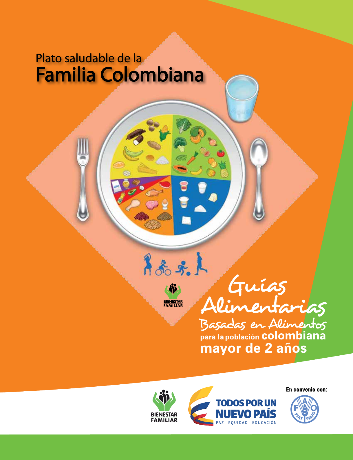 Manual para facilitadores Manual para facilitadores para la población colombiana Guías Alimentarias mayor de 2 años Basadas en Alimentos 32 322 2 Manual para facilitadores Guías Alimentarias Basadas en Alimentos para la población colombiana mayor de 2 años Instituto Colombiano de Bienestar Familiar ICBF Cristina Plazas Michelsen Directora General Ana María Ángel Correa Directora de Nutrición Equipo Técnico Lina María López Rodríguez Zulma Arias Hernández Coordinación editorial Ángela María Calderón Fernández Jefe Oficina Asesora de Comunicaciones Grupo de Imagen Corporativa Organización de las Naciones Unidas para la Alimentación y la Agricultura FAO Rafael Zavala Gómez del Campo Representante - FAO Colombia Ivan Felipe León Oficial Nacional de Programas Carmen Dárdano Oficial Técnico Nutrición - FAO Roma Santiago Mazo Consultor experto en Nutrición - FAO Equipo Técnico Dora Hilda Aya Baquero Edwin Arley Rivera Torres Veronika Molina - Consultora internacional FAO Edison Torrado León Fotografías ISBN: 978-92-5-308685-6 Diseño y diagramación Taller Creativo de Aleida Sánchez B. Ltda Bibiana Alturo M. Zamara Zambrano S. Jorge Camacho V. Adaptación comunicativa Lucho Durán Ilustraciones ISBN: 978-958-623-175-6 Primera edición Noviembre 2015 Esta publicación es producto del Convenio Nº1258/13 suscrito entre en Instituto Colombiano de Bienestar Familiar, ICBF, y la Organización de las Naciones Unidas para la Agricultura y la Alimentación, FAO. Los contenidos son responsabilidad de las entidades participantes. Prohibida su reproducción total o parcial sin la debida autorización del ICBF. Las denominaciones empleadas en este producto informativo y la forma en que aparecen presentados los datos que contiene no implican, por parte de la FAO o el Instituto Colombiano de Bienestar Familiar ICBF, juicio alguno sobre la condición jurídica o el nivel de desarrollo de países, territorios, ciudades o zonas, o de sus autoridades, ni respecto de la delimitación de sus fronteras o límites, la mención de empresas o productos de fabricantes en particular, que estén o no estén patentadas, no implica que se aprueben o recomienden de preferencia a otros de naturaleza similar que no se mencionan. Las opiniones expresadas en esta publicación son las de su (s) autor (es), y no reflejan necesariamente los puntos de vista de la FAO. Datos personales Nombre ____________________________________________________ Dirección ____________________________________________________ Teléfonos ____________________________________________________ Correo electrónico _____________________________________________ Ciudad ____________________________________________________ En caso de emergencia Avisar a ____________________________________________________ Teléfono ____________________________________________________ Alergias ____________________________________________________ Grupo sanguíneo ______________________________________________ Médico ____________________________________________________ Teléfono ____________________________________________________ 32 322 2 Instituto Colombiano de Bienestar Familiar Julio Bohórquez Nutricionista Dietista, Dirección de Protección María Dioselina Fonseca Mendoza Profesional Especializado, Dirección de Nutrición Ángela Patricia Guarnizo Cárdenas Profesional Universitario, Dirección de Nutrición Viviana Andrea Higuita García Nutricionista Dietista, Dirección de Nutrición Edwin Vladimir Lanchero Daza Nutricionista Dietista, Dirección de Nutrición Lina María López Rodríguez Nutricionista Dietista, Dirección de Nutrición Ana María Lozano Otero Nutricionista Dietista, Dirección de Nutrición Zulma Arias Hernández Nutricionista Dietista, Dirección de Nutrición Amanda del Socorro Gutiérrez Jiménez Profesional Especializado, Regional Cundinamarca Segundo Ismael Rojas Herrera Nutricionista Dietista, Regional Cundinamarca Onasis Maestre Nutricionista Dietista, Regional Bogotá Elizabeth Rodríguez Solano Nutricionista Dietista, Regional Bogotá Olivia Patricia Pino Bacca Nutricionista Dietista, Dirección Niñez y Adolescencia Heimmy Alejandra Quintero Romero Nutricionista Dietista, Oficina Aseguramiento a la Calidad Ministerio de Agricultura y Desarrollo Rural Ligia Aurora Silva Bohórquez Asesora en Seguridad Alimentaria y Nutricional, Dirección de Capacidades Productivas y Generación de Ingresos Viceministerio de Desarrollo Rural Ministerio de Educación Nacional Luisa Yamile Jamaica Mora Nutricionista Dietista, Programa PAE Ministerio de Salud y Protección Social Víctor Andrés Ardila Palacios Nutricionista Dietista, Subdirección de Salud Nutricional Alimentos y Bebidas Dirección de Promoción y Prevención Claudia Lizeth Godoy Moreno Nutricionista Dietista, Subdirección de Enfermedades Crónicas No Transmisibles Dirección de Promoción y Prevención Participantes Taller de Facilitadores 32 322 2 4 Guías Alimentarias Basadas en Alimentos para la población colombiana mayor de 2 años Instituto Nacional de Salud Carlos Arturo Guzmán Quintero Antropólogo, Grupo de Nutrición Dirección de Investigación en Salud Pública Jenny Alexandra Hernández Montoya Nutricionista Dietista, Grupo de Nutrición Dirección de Investigación en Salud Pública Sandra Milena Rodríguez Bernal Socióloga, Grupo de Nutrición Dirección de Investigación en Salud Pública Universidades Ruby Castellanos Docente, Institución Universitaria Escuela Nacional del Deporte Miriam Adriana Habran Esteban Docente, Universidad Mariana Mariana Luna Zequeira Docente, Universidad Metropolitana de Barranquilla Amparo Luz Pua Docente, Universidad del Atlántico Irene Botía Rodríguez Docente, Universidad de Pamplona Gilma Rodríguez Escobar Docente, Universidad del Bosque Melier Vargas Docente, Universidad Nacional de Colombia, sede Bogotá Asociaciones gremiales Cecilia Ángel Delgado Nutricionista Dietista - Biopsicológica, ACODIN Cecilia