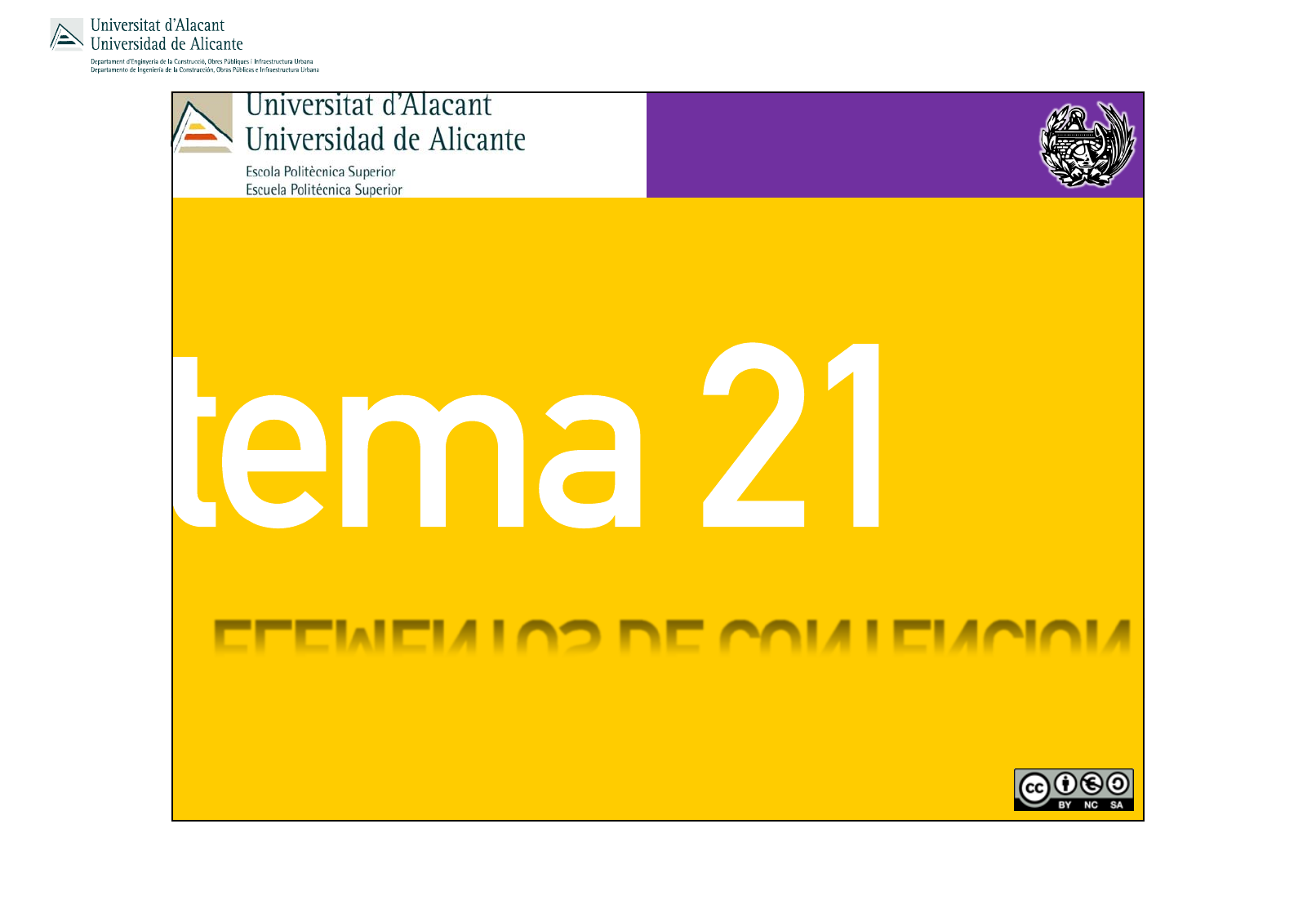 (c) 2010-11 Luis Bañón Blázquez. Universidad de Alicante página 1 bibjbkqlp=ab=̀ lkqbk f̀þk OPENCOURSEWARE INGENIERIA CIVIL I.T. Obras Públicas / Ing. Caminos iìáë=_~¥μå _ä•òèìÉò mêçÑÉëçê=`çä~Äçê~Ççê af`lmfr (c) 2010-11 Luis Bañón Blázquez. Universidad de Alicante página 2 Realizar una clasificación tipológica y funcional de este tipo de elementos Estudiar las diferentes acciones que actúan con más frecuencia en estructuras de contención Establecer criterios de predimensionamiento y una estrategia para su cálculo Desarrollar los métodos de cálculo existentes para estructuras de contención Definir algunos detalles constructivos habituales en este tipo de estructuras l_gbqfslp (c) 2010-11 Luis Bañón Blázquez. Universidad de Alicante página 3 1. Elementos principales 2. Clasificación funcional 3. Acciones a considerar 4. Criterios de predimensionamiento 5. Cálculo de muros 6. Disposiciones constructivas `lkqbkfalp (c) 2010-11 Luis Bañón Blázquez. Universidad de Alicante página 4 Alzado Elemento vertical que recibe de forma directa la sobrecarga de tierras Trasdós: Cara a tierras Intradós: Cara vista Cimiento Elemento horizontal que transmite adecuadamente las cargas del alzado al terreno que le da soporte Puntera: Zona volada hacia el intradós Talón: Zona volada hacia el trasdós Tacón: Elemento vertical para mejorar la resistencia a deslizamiento NK=bibjbkqlp=mofk`fm^ibp Talón Tacón Puntera Alzado (c) 2010-11 Luis Bañón Blázquez. Universidad de Alicante página 5 OK=`i^pfcf`^`fþk=crk`flk^i a) Mampostería b) Hormigón en masa c) Ménsula en T d) Ménsula en L e) Contrafuertes f) Muro jaula g) Tierra armada h) Suelo reforzado a) Tablestacas b) Pilotes continuos c) Pilotes discontinuos d) Pantallas RÍGIDOS FLEXIBLES (c) 2010-11 Luis Bañón Blázquez. Universidad de Alicante página 6 Acciones estáticas: Peso propio Empuje del terreno Empuje hidrostático (agua freática o libre) Sobrecargas sobre el terreno Acciones dinámicas: Acción sísmica Flujo de agua en el terreno sifonamiento Vibraciones, impactos (raramente) PK=^``flkbp=^=`lkpfabo^o (c) 2010-11 Luis Bañón Blázquez. Universidad de Alicante página 7 Clases de empuje del terreno: Inicial o al reposo σ’H0 = K0∙ σ’V0 Activo σ’Ha = Ka∙ σ’V0 Pasivo σ’Hp = Kp∙ σ’V0 PK=^``flkbp=^=`lkpfabo^o a) Empuje inicial o al reposo b) Empuje activo c) Empuje pasivo (c) 2010-11 Luis Bañón Blázquez. Universidad de Alicante página 8 Valores del coeficiente de empuje K (Rankine): Inicial o al reposo K0 = 1 + senφ Activo Ka = tan2 (45 ‐ φ/2) = (1‐senφ) / (1+senφ) Pasivo Kp = tan2 (45 + φ/2) = (1+senφ) / (1‐senφ) PK=^``flkbp=^=`lkpfabo^o ACTIVO PURO PASIVO PURO ZONA DE TRANSICIÓN Ka K0 KpK Movimiento del elemento hacia el terreno Movimiento del elemento hacia la excavación Situación inicial (reposo) ‐S+S (c) 2010-11 Luis Bañón Blázquez. Universidad de Alicante página 9 Leyes de empuje del terreno: [Fig. 6.8 CTE DB SE‐C] PK=^``flkbp=^=`lkpfabo^o (c) 2010-11 Luis Bañón Blázquez. Universidad de Alicante página 10 Secciones tipo a más comunes: QK=mobafjbkpflk^jfbkql (c) 2010-11 Luis Bañón Blázquez. Universidad de Alicante página 11 Sección recomendable para predimensiona‐ miento de muros ménsula: B ≈ 0,45∙H – 0,60∙H a ≈ 0,25∙B – 0,30∙B b = H/10 (≈ h) b0 ≥ 25 cm c ≈ 1,5∙a h ≥ a/2 > 50 cm hf ≥ 1 m QK=mobafjbkpflk^jfbkql H hbhf b0 B ca (c) 2010-11 Luis Bañón Blázquez. Universidad de Alicante página 12 Verificación de la estabilidad del muro: Se considera el peso propio del muro Acciones en valor característico (sin mayorar) Coeficientes parciales de seguridad: Específicos según Tabla 2.1 CTE DB SE‐C Cimientos Se aplican únicamente sobre la resistencia del terreno Diseño estructural del muro: No se considera el peso propio del muro Acciones con valores de cálculo (tomar γE=1,5) Coeficientes parciales de seguridad según EHE‐08 RK=`ži`ril=ab=jrolp (c) 2010-11 Luis Bañón Blázquez. Universidad de Alicante página 13 RK=`ži`ril=ab=jrolp Verificación de la estabilidad del muro: [CTE DB SE‐C] Verificación de la estabilidad global del terreno: Métodos de equilibrio límite (Geotecnia y Cimientos) Comprobación a hundimiento del terreno (ídem zapatas) Comprobación a vuelco (ídem zapatas) Comprobación a deslizamiento (ídem zapatas) Estabilidad global Hundimiento Vuelco Deslizamiento (c) 2010-11 Luis Bañón Blázquez. Universidad de Alicante página 14 RK=`ži`ril=ab=jrolp Coeficientes parciales de seguridad: [Tabla 2.1 CTE DB SE‐C] (c) 2010-11 Luis Bañón Blázquez. Universidad de Alicante página 15 RK=`ži`ril=ab=jrolp Diseño estructural del muro: Armado del alzado: Armado a flexión simple Verificación a cortante sin armadura Armado del cimiento: Armado de la puntera Armado del talón Armado del tacón Verificación a rasante en junta de arranque del alzado Disposición de cuantías mínimas de armado (c) 2010-11 Luis Bañón Blázquez. Universidad de Alicante página 16 RK=`ži`ril=ab=jrolp Forma de trabajo del muro: Armadura a flexión d Sección de verificación a corte (c) 2010-11 Luis Bañón Blázquez. Universidad de Alicante página 17 RK=`ži`ril=ab=jrolp Cuantías mínimas en alzado de muros: 1. Armadura vertical trasdós Obtenida por cálculo a flexión (1,2‰ si B 400, 0,9 ‰ si B 500) 2. Armadura horizontal Espesor máximo computable: 50 cm. (4,0‰ si B 400, 3,2‰ si B 500) • Dos caras vistas: 50% Tra ‐50% Int • Una cara vista: 33% Tra ‐ 66% Int 3. Armadura vertical intradós (0,4‰ si B 400, 0,3‰ si B 500, mínimo constructivo de 4Ø10/m.l.) 4. Armadura en coronación 2Ø16 para evitar fisuración en cabeza 1 3 2 2 4 (c) 2010-11 Luis Bañón Blázquez. Universidad de Alicante página 18 RK=`ži`ril=ab=jrolp Cuantías mínimas en cimiento de muros: 5. Armadura superior talón Obtenida por cálculo a flexión (1,0‰ si B 400, 0,9‰ si B 500